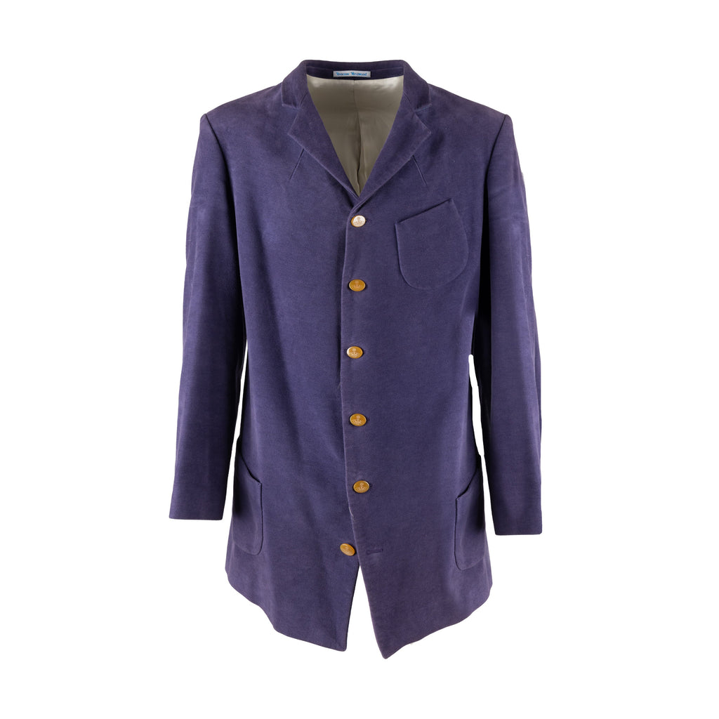 This Vivienne Westwood long jacket is crafted from cotton for a comfortable look and feel. Its unique front logo embossed buttons in striking yellow add a pop of color that stands out, while the 3 small patch pockets provide convenience. A patch with Vivienne inside the lining ensures you always carry her iconic style close to your heart.