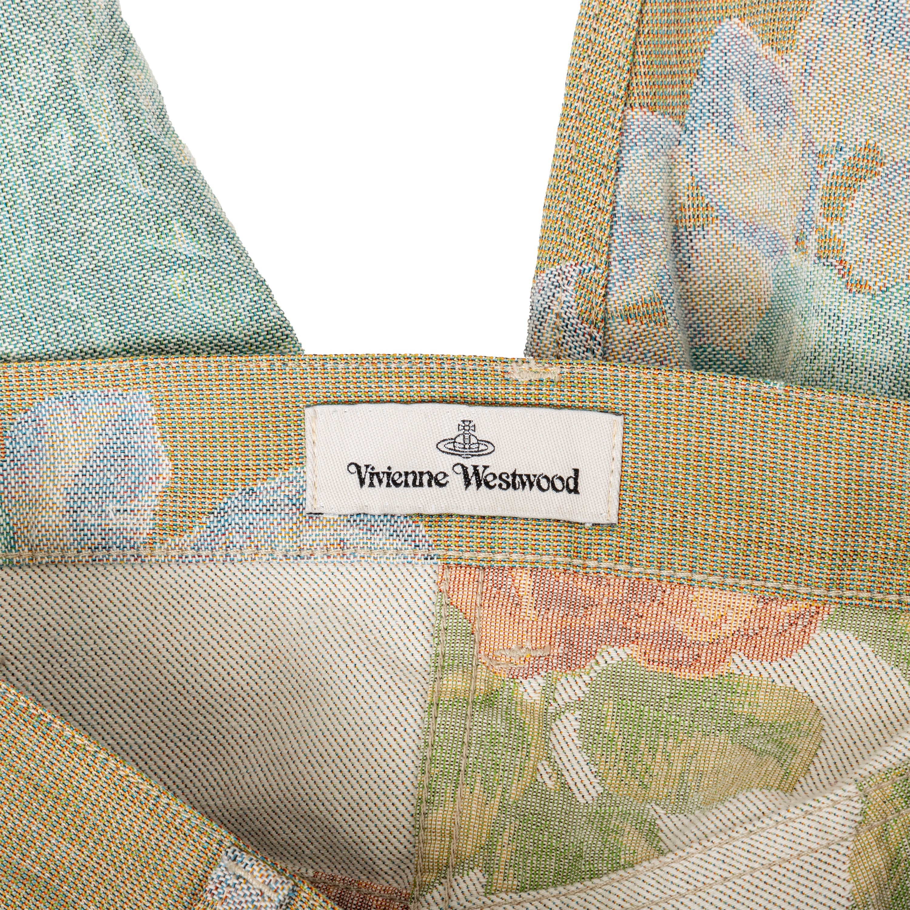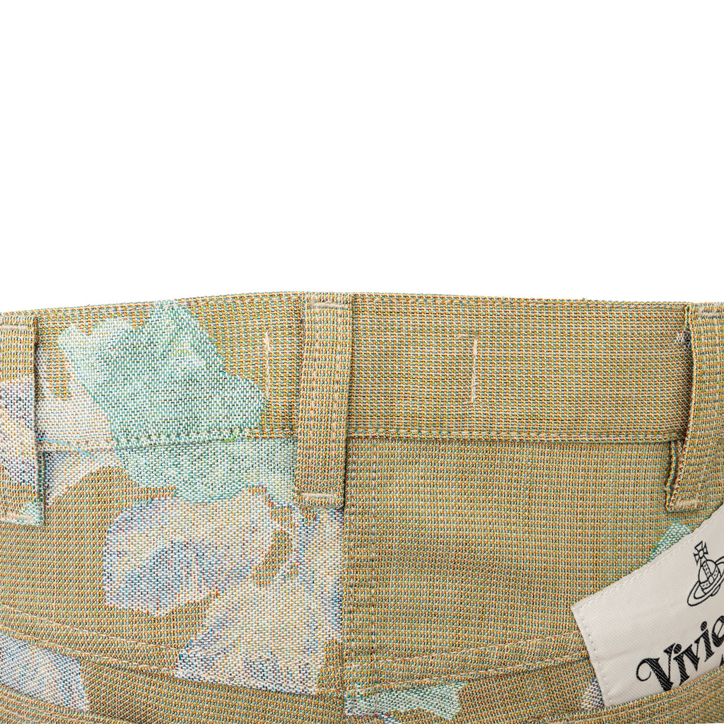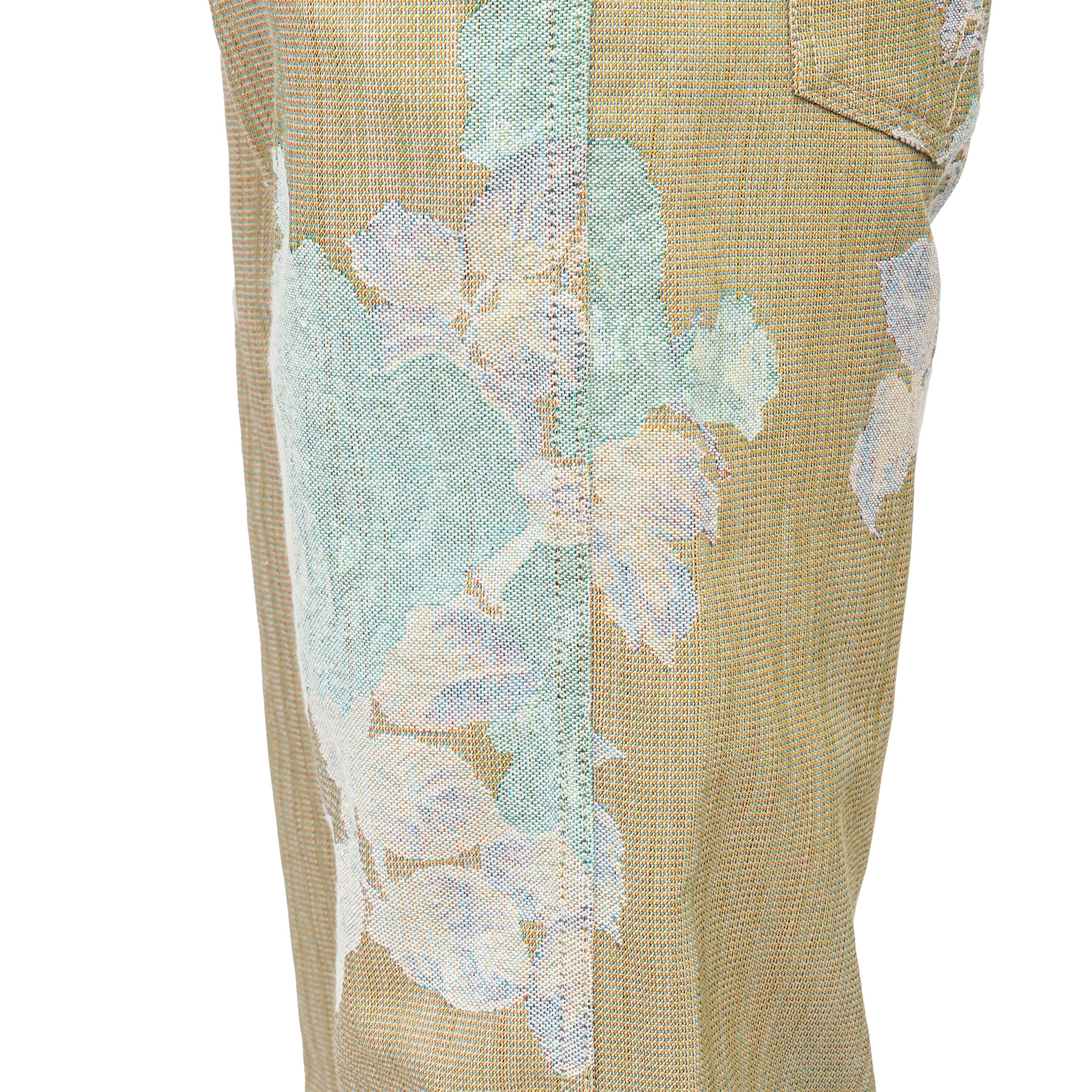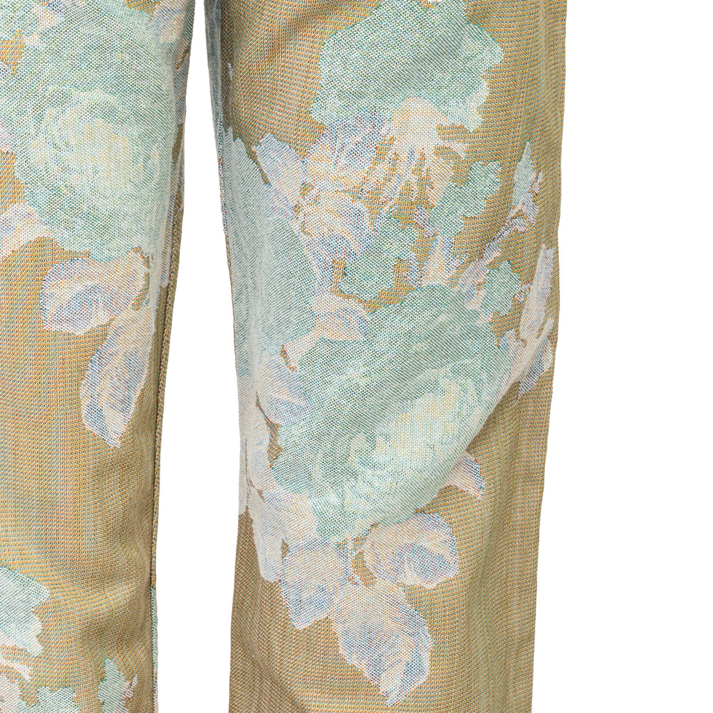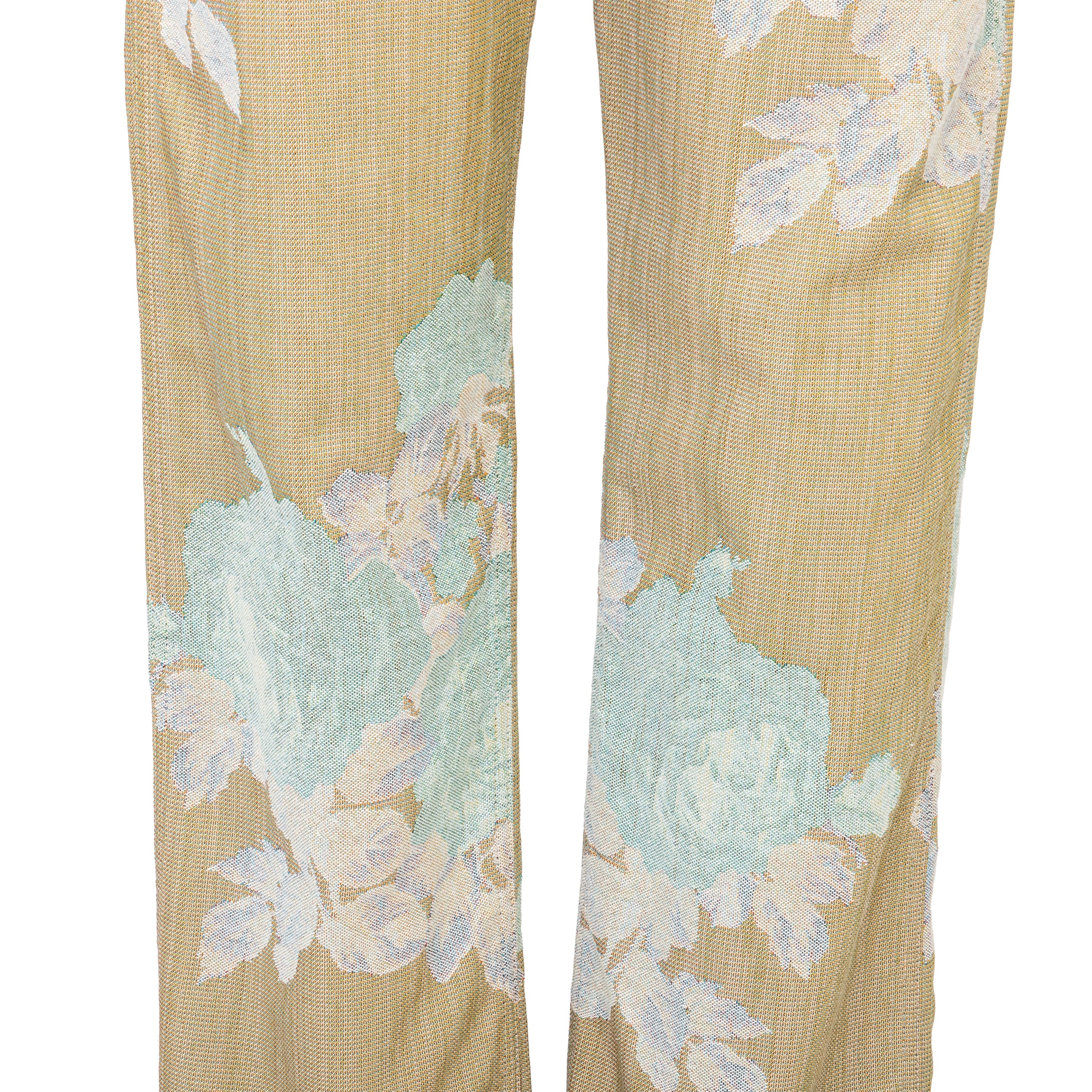 These Vivienne Westwood Ranch Jeans are made of high-quality cotton blend denim with a unique floral jacquard pattern. The mid low waist and straight cut create a comfortable and flattering fit. The back application features the iconic Vivienne logo, adding a touch of luxury to these khaki beige jeans.