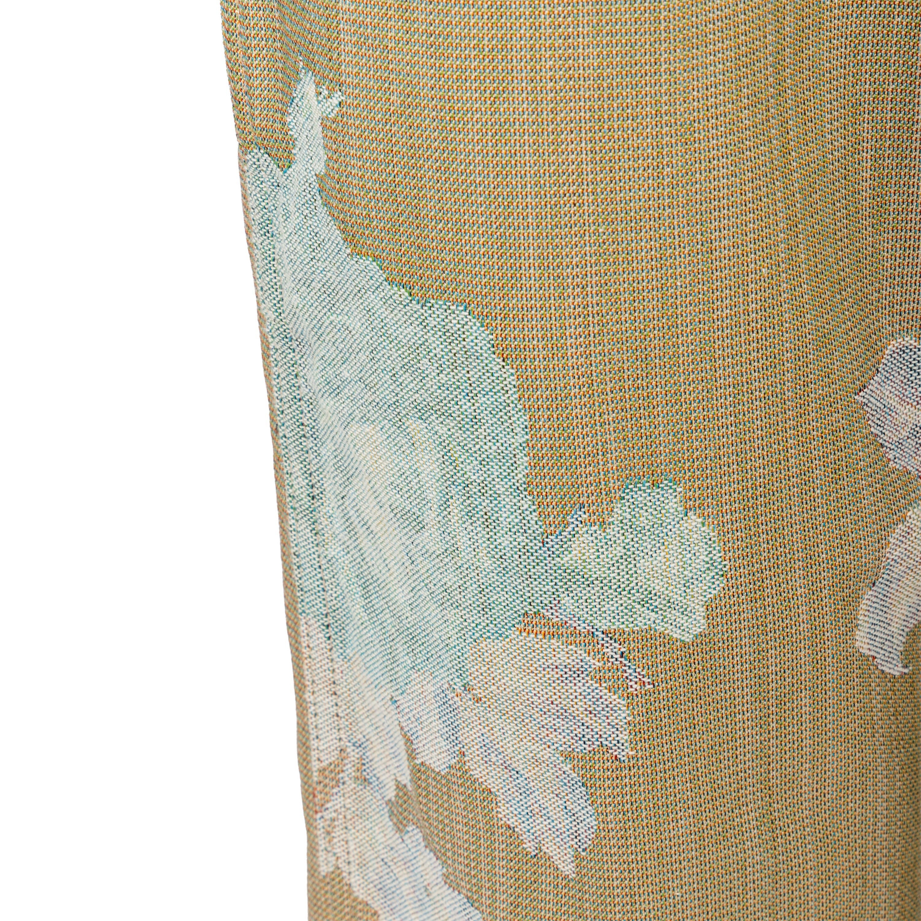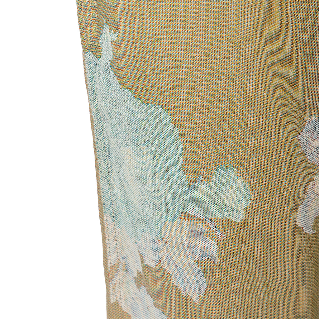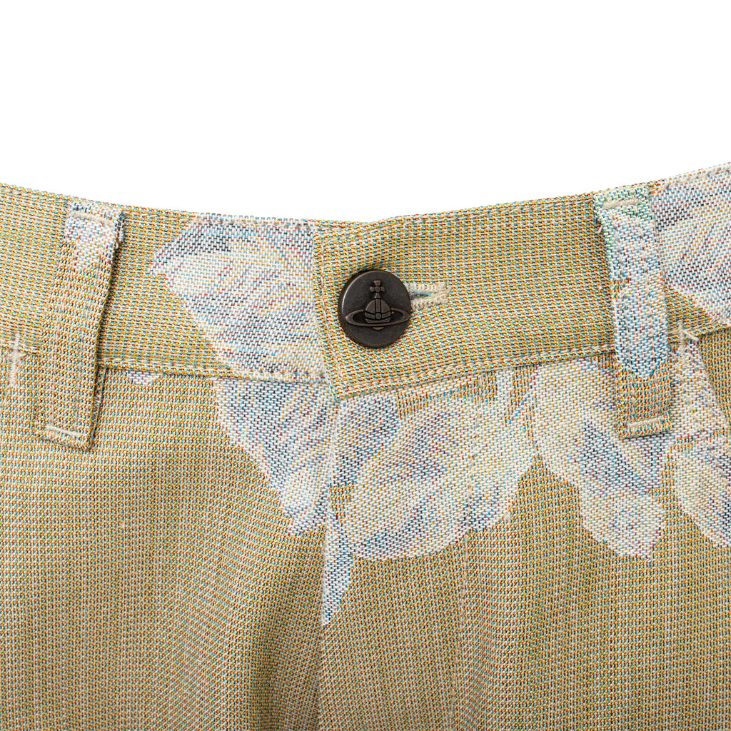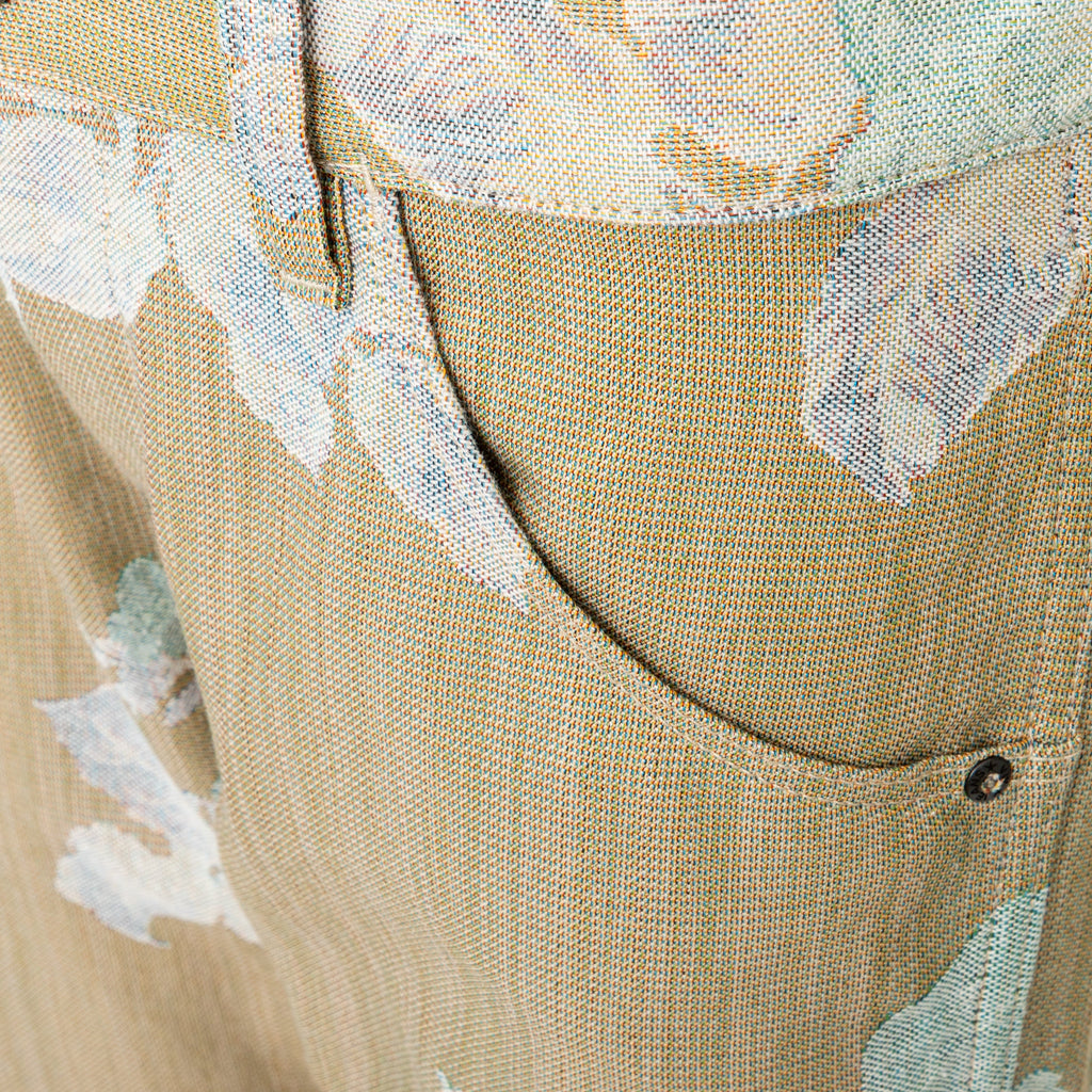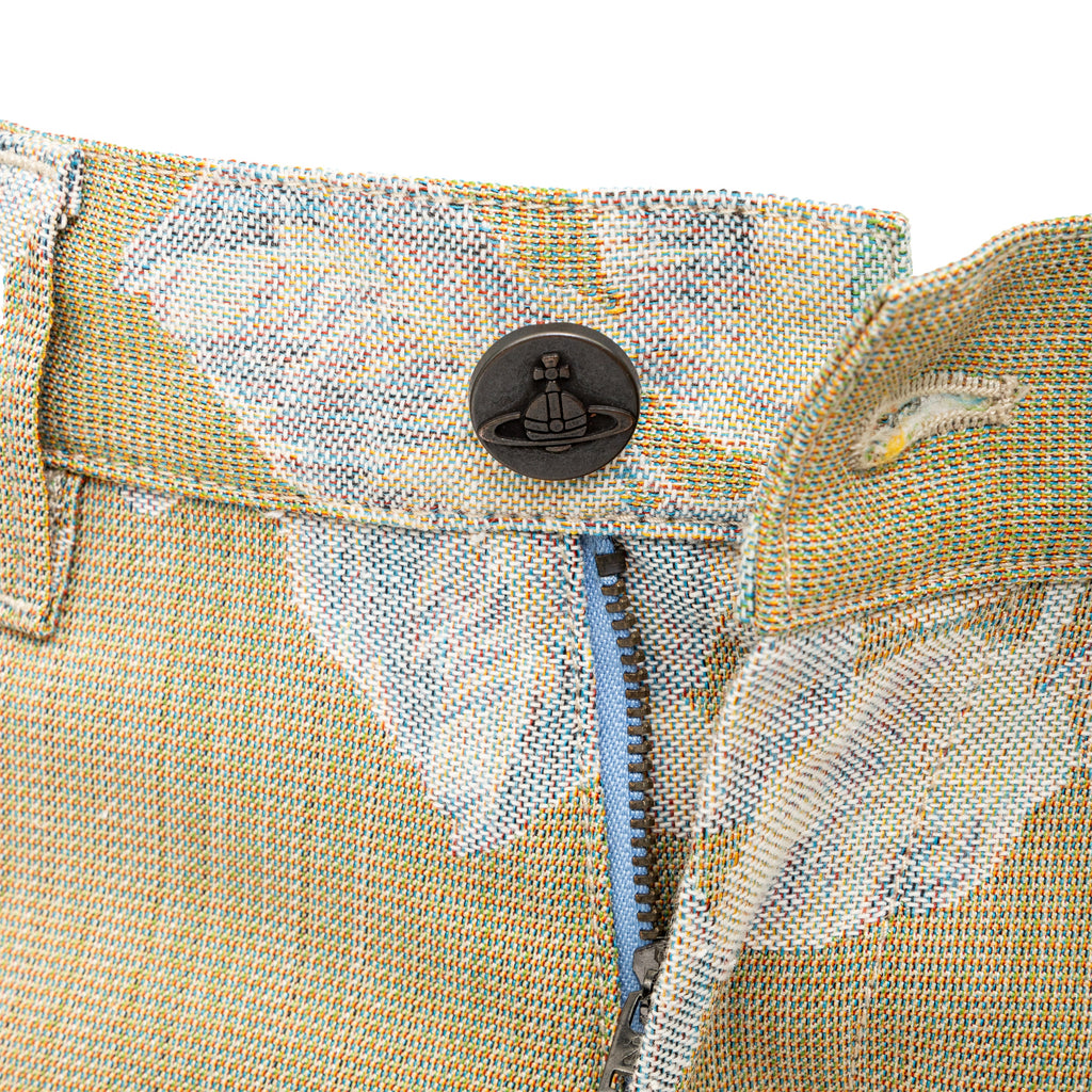 These Vivienne Westwood Ranch Jeans are made of high-quality cotton blend denim with a unique floral jacquard pattern. The mid low waist and straight cut create a comfortable and flattering fit. The back application features the iconic Vivienne logo, adding a touch of luxury to these khaki beige jeans.