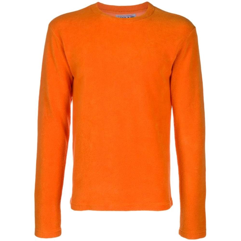 90s Walter Van Beirendonck orange teddy polyester sweatshirt. Round collar and long sleeves.