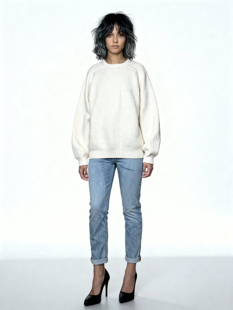 Preloved Chunky Knit Wool Mix Cream Jumper UK 8 - 14