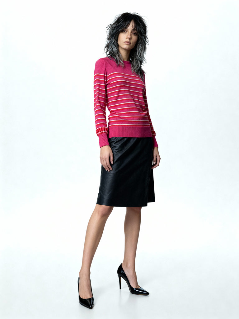 Original Vintage 1990's Merino Wool Striped Pink Jumper UK 8 - 12