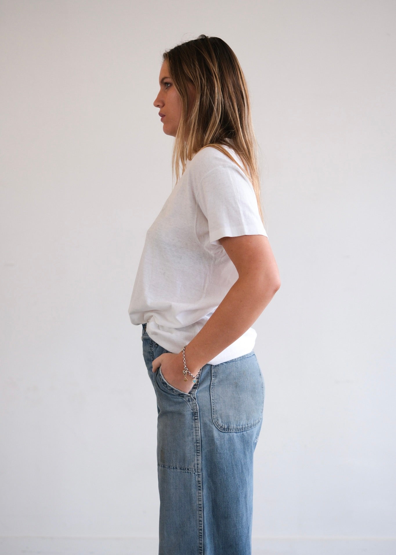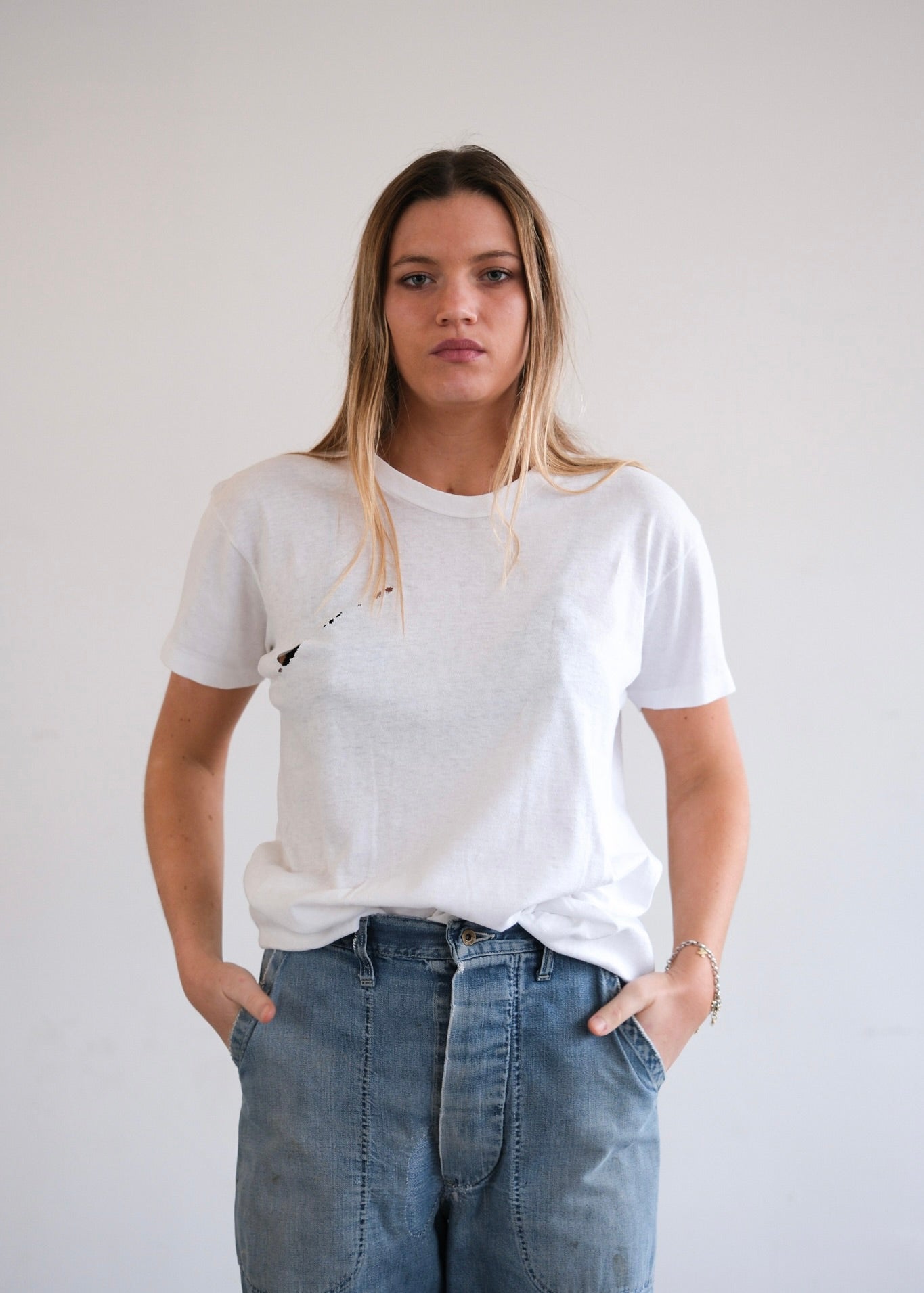 1980s white cotton Hanes Tshirt with a slash