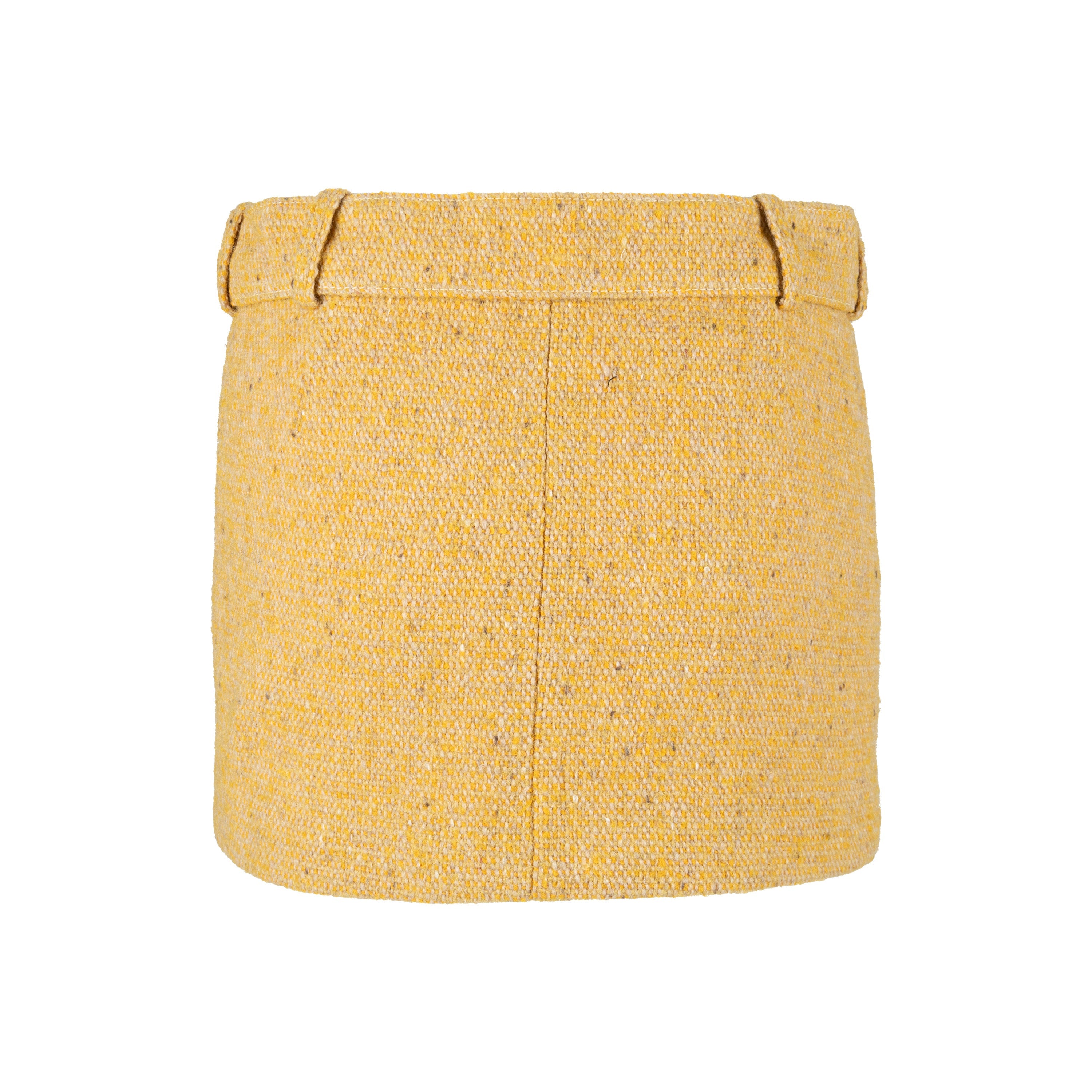 This iconic Balenciaga Mini Skirt is an archival piece from the Ghesquiere era, made from a wool blend in a soft yellow color. The short skirt has two front pockets and comes with a removable buckled belt, plus a lined interior for improved comfort.