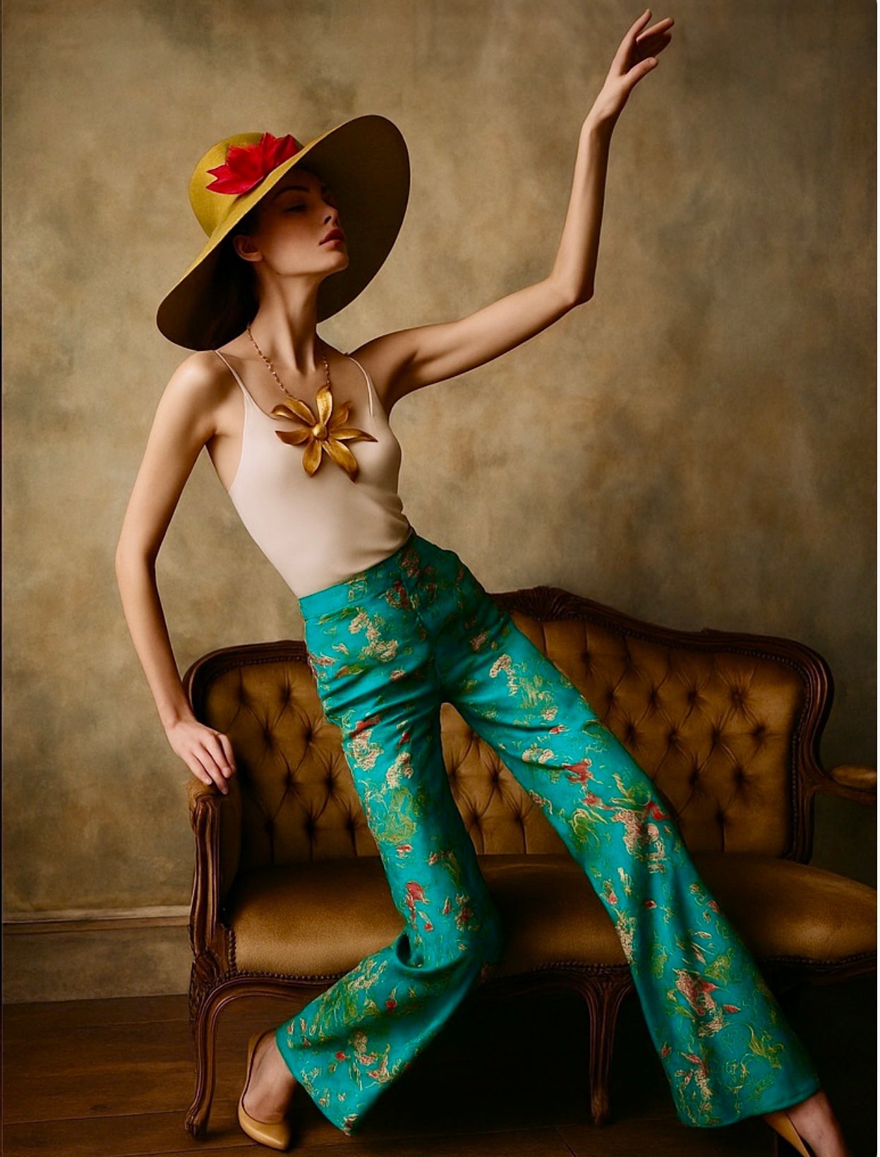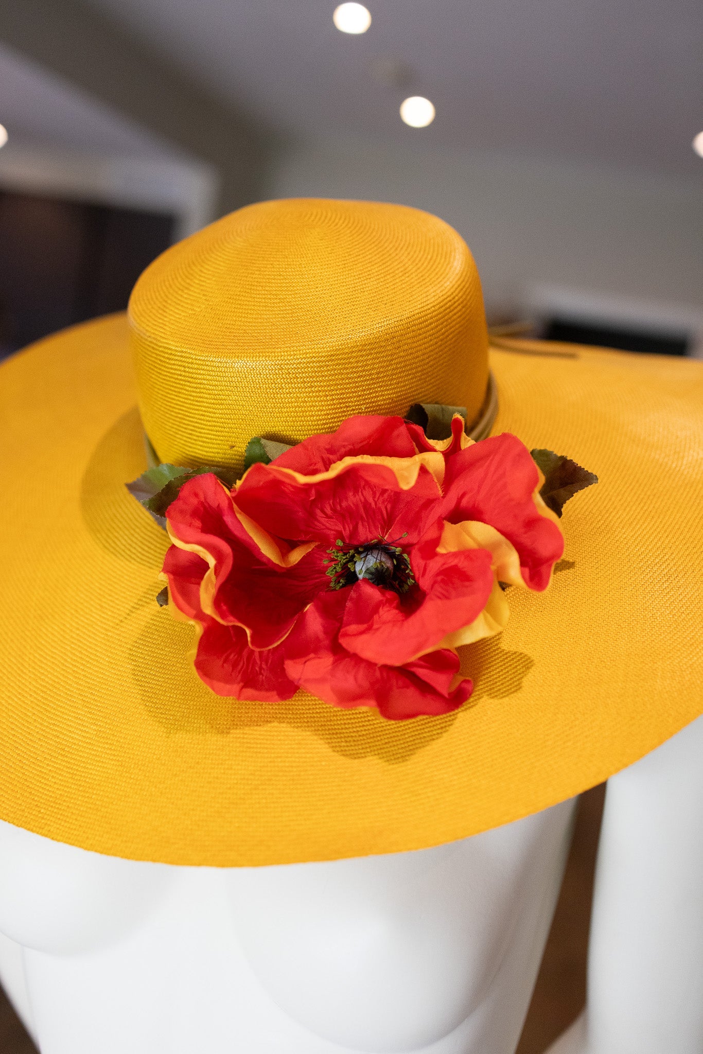 Christian Dior, 70s red poppy, yellow straw sun hat