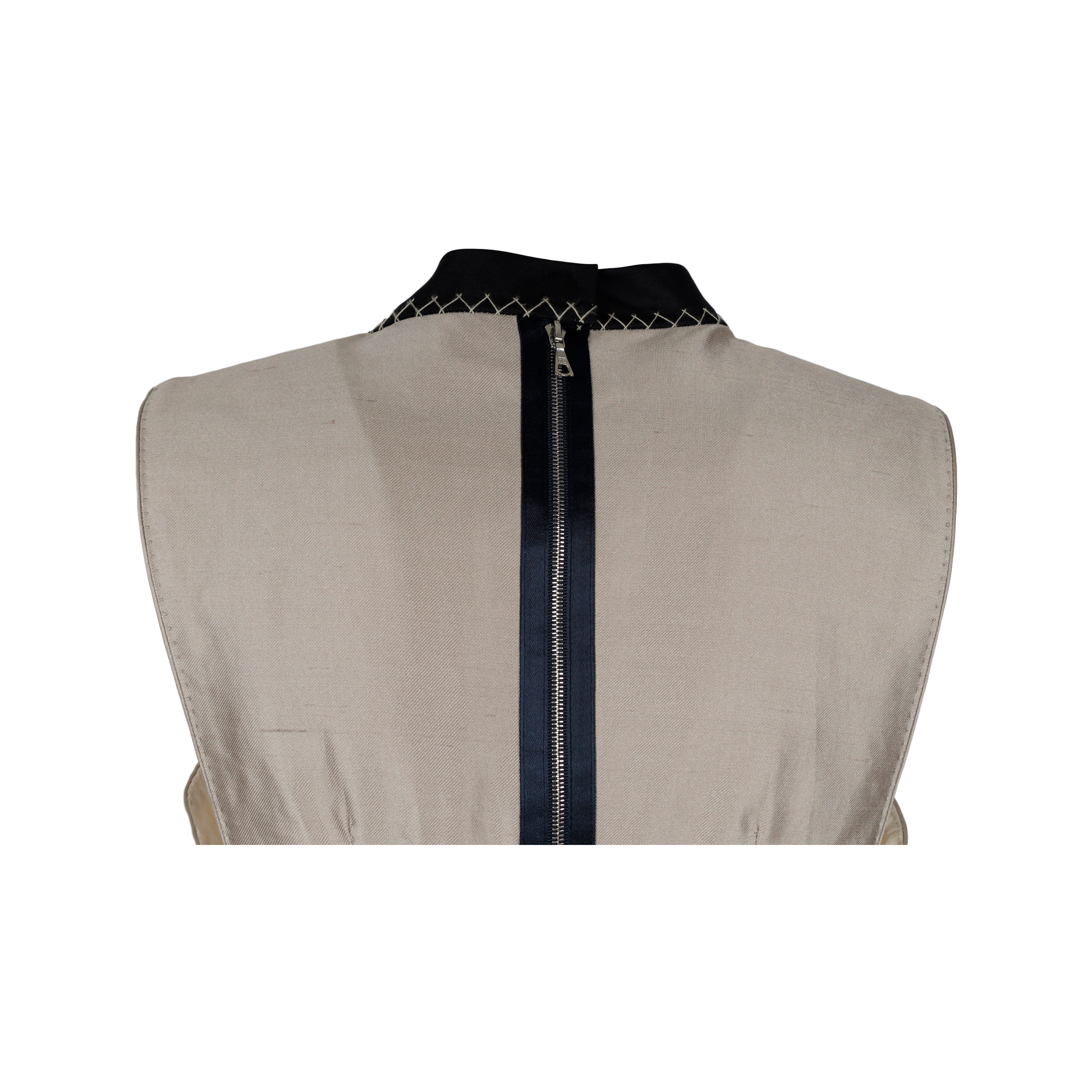 Bring the runway glam with this 6267 Silk and Cotton Ottoman Dress. Crafted with a luxurious silk and cotton ottoman fabric, the dress is further accented by a contrasting collar and back panel in silk shantung, with a lightweight linen lining for extra comfort and breathability.