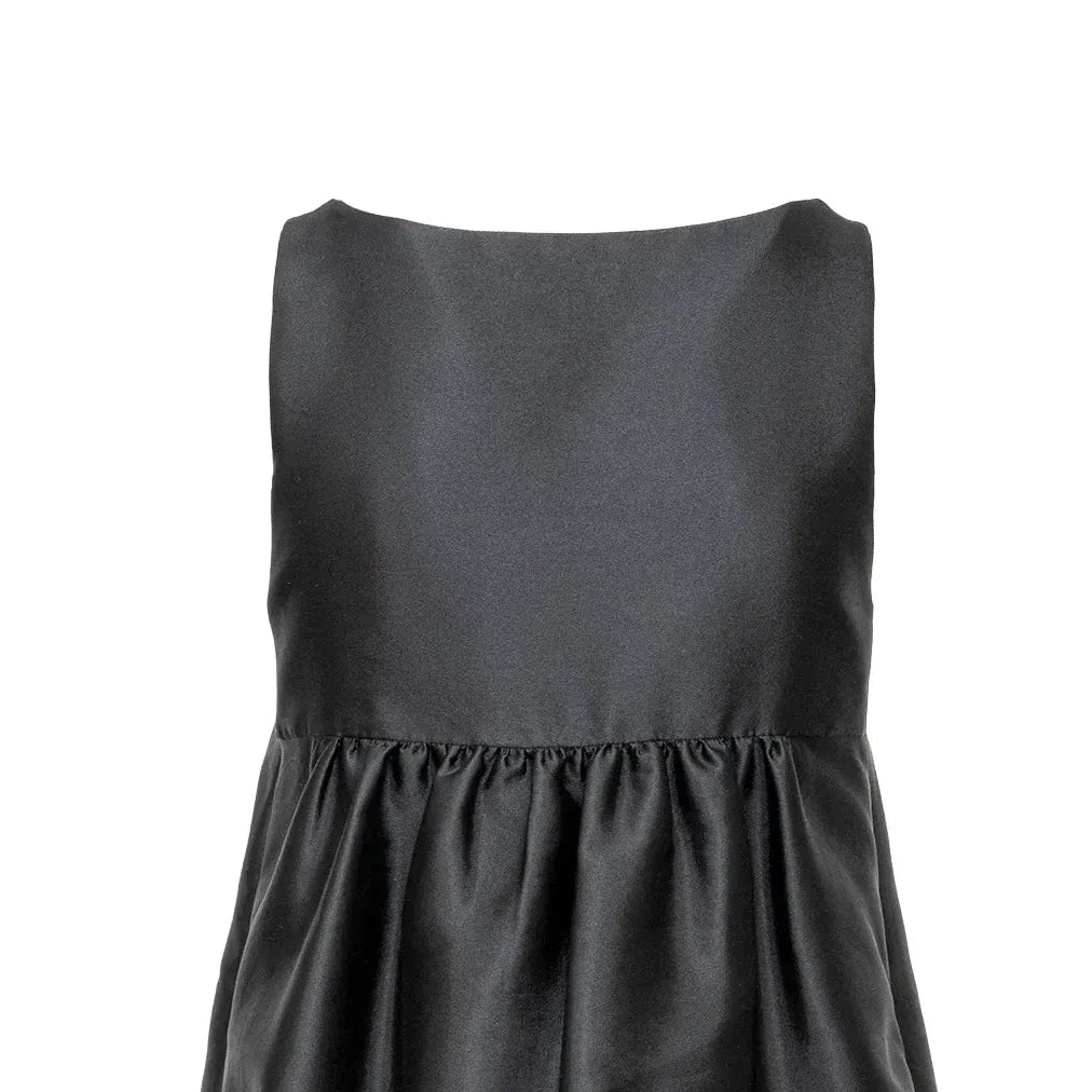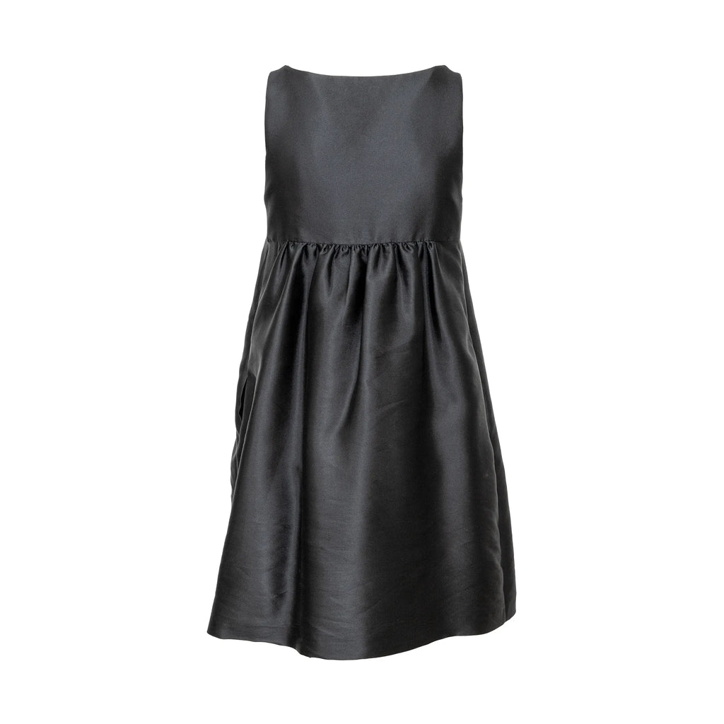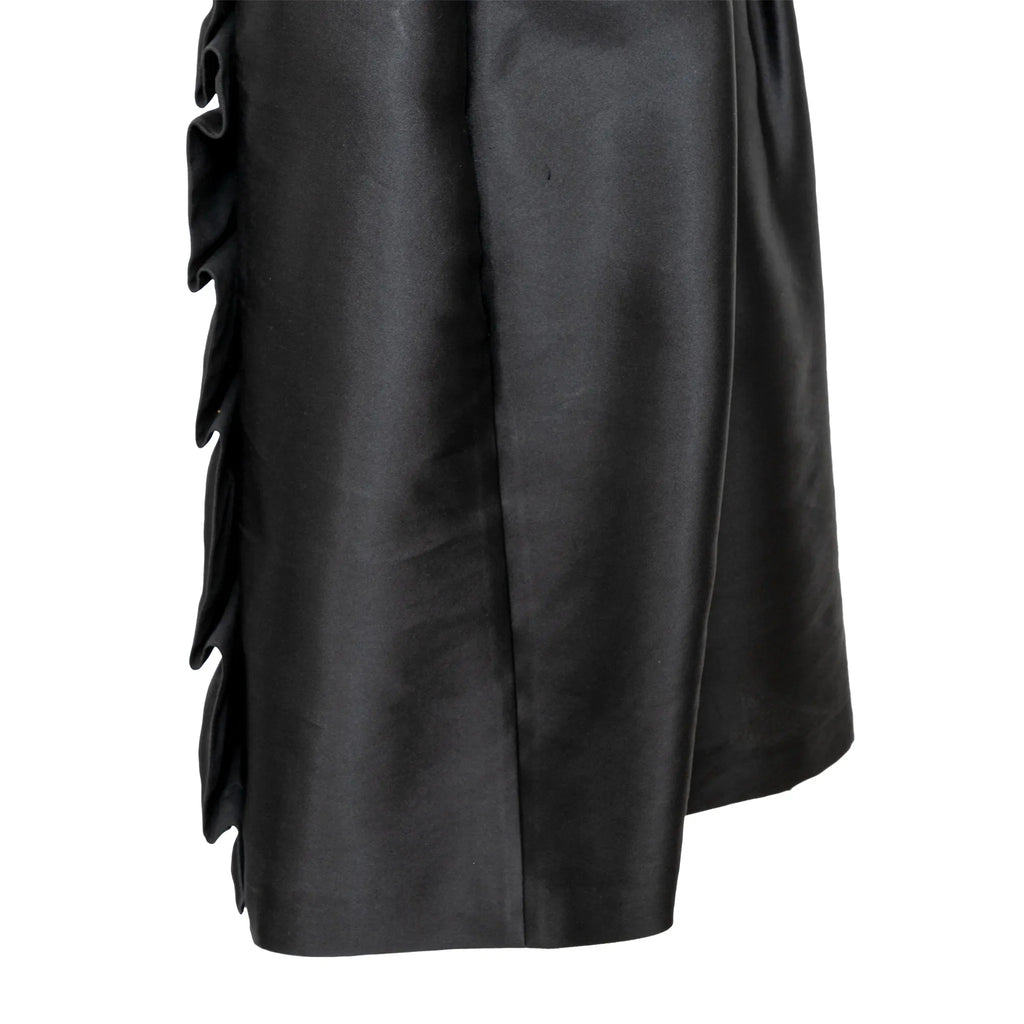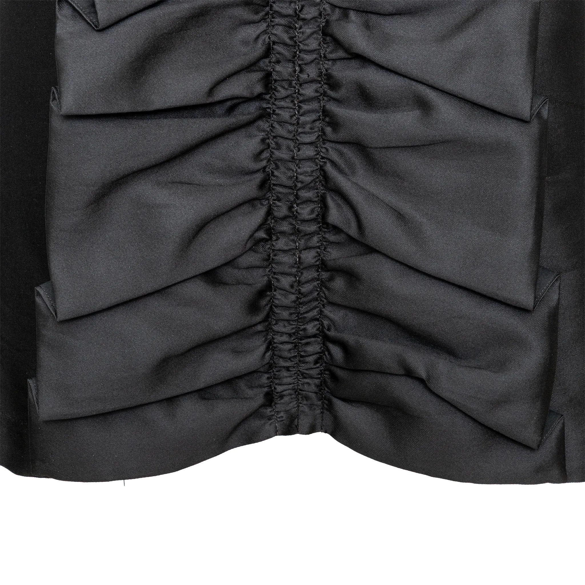 Silk-blend Moschino Cheap and Chic black dress with pleated ruffle front, side pockets, and babydoll waist pleats on the back. A chic twist on the classic LBD.