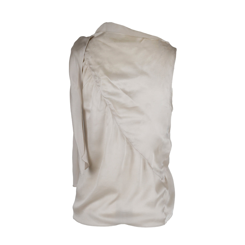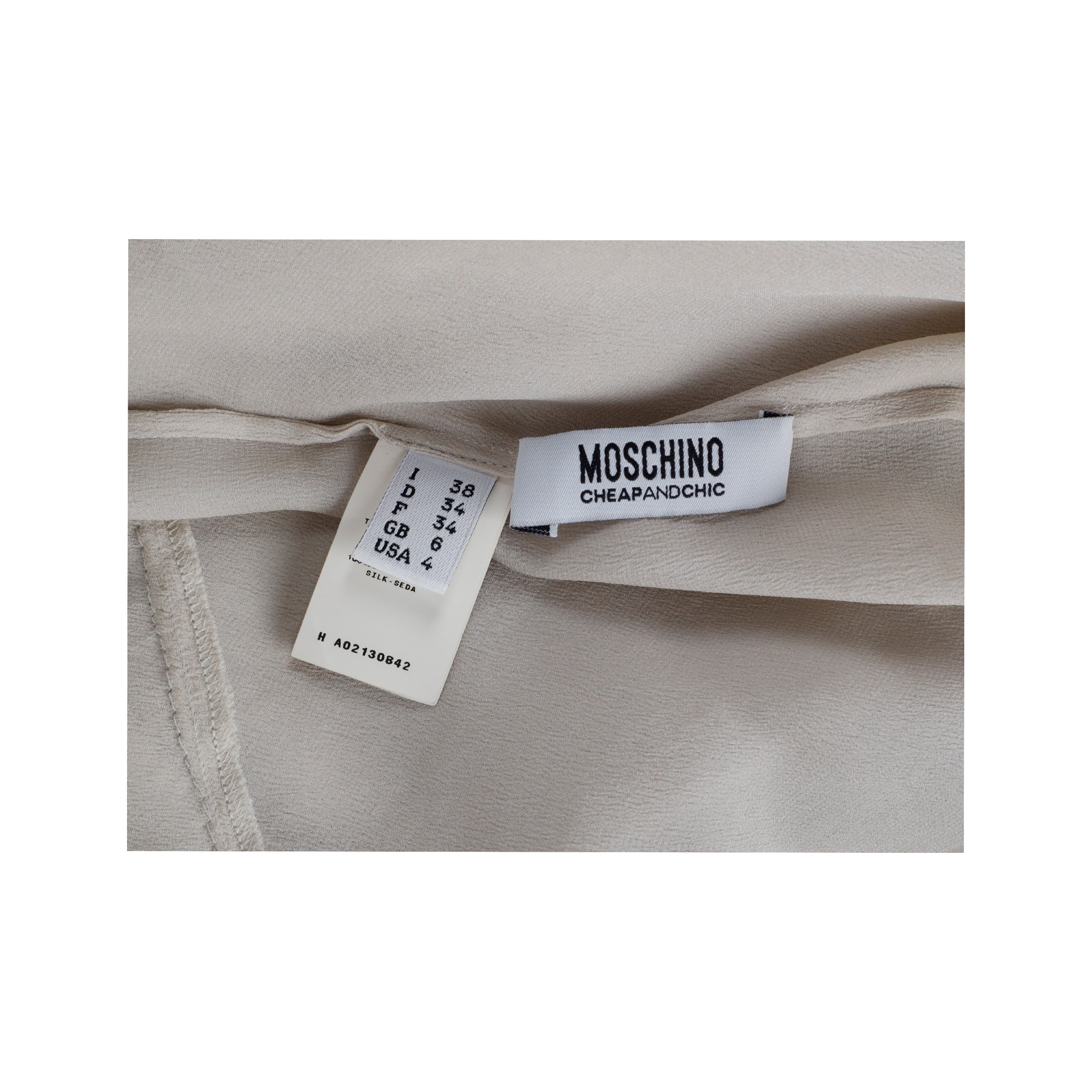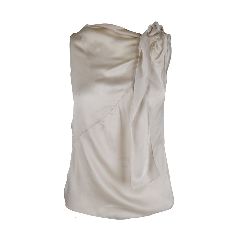 Indulge in understated elegance with this Moschino Cheap and Chic top. Made from 100% silk, this sleeveless top features a versatile tie-knot design and gathering seam over the front and back for added style.