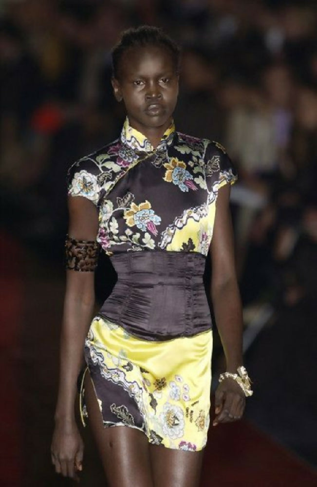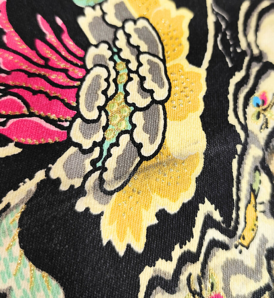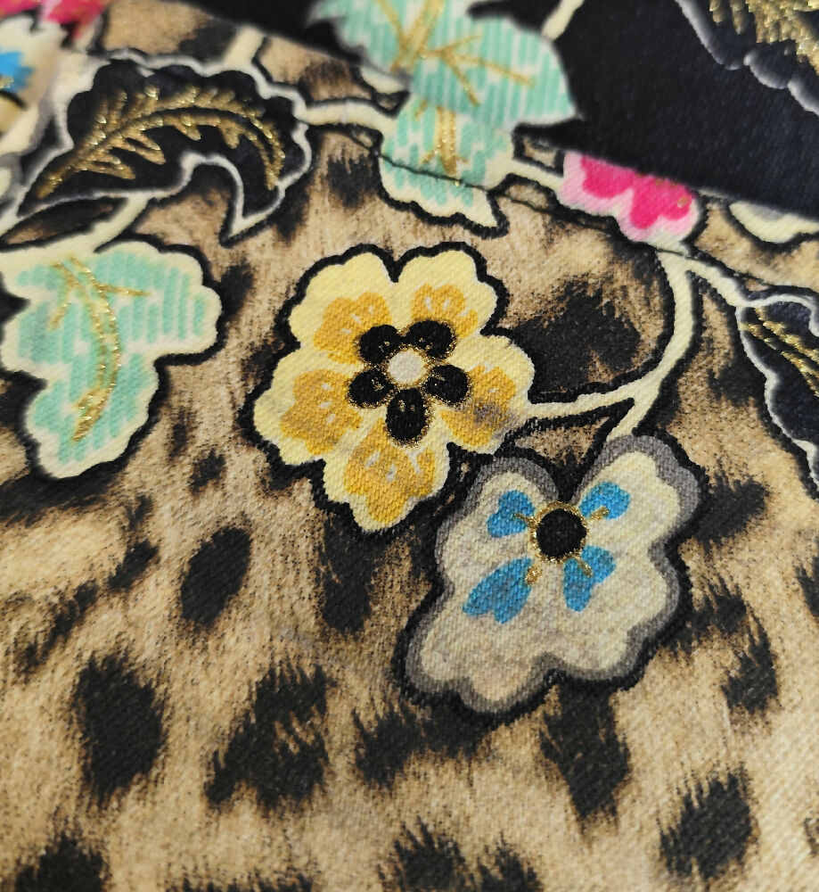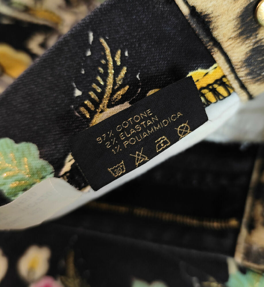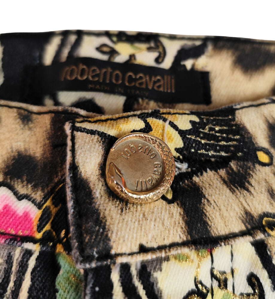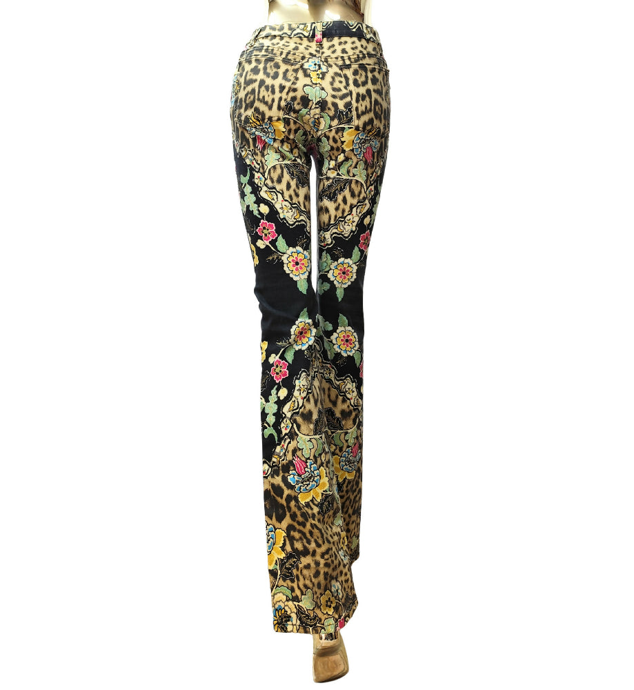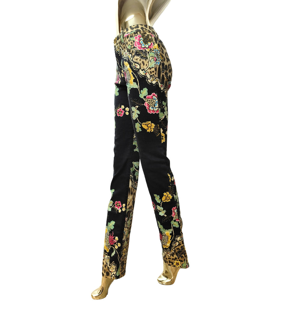 ROBERTO CAVALLI S/S 2003 CHINOISERIE PRINT BLACK AND YELLOW PANTS