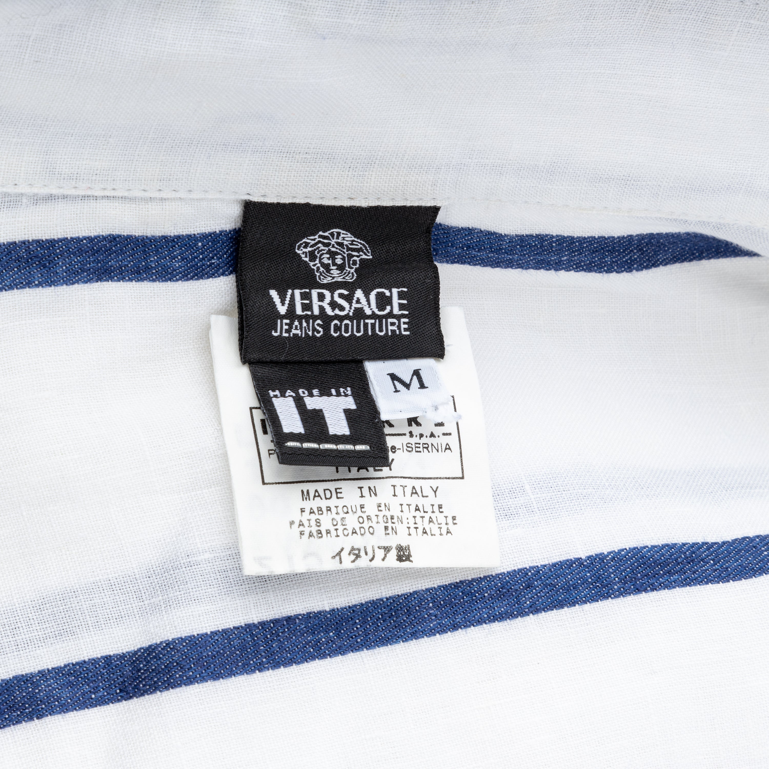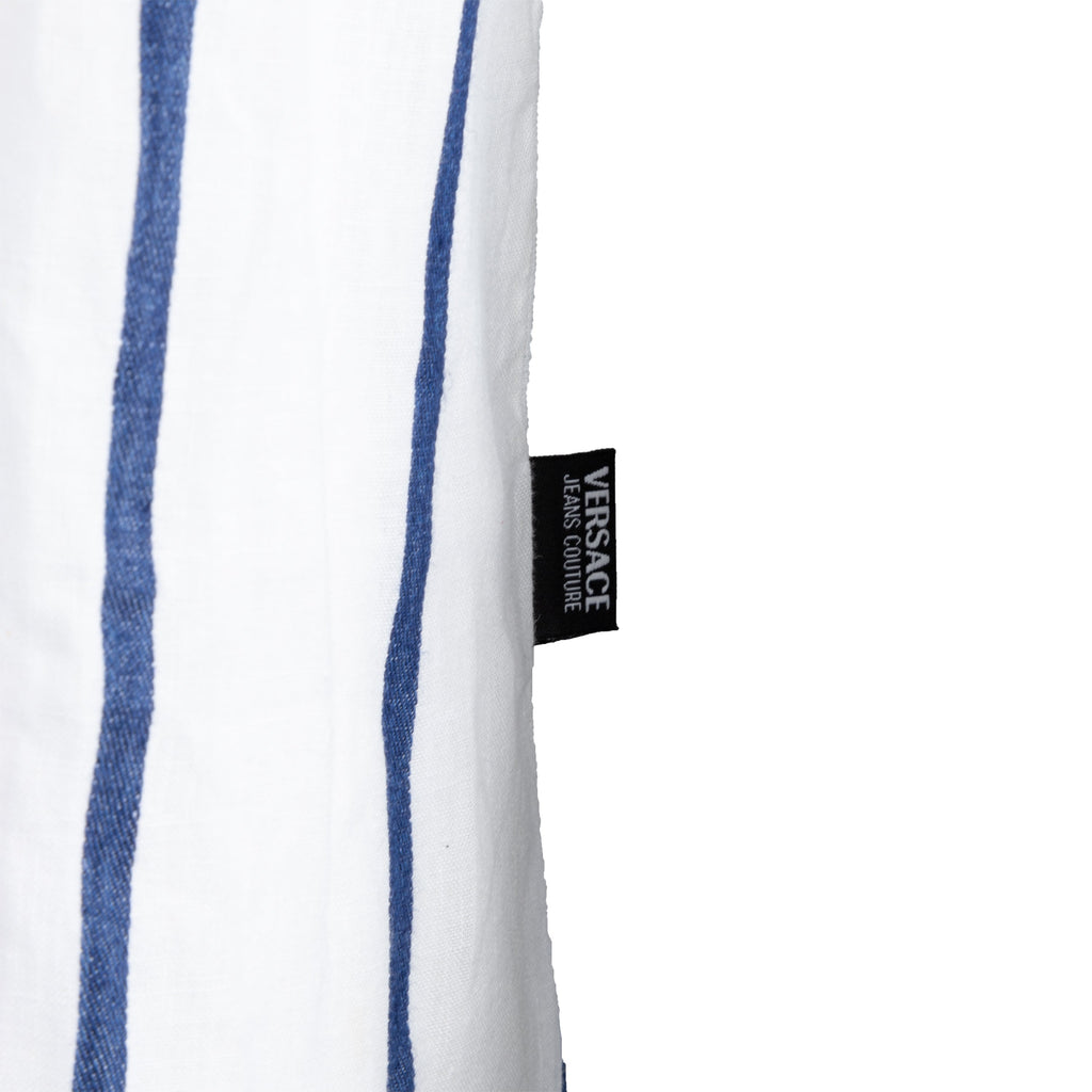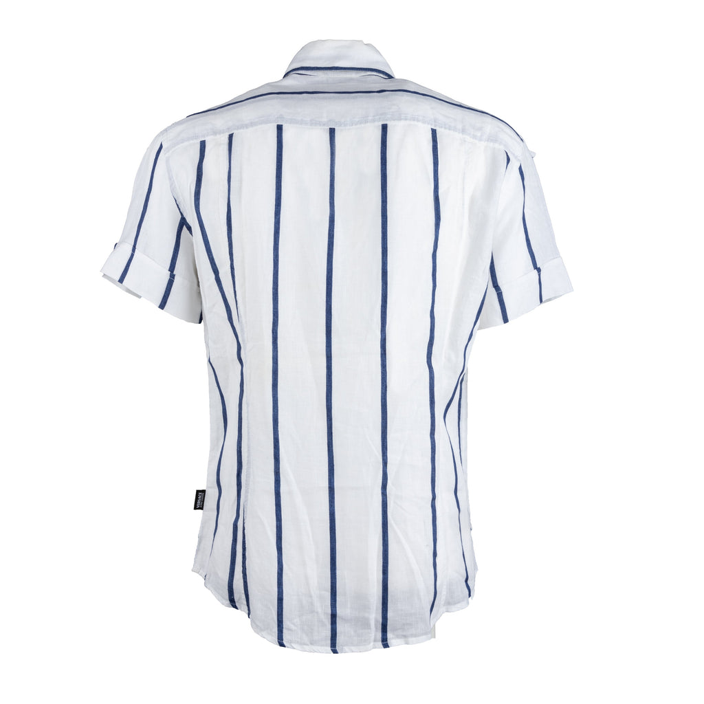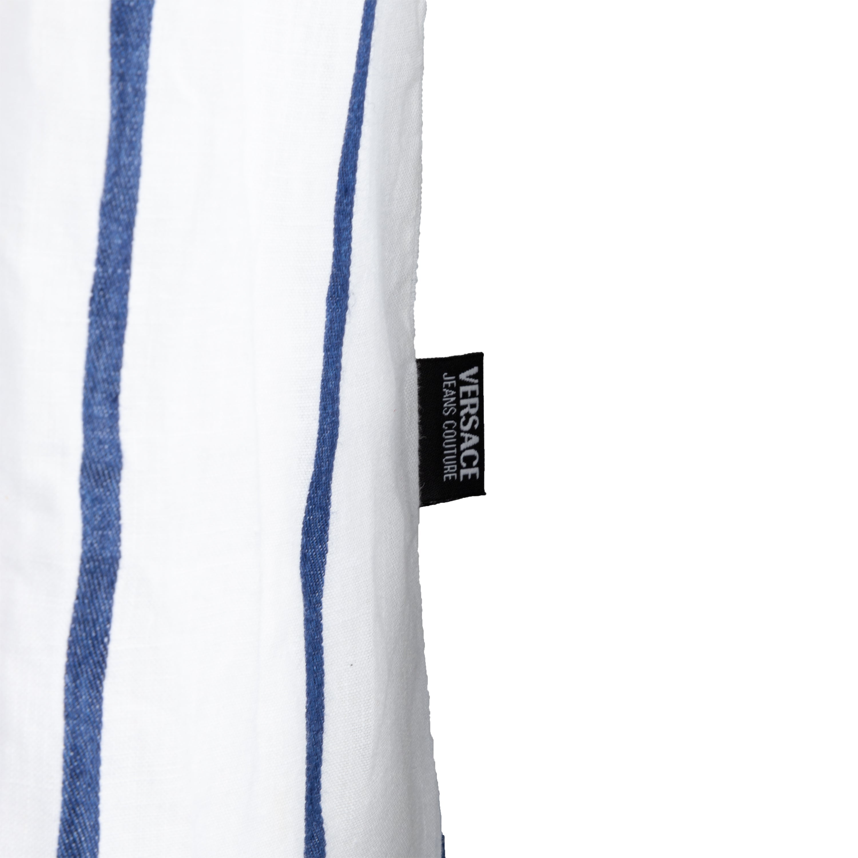 Elevate your Mediterranean vacation look with this blue-and-white striped shirt. Its fitted cut offers style while its linen material provides breathability for the hottest days.