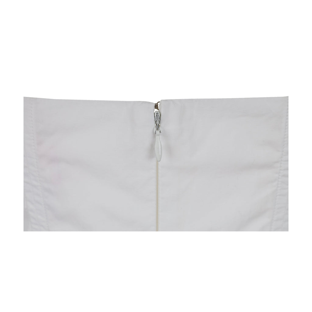 This Vivienne Westwood White Boned Dress is the perfect addition for the summer wardrobe. Crafted with cotton, it boasts a boned structure and removeable straps for an off shoulder look. The adjustable belt with buckles can be taken off for a versatile style.