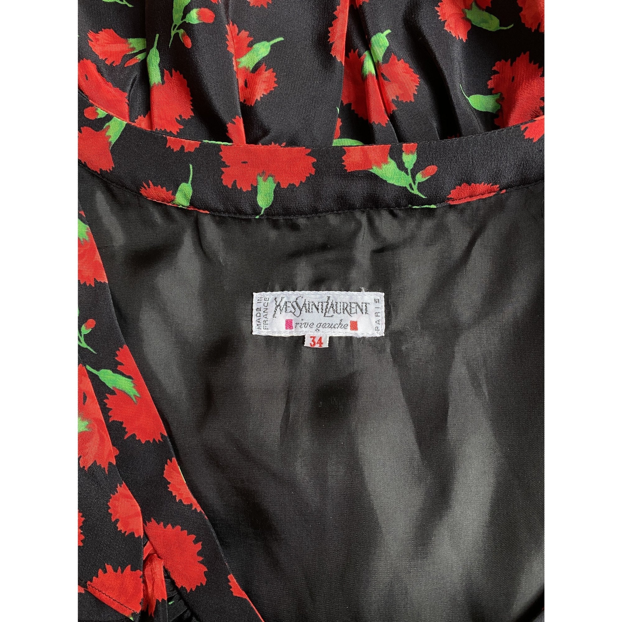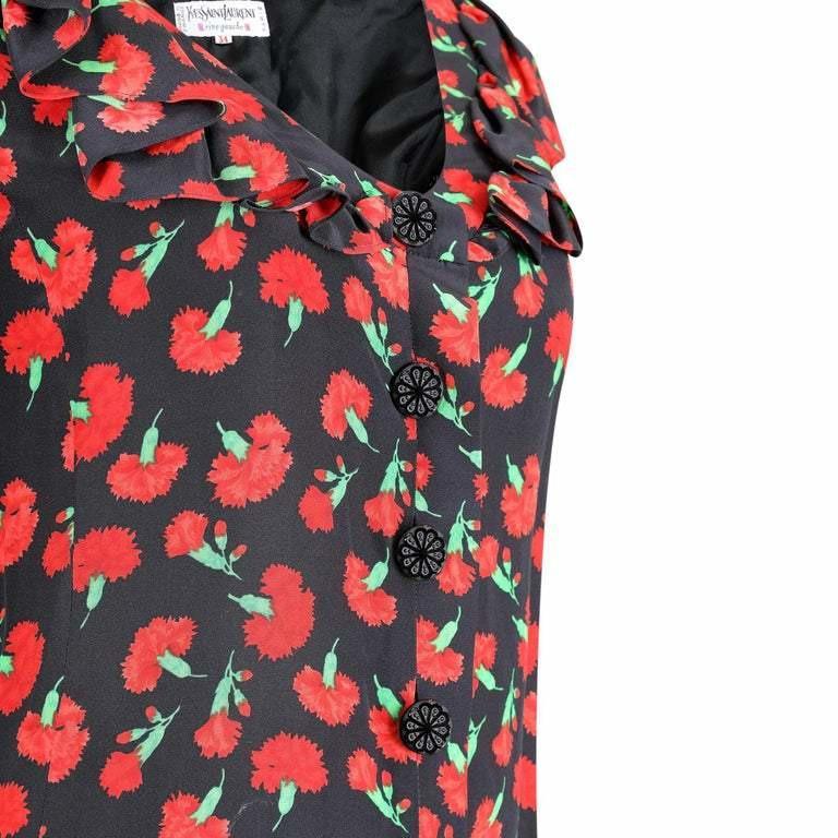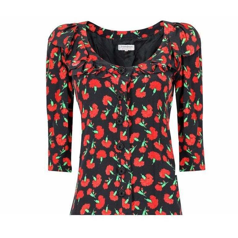 1994 Yves Saint Laurent Red Carnation Print Dress