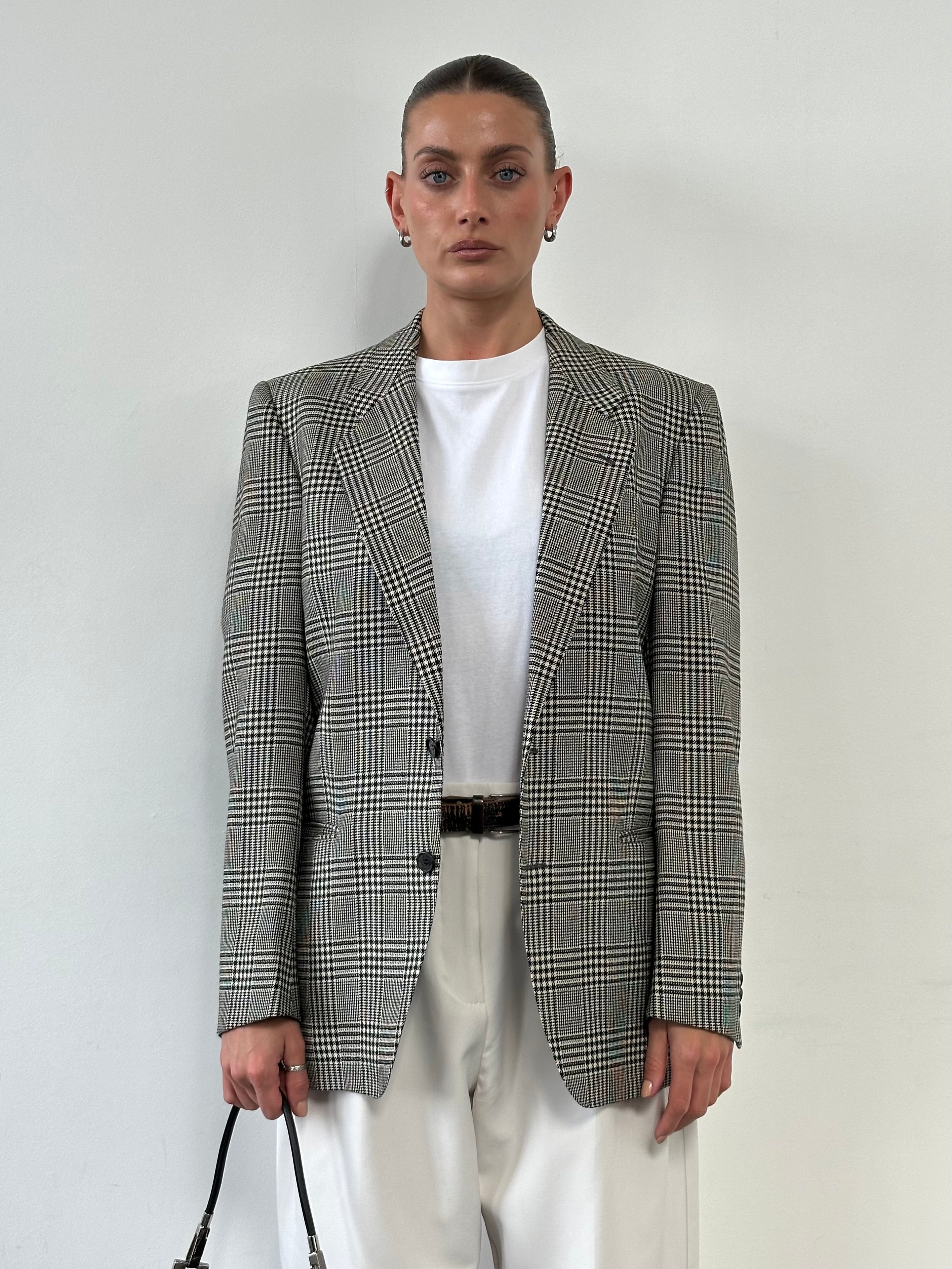 Yves Saint Laurent 1980s Check Wool Single Breasted Blazer - M