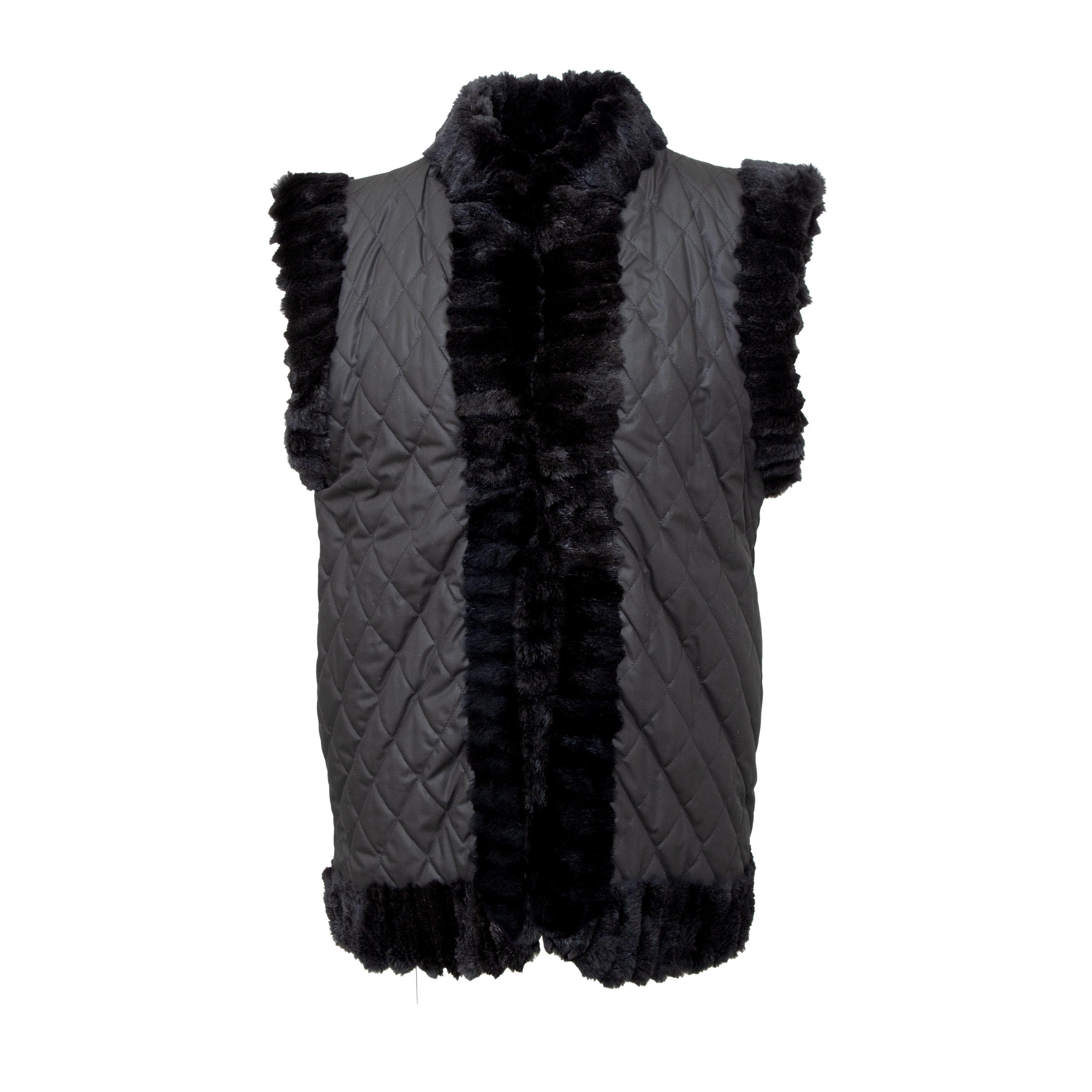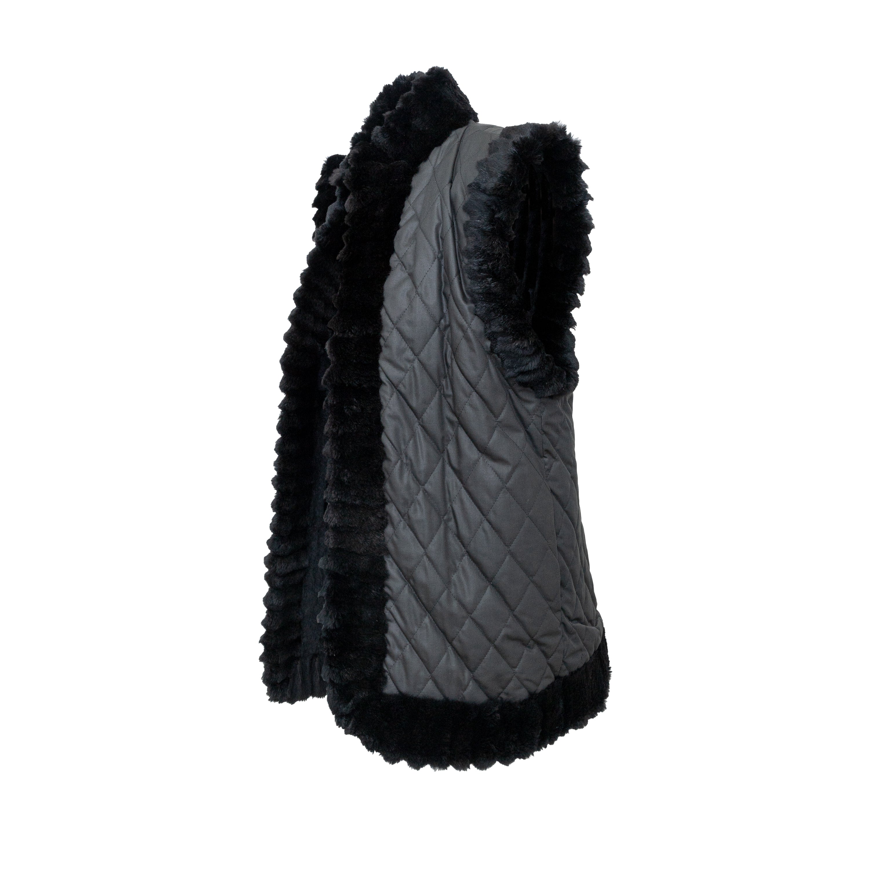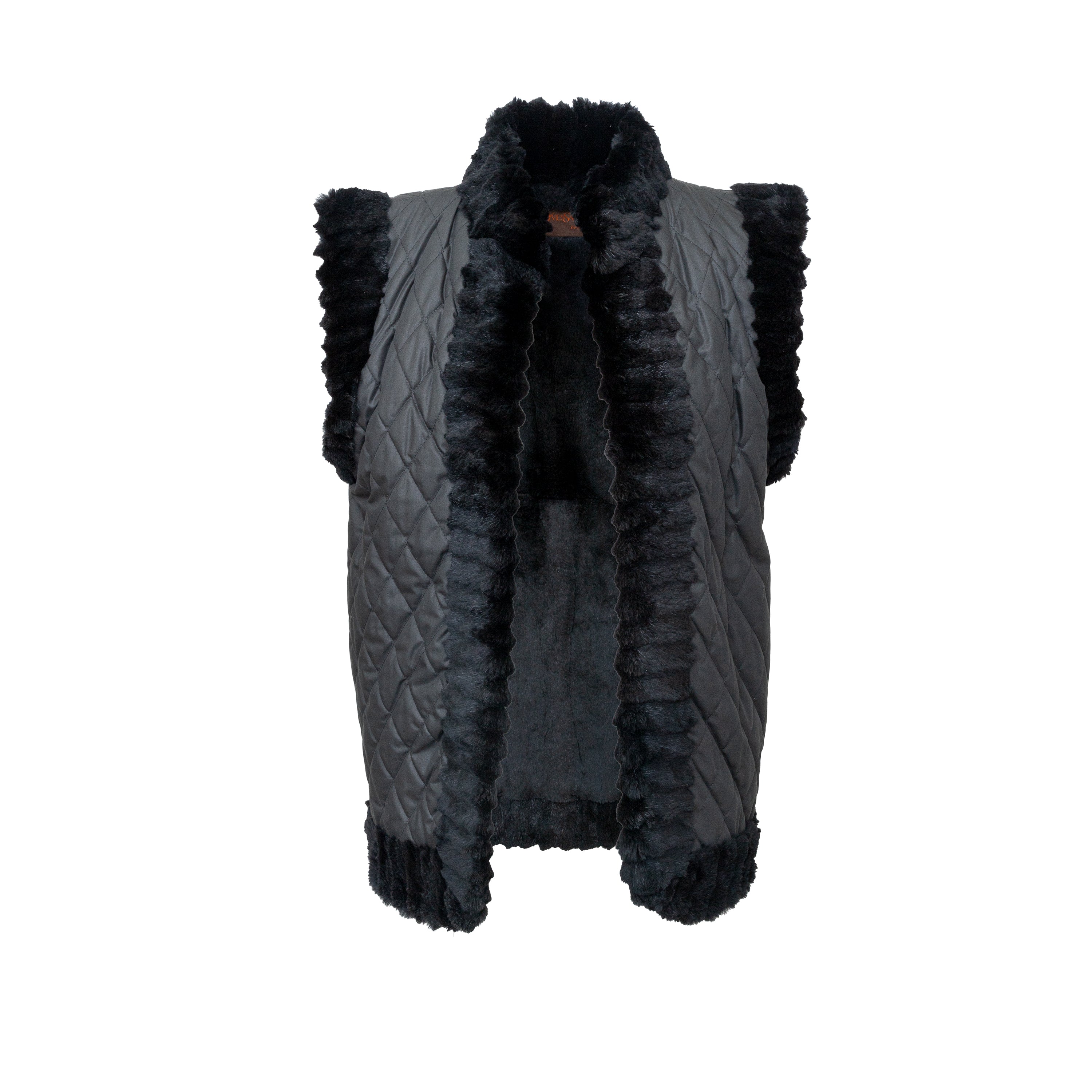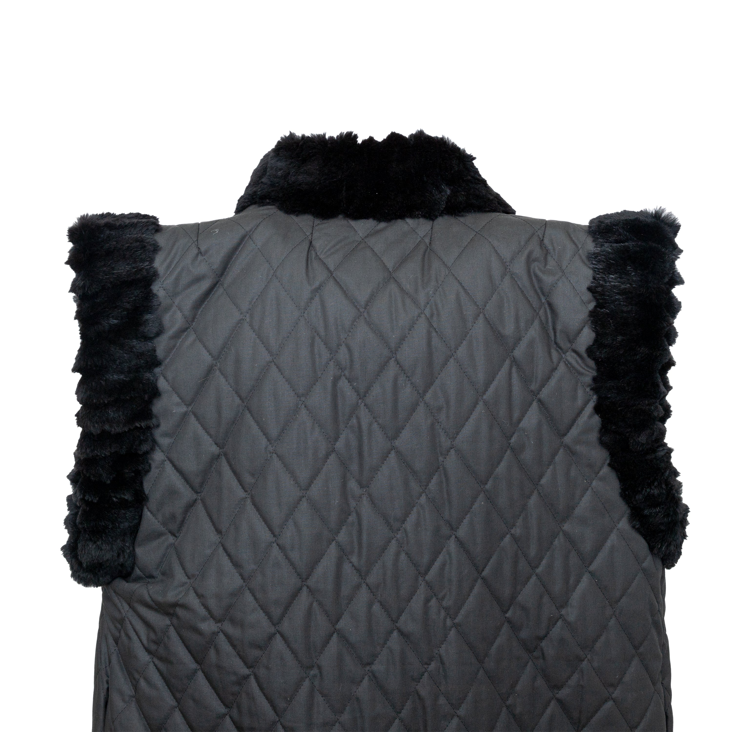 From the Fourrures line by Yves Saint Laurent, this vest is made from luxurious real fur and fully lined with fur on the inside. The open front design offers both comfort and sophistication. The quilted nylon exterior and unique fur trimmings on the hem add the perfect finishing touch to this 80s piece.