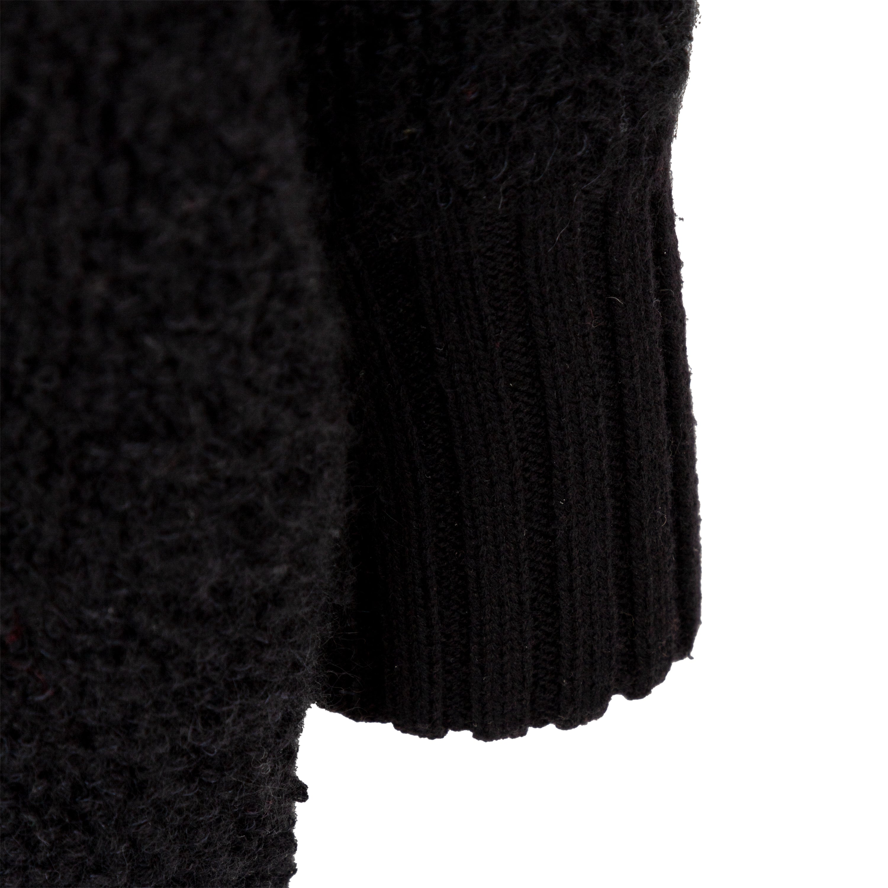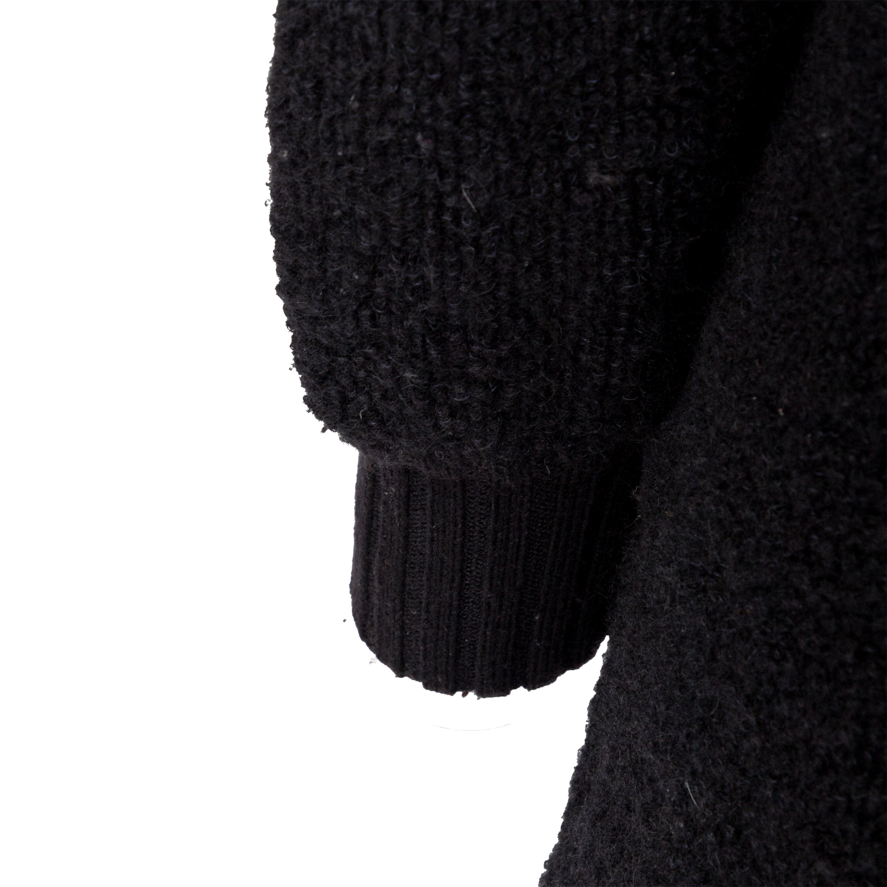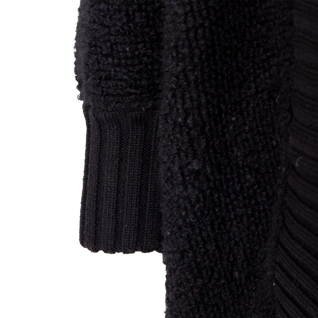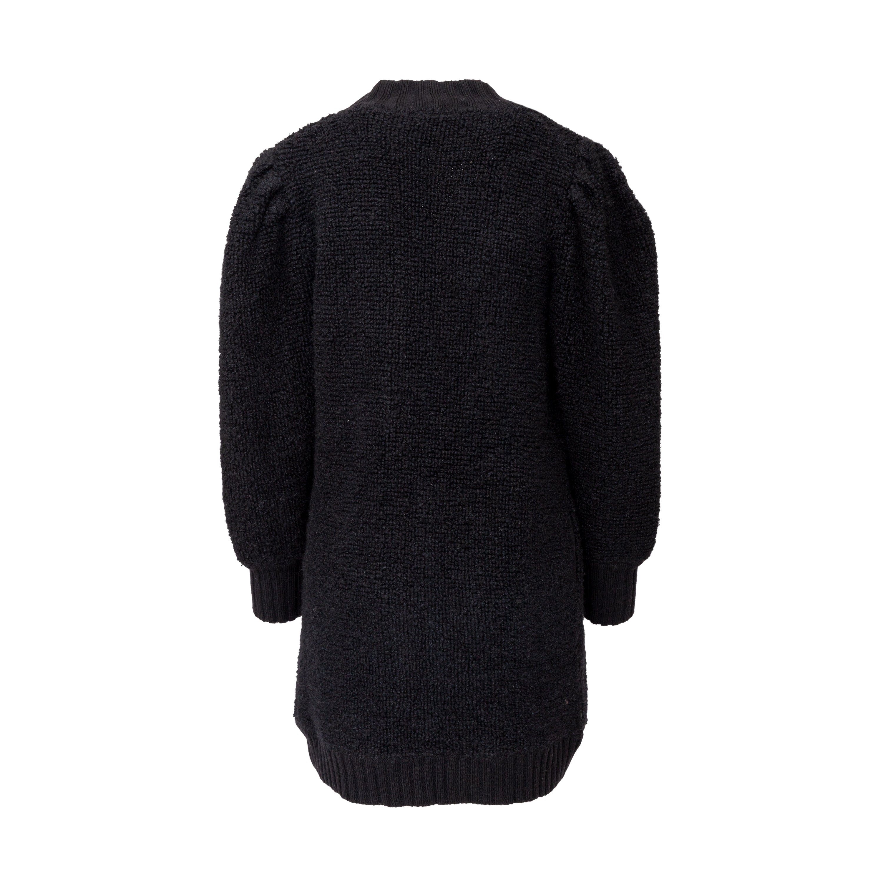 This Yves Saint Laurent cardigan from the tricot label offers a long silhouette and cozy, warm fit in terry knitted wool. The black, open front design is accented with ribbed hem and front borders. Puffed sleeves add a touch of playfulness.