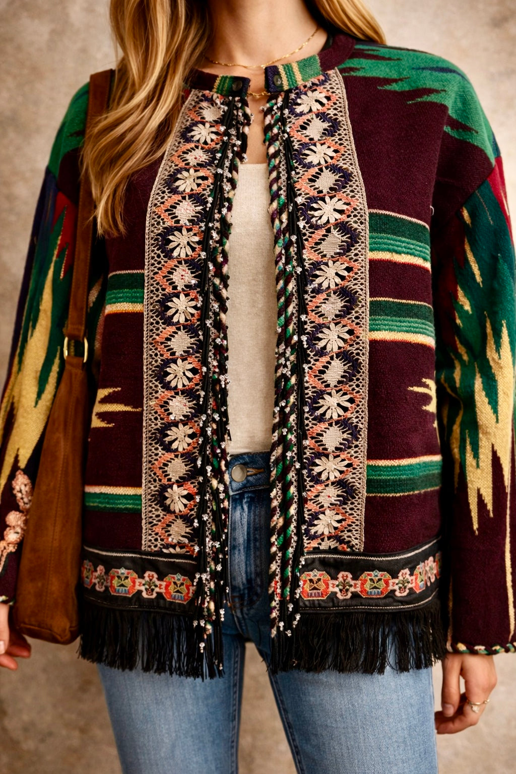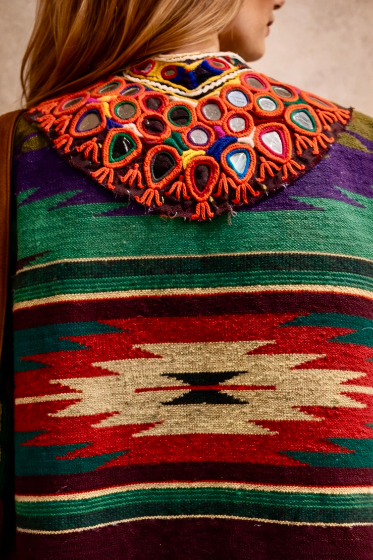 Holly, 70s reworked Mexican beaded jacket with antique embroidery