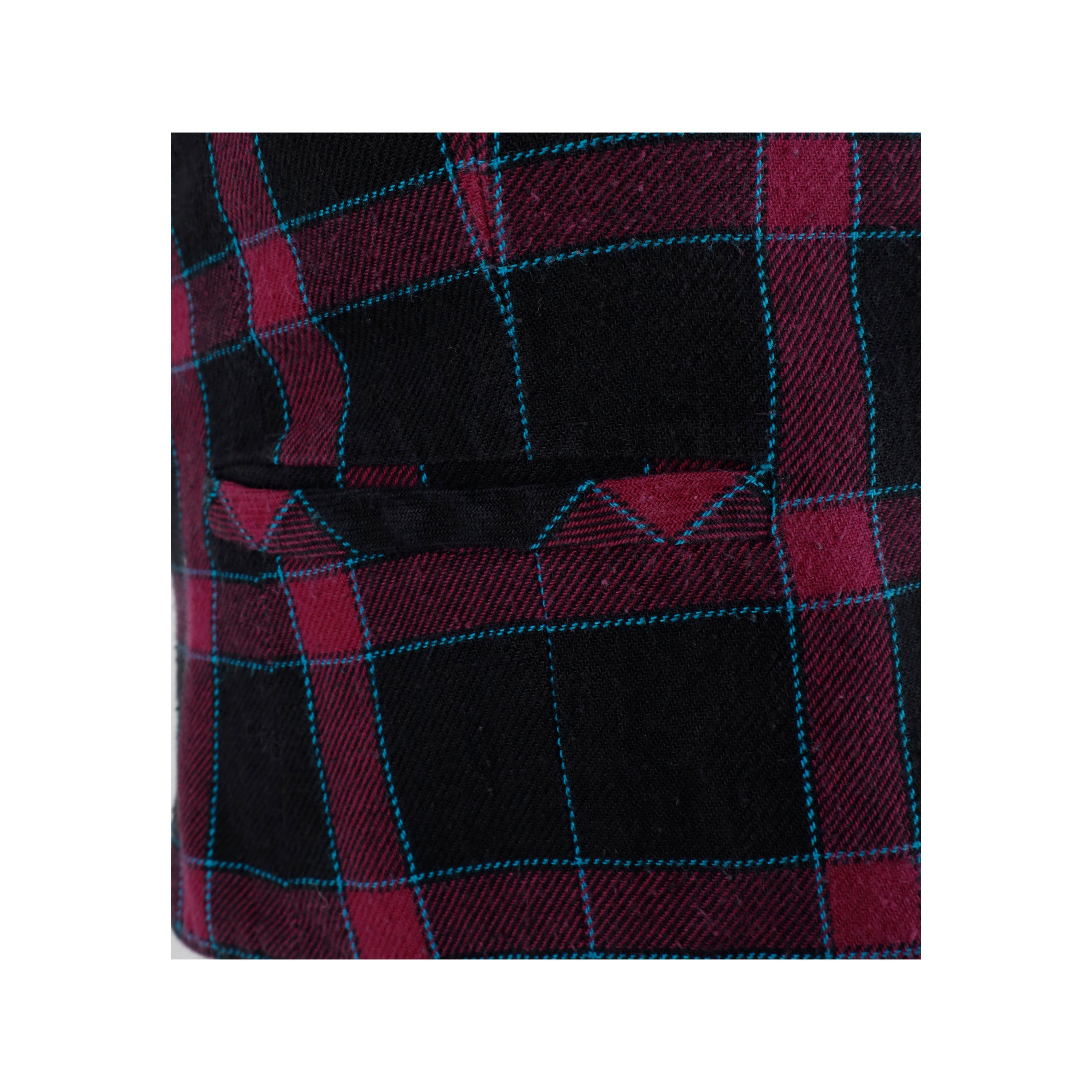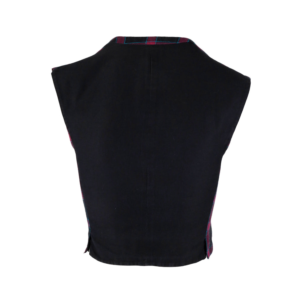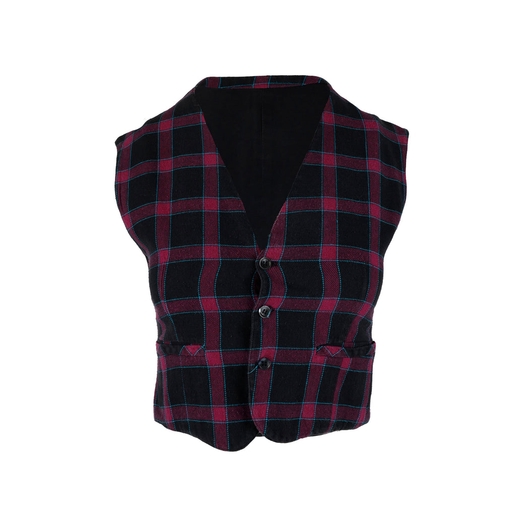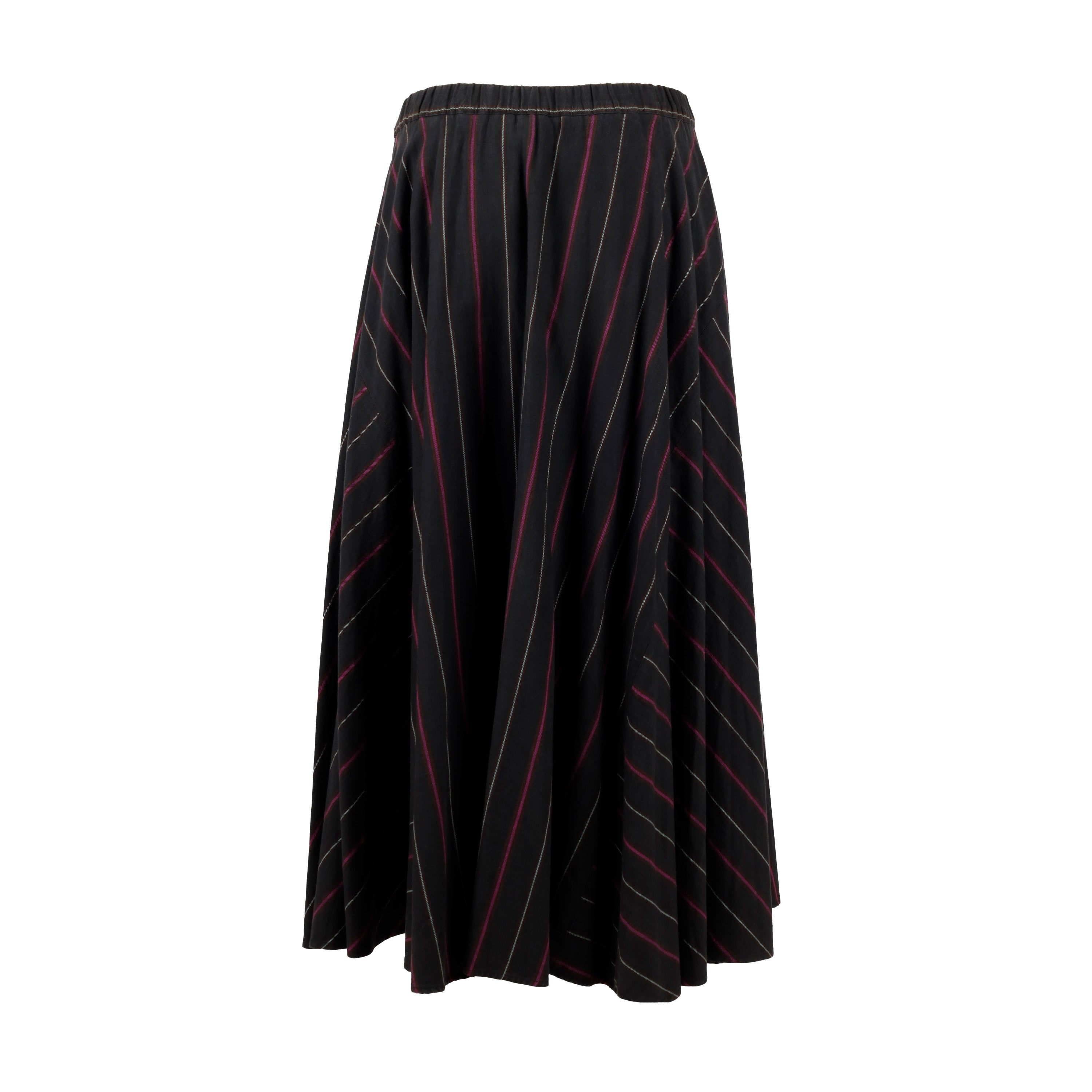 Discover the retro chic style of Jungle Jap by Kenzo with this vintage skirt and vest set from the 70s. Made of cotton, the v-neck vest boasts a checkered pattern while the long skirt features both horizontal and vertical stripes, creating a flattering and pleated silhouette. Designed by Kenzo for his initial line, Jungle Jap.