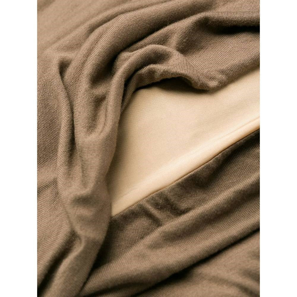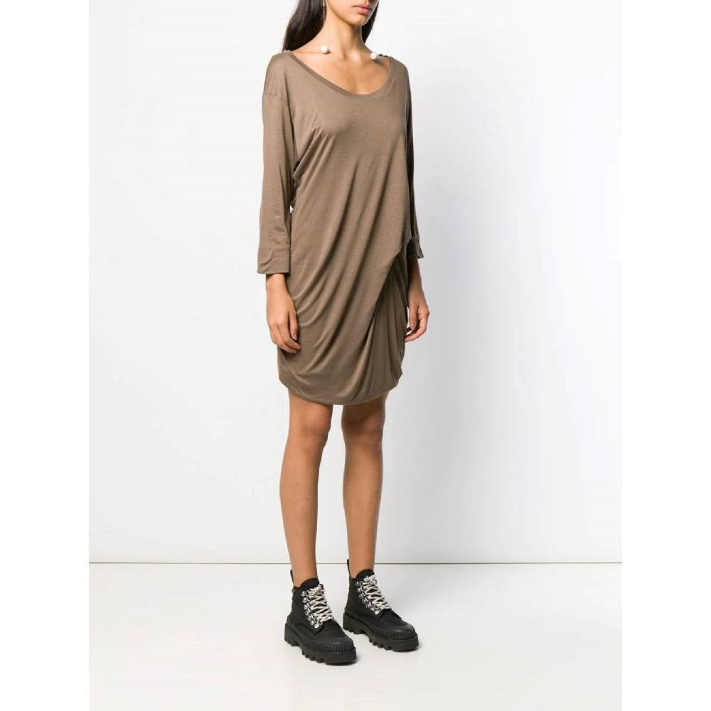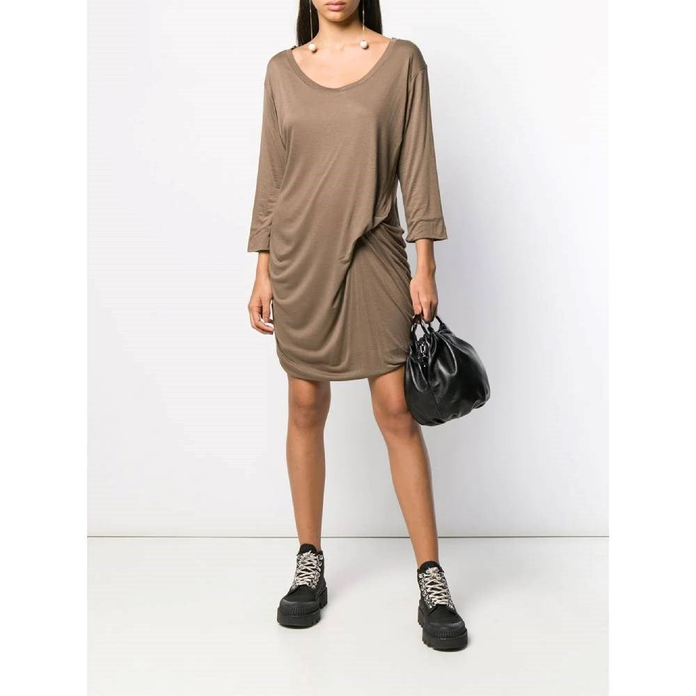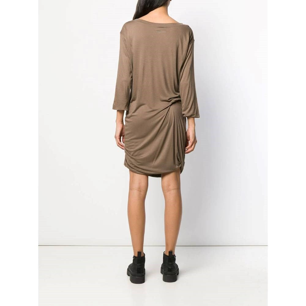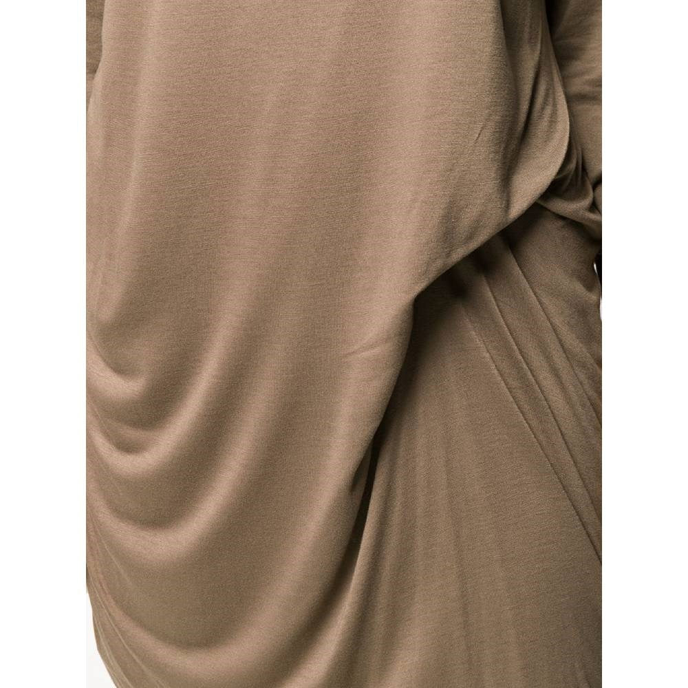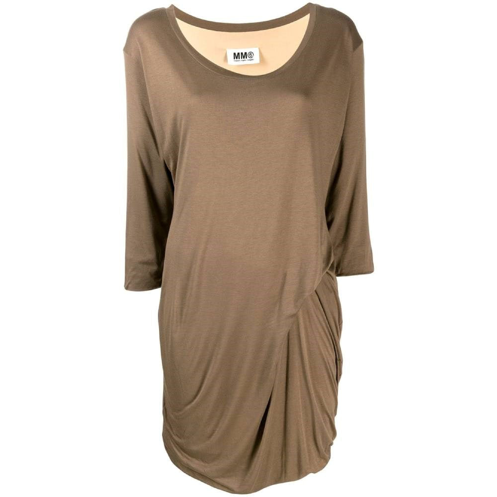 Maison Martin Margiela brown knee-length dress. Wide draped neckline and three-quarter sleeves.
