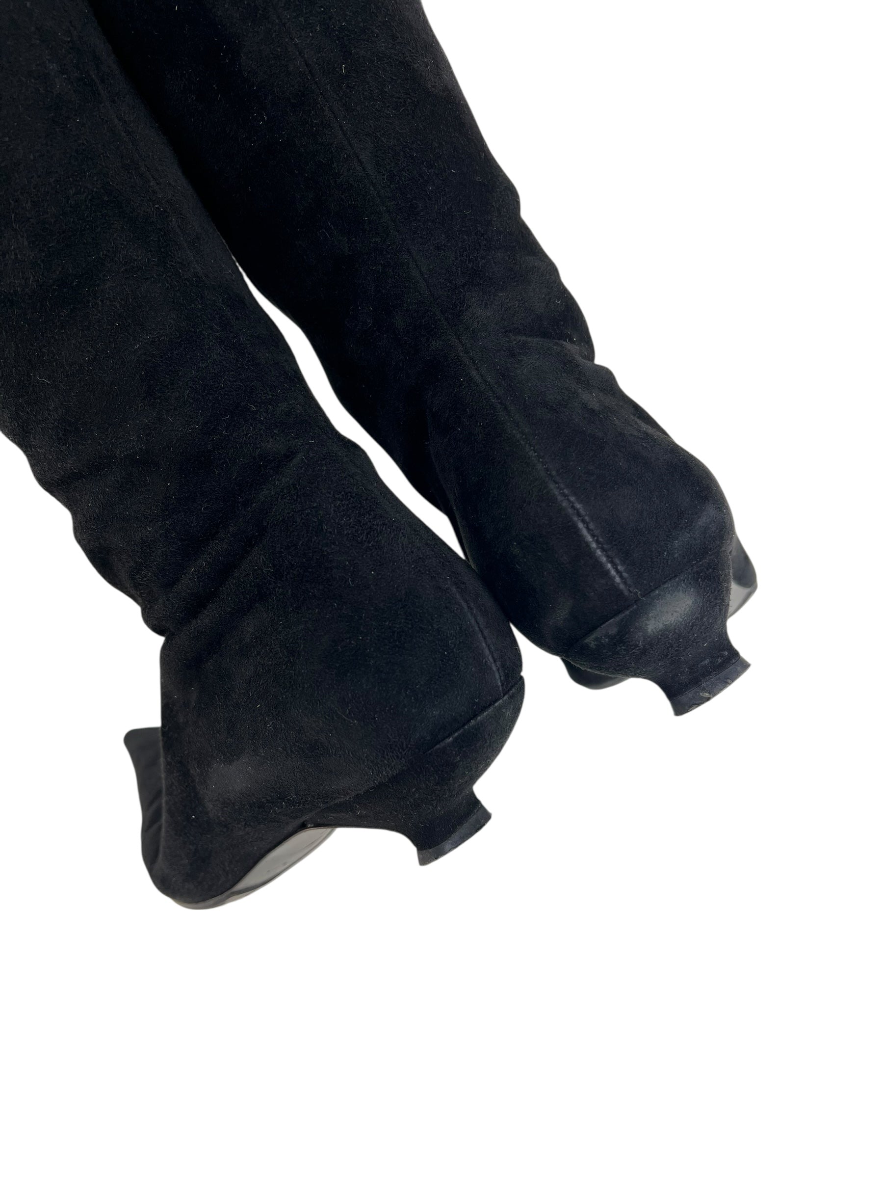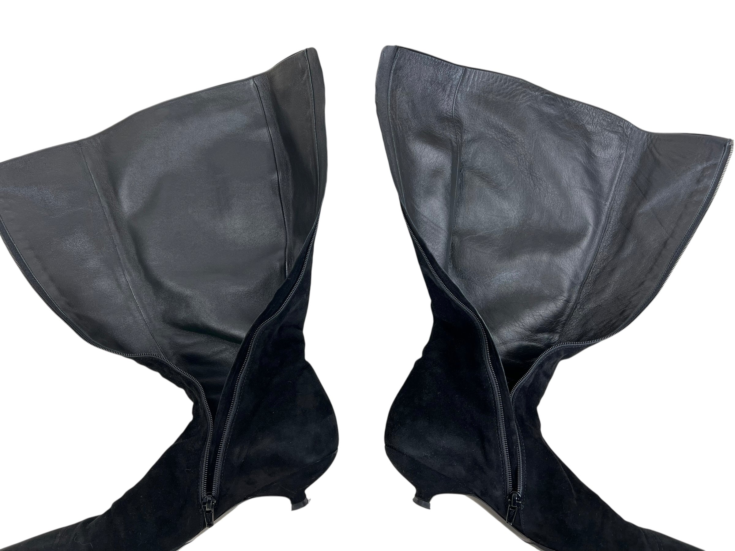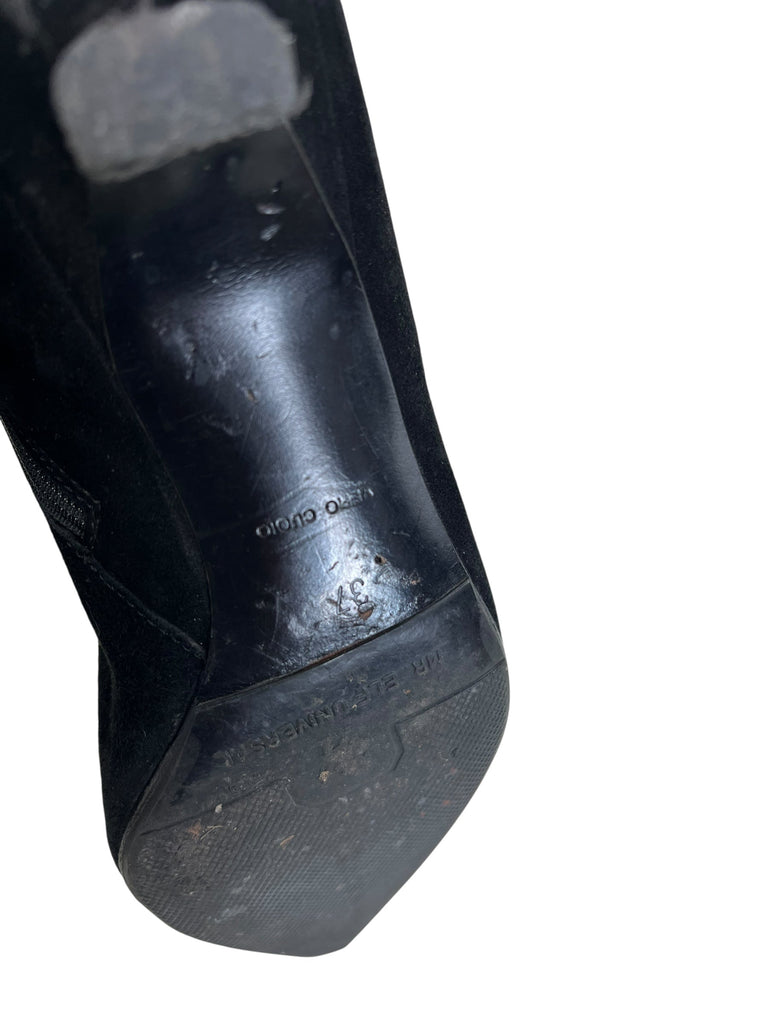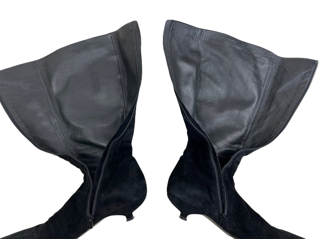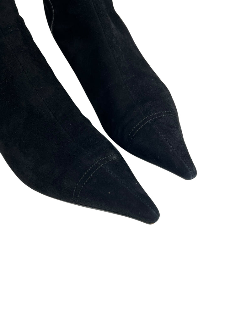 Miu Miu 2000s black suede kitten heel boots with buckled bow details. Size UK4 (EU37/ US6). All details below 👇