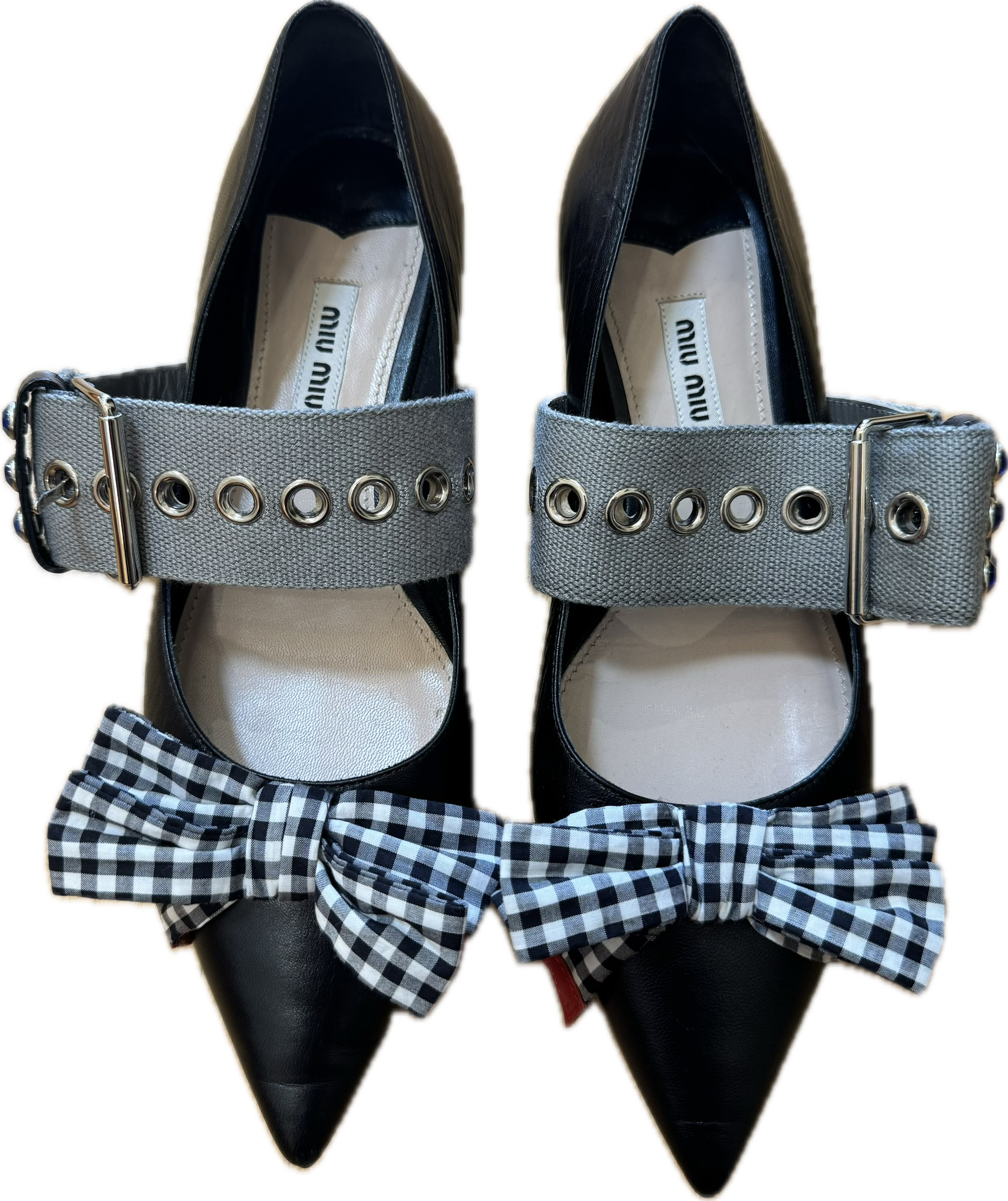 Miu Miu FW16 Studded Gingham Bow Flats-Size 37