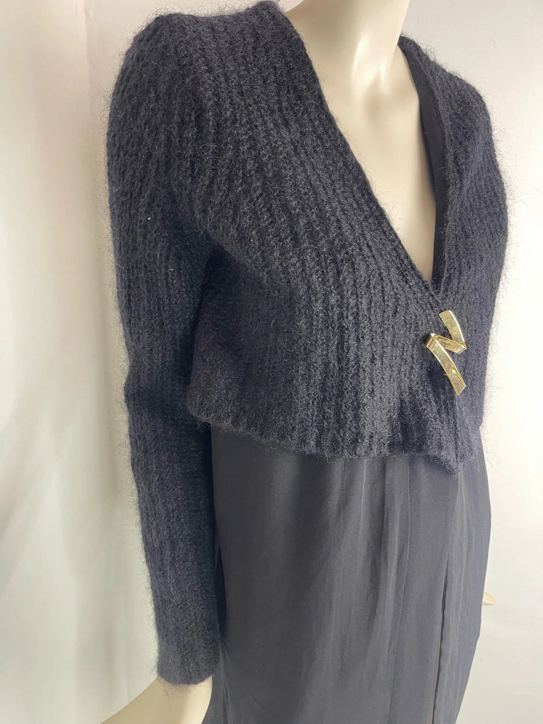 Mohair Knitted Lined Chiffon Cardigan with Vintage Brooch
