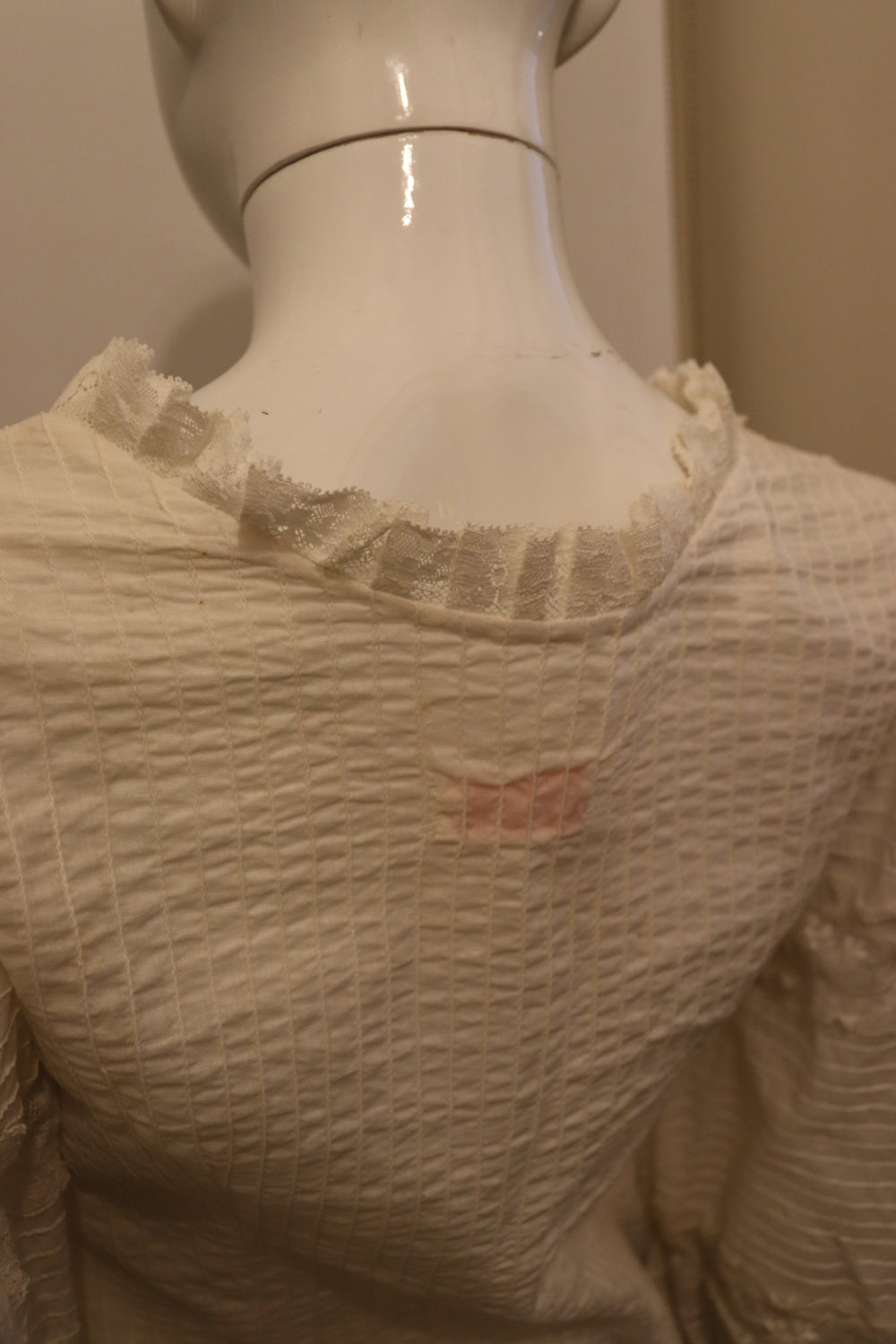 A stunning vintage blouse by Mexicana. In great condition, the blouse has wonderful pintuck detail front and back with lace decoration. It has a round neckline with button front opening . The sleaves are gathered with an elasticated cuff. Measurements Bust 34'', length 22''