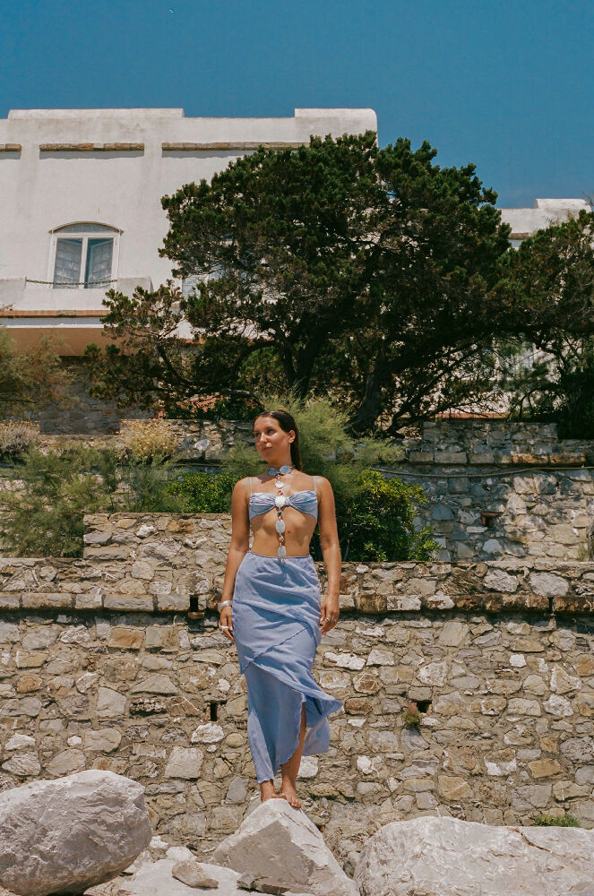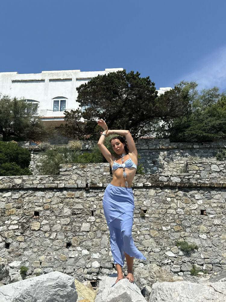Ethereal and elegant, this Blumarine maxi skirt is crafted from 100% pure silk in a soft, light blue hue. The fluid silk fabric moves beautifully, enhanced by its layered fishtail silhouette that subtly flares toward the hem for a graceful, feminine finish. A true statement piece, it embodies Blumarine’s signature romantic style with strong Y2K and early 2000s runway influences, making it perfect for collectors and lovers of the iconic Blumarine aesthetic. Versatile enough to style for resort wear, summer evenings, or minimalist luxury looks, it’s both timeless and on-trend.