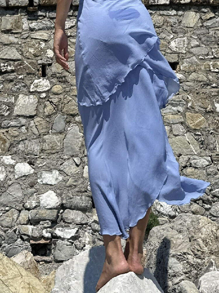 VINTAGE BLUMARINE PURE SILK MAXI FISHTAIL SKIRT IN LIGHT BLUE