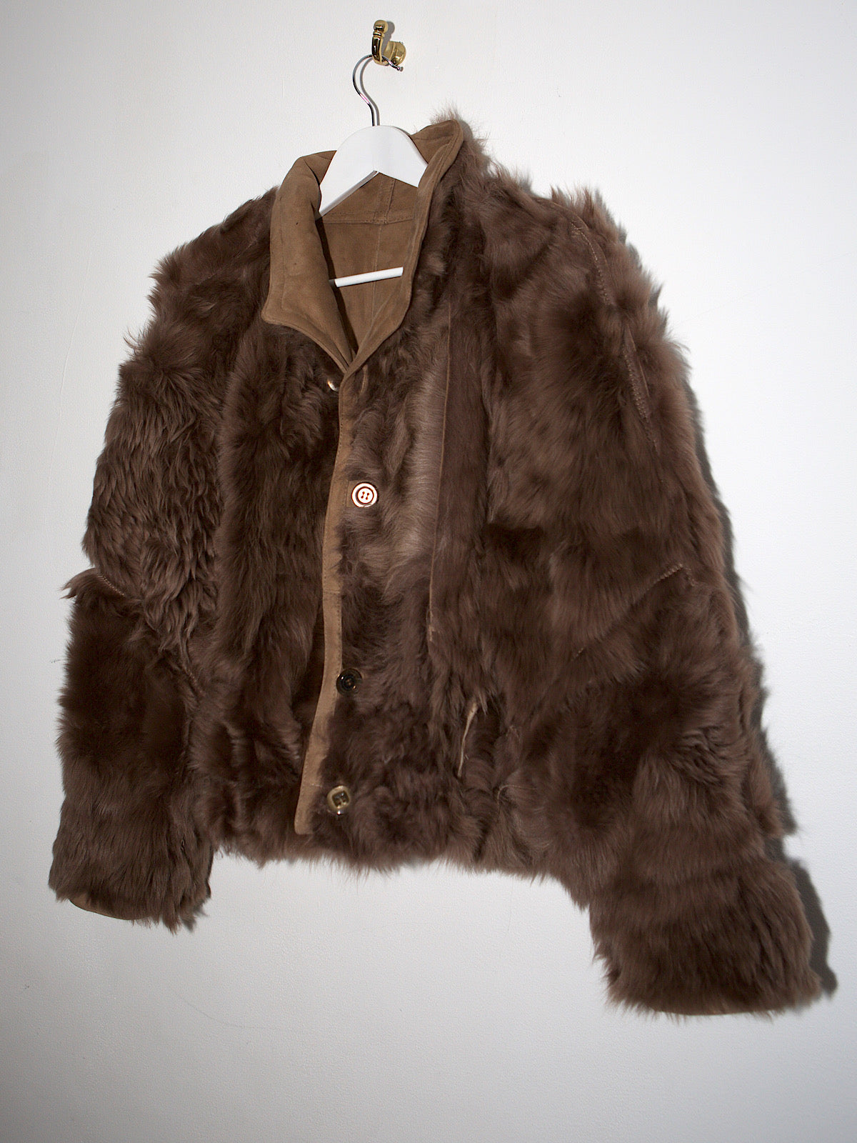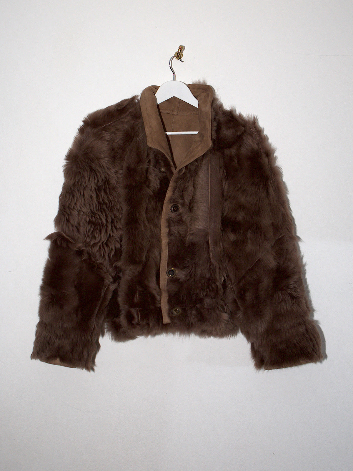 Upcycled sheepskin, they’ve been cropped and fastened with button attachments on both side!