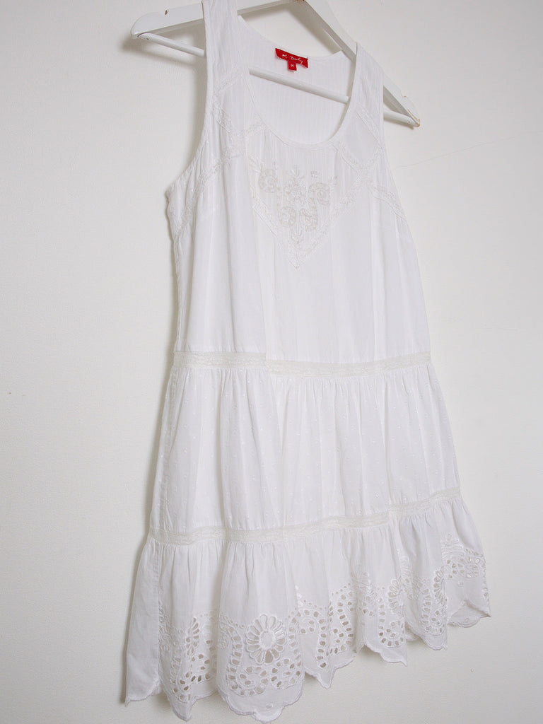 This romantic rock mini dress is made in lovely cotton lace and embroideries.