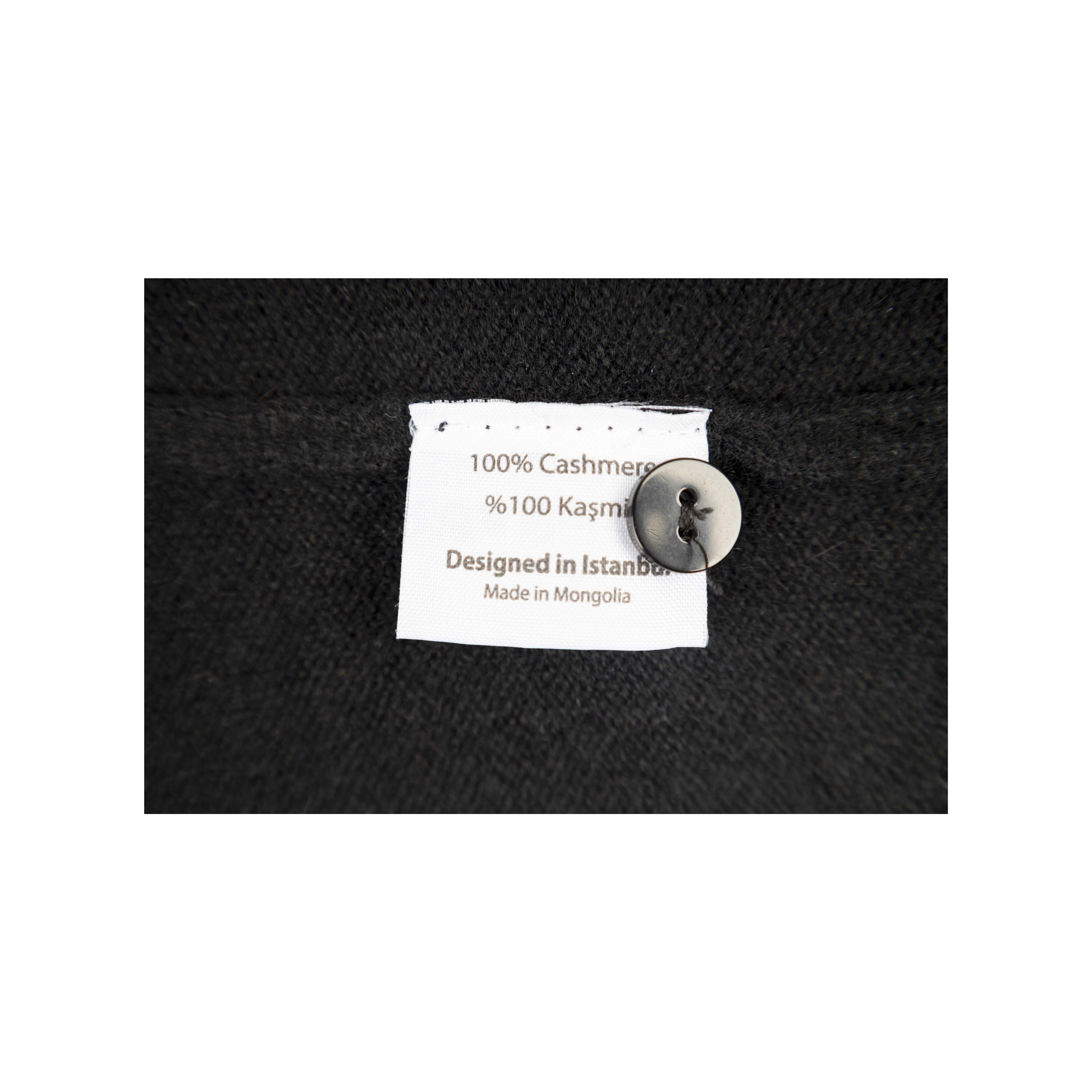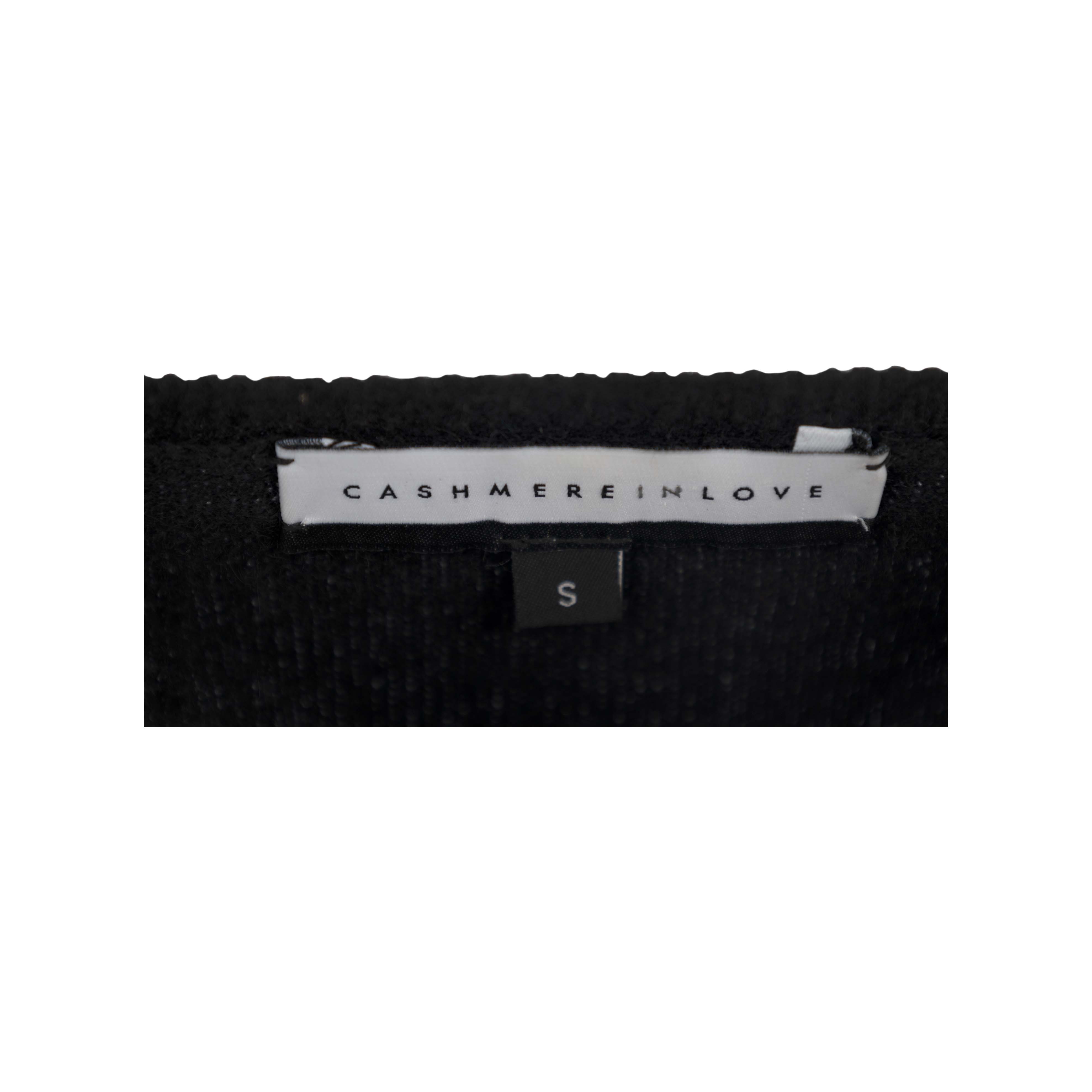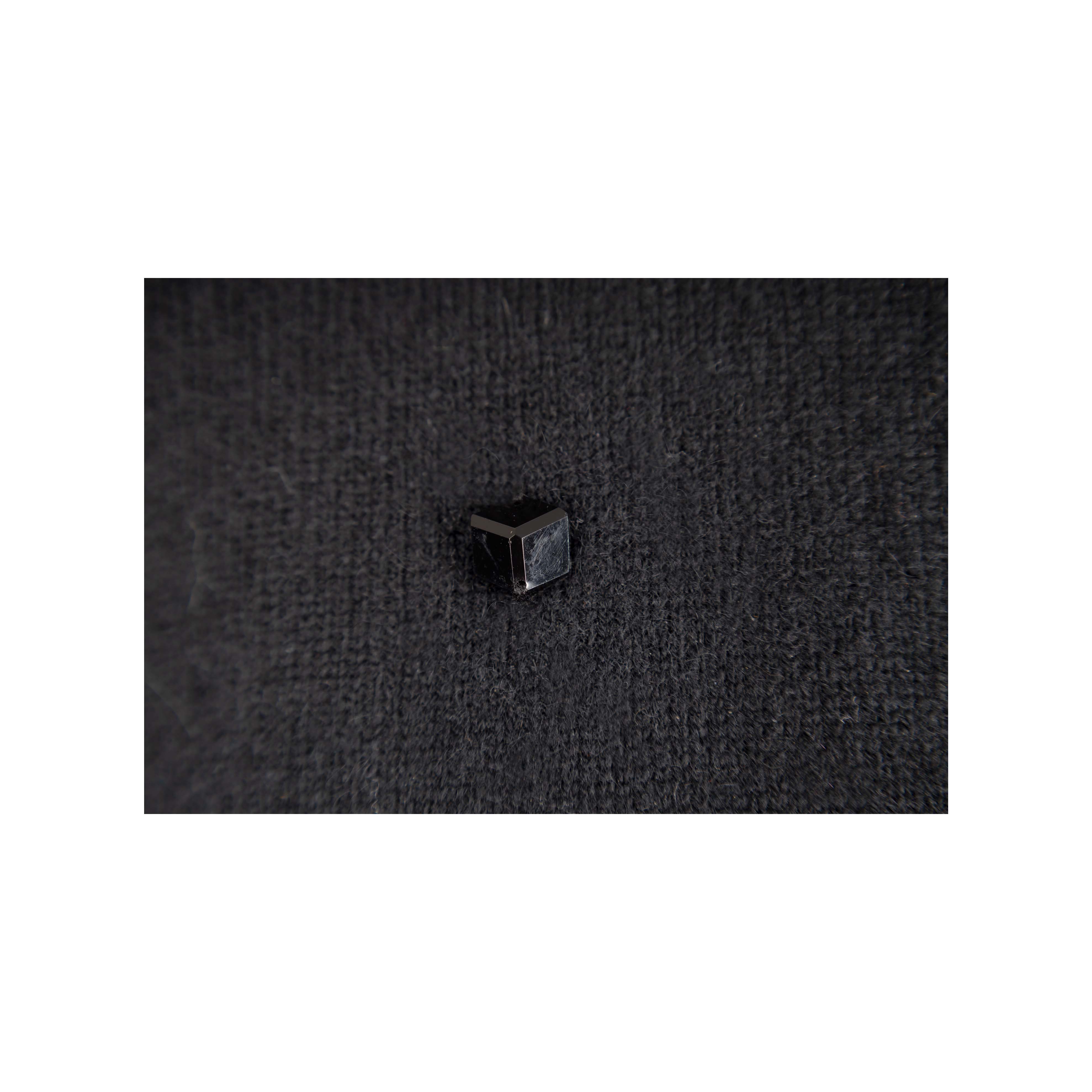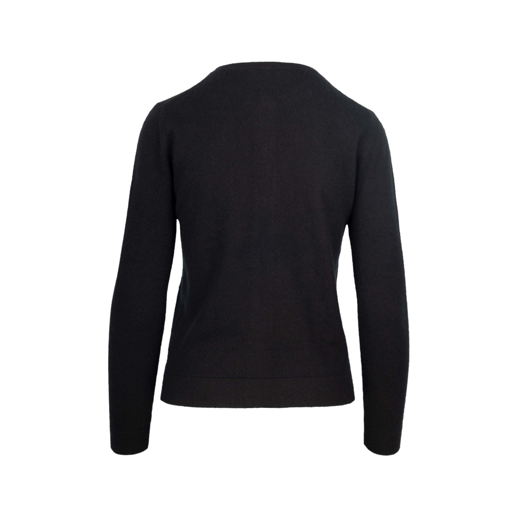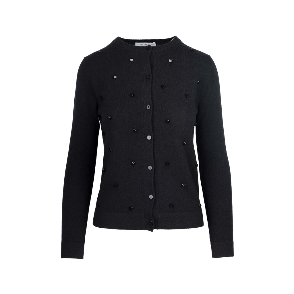 The CashmereInLove Jeweled Cardigan is embellished with black rock studs strategically placed to create a balanced aesthetic. The buttons start from the crewneck and end a couple of inches above the hem.