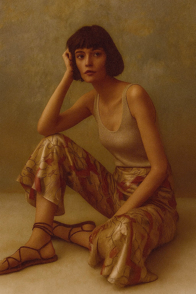 Jill, 1920s silk organza floral art deco reworked frail trousers