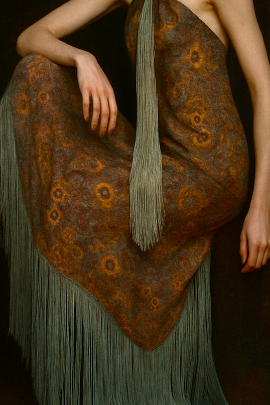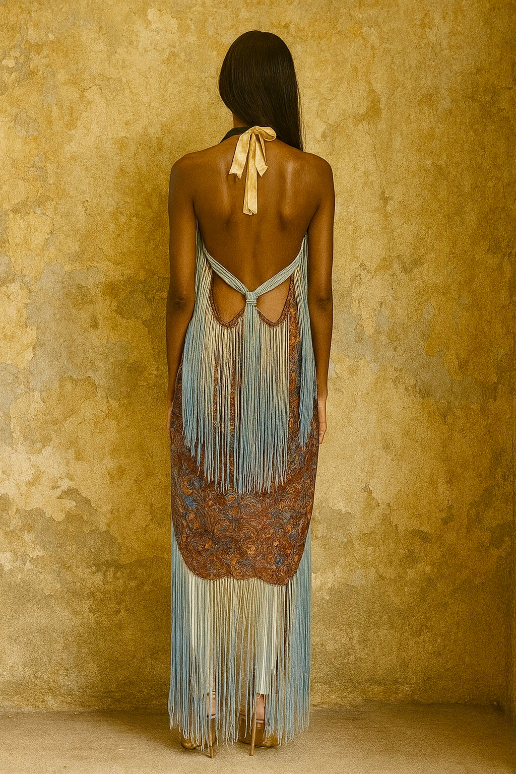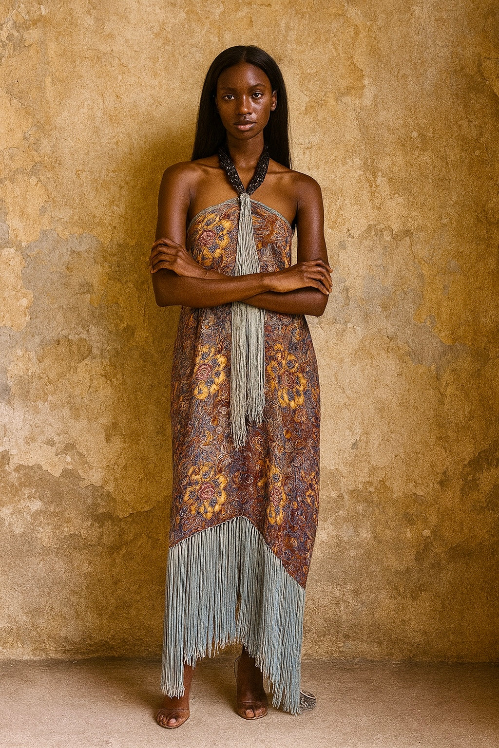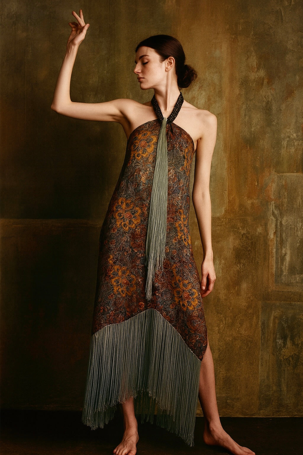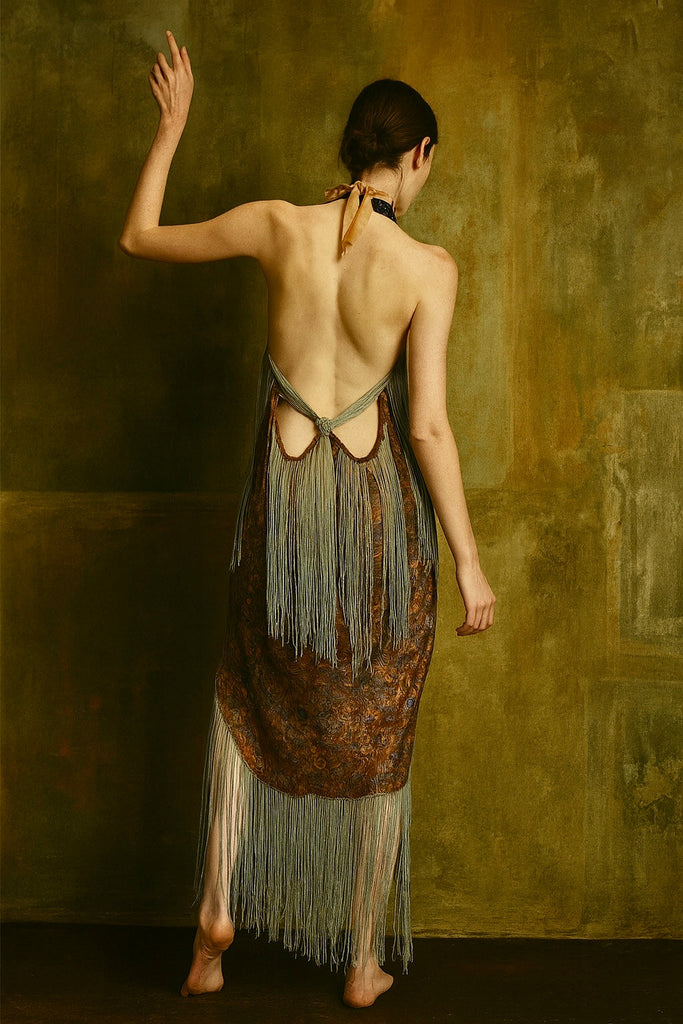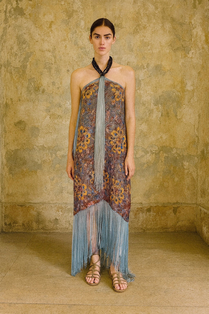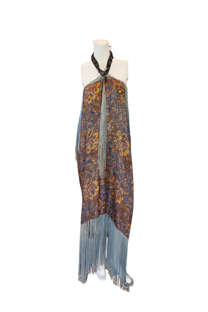 Norme, 20s floral fringed lamé dress