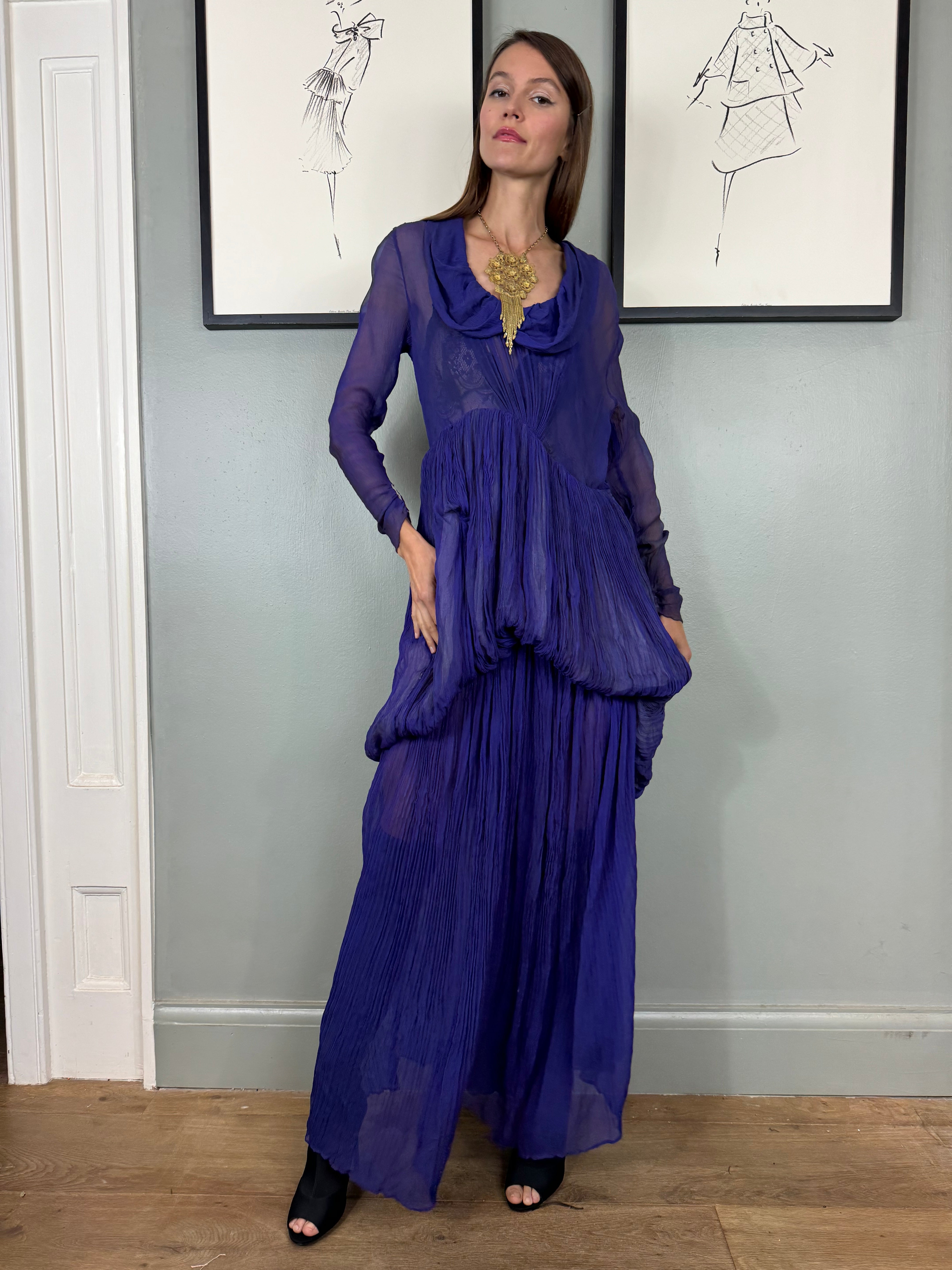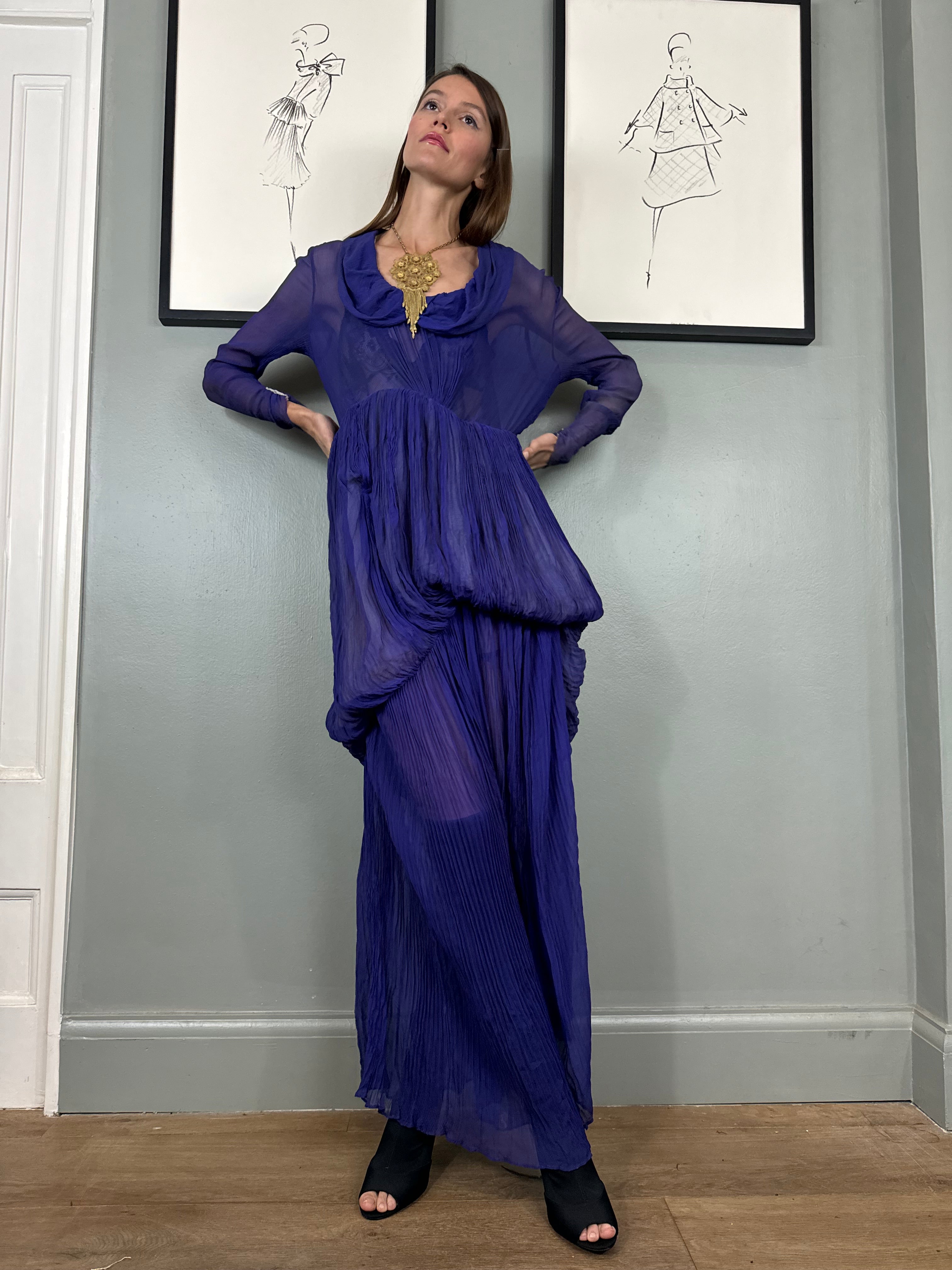 Jude, 30s chiffon purple pleated dress