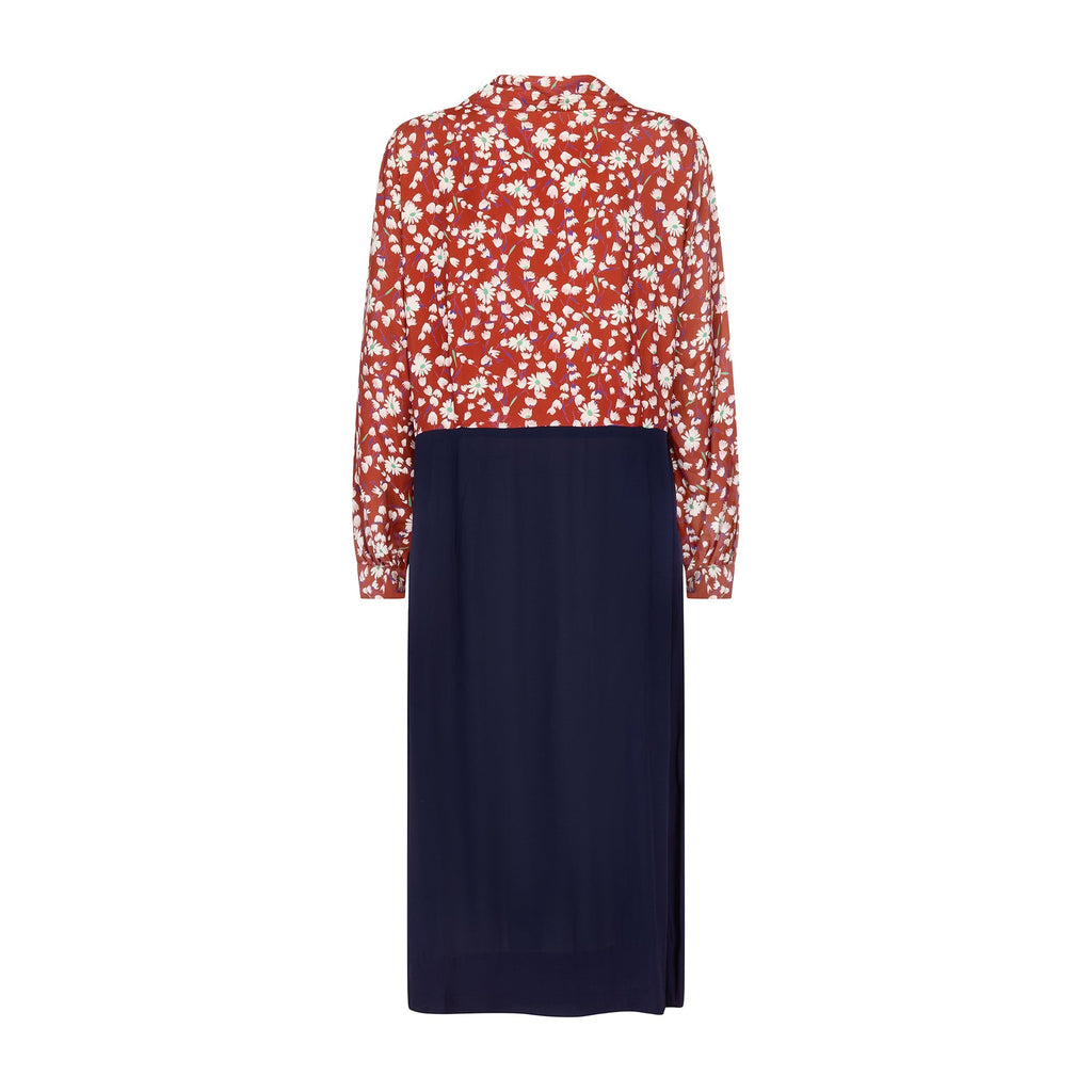 1940s Floral Cold Rayon and Navy Crepe Shirt Volup Dress