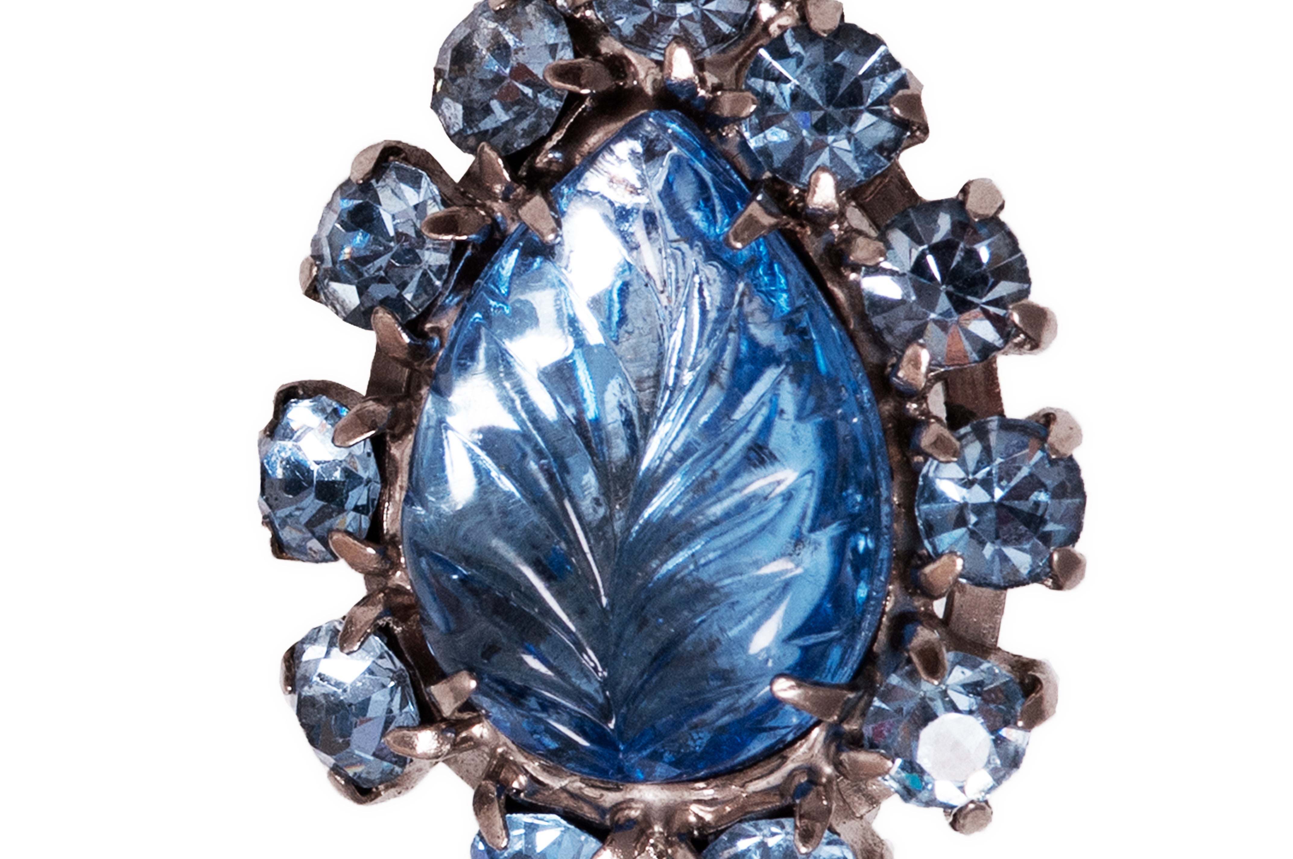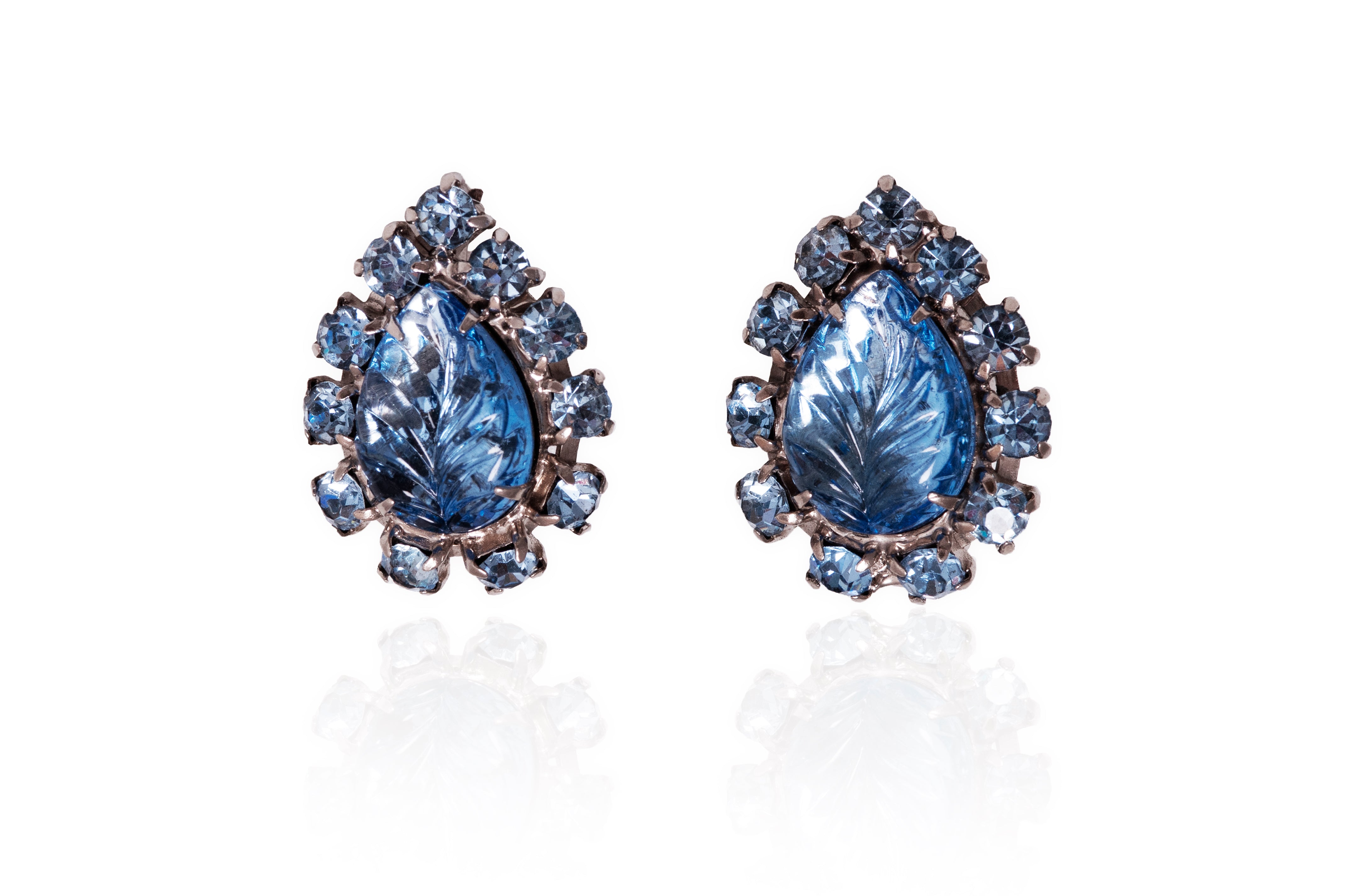 1950s Blue Leaf Motif Diamante & Glass Clip-on Earrings