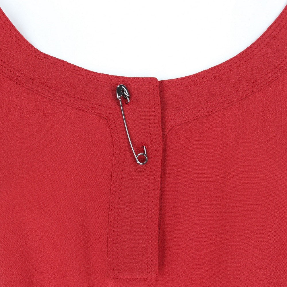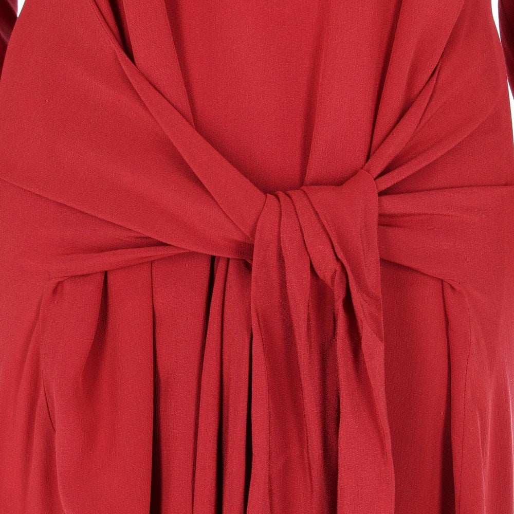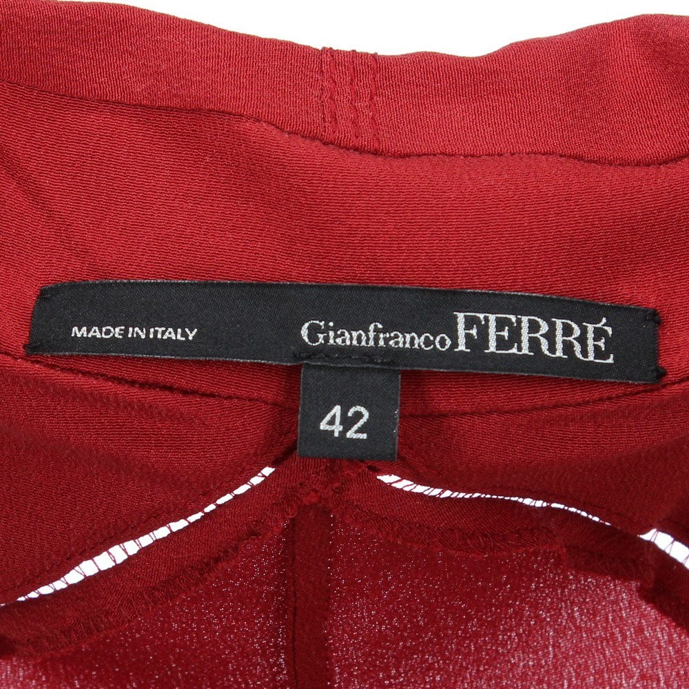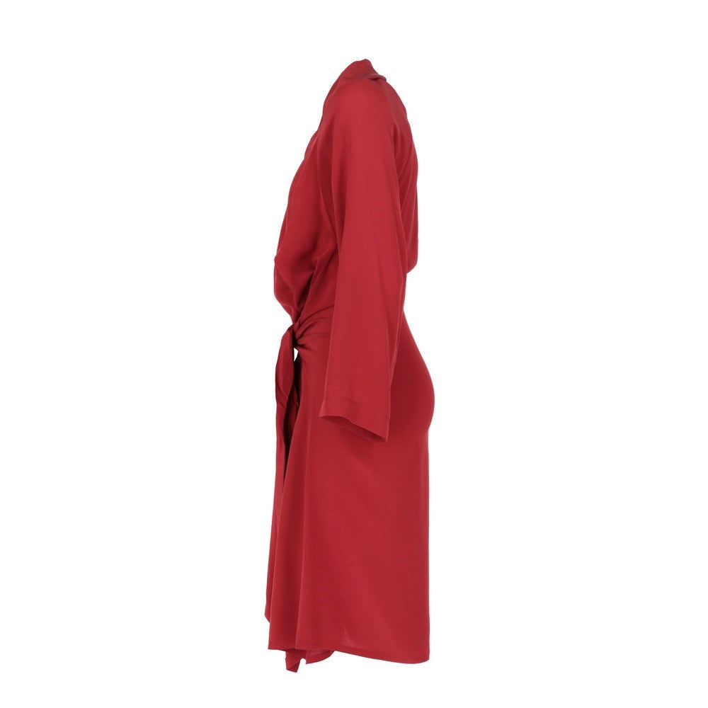 Gianfranco Ferré brick-colored silk dress. Round neckline and decorative brooch. Long sleeves, belt at the waist and perforated detail on the back.
