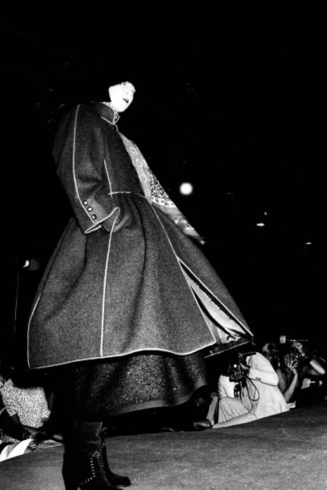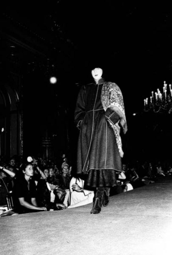 This runway documented aubergine-hued felt wool coat was created by Yves Saint Laurent for the brand’s beloved Fall 1976 collection. This collection was titled “Opéras - Ballets Russes”, a collection that the New York Times described as “A revolutionary collection that will change the course of fashion in the world.” Yves Saint Laurent named creating this show as his most beautiful memory in 30 years of designing, saying “Perhaps it wasn't the most successful one, but it was wonderfully received at a time when the world condemned opulence. And it was opulent.”