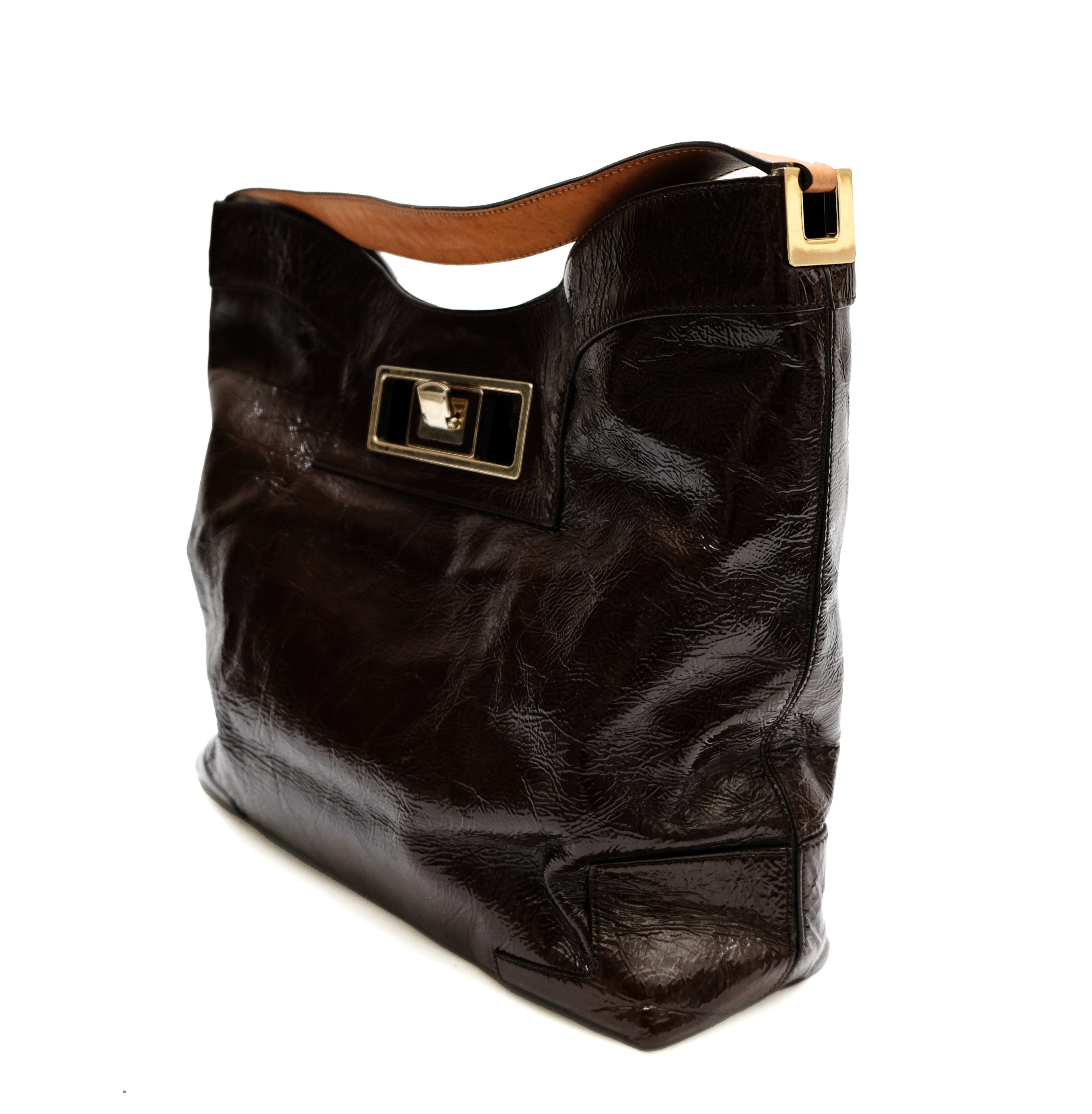Anya Hindmarch Brown Slouchy Patent Leather Shoulder Bag, L