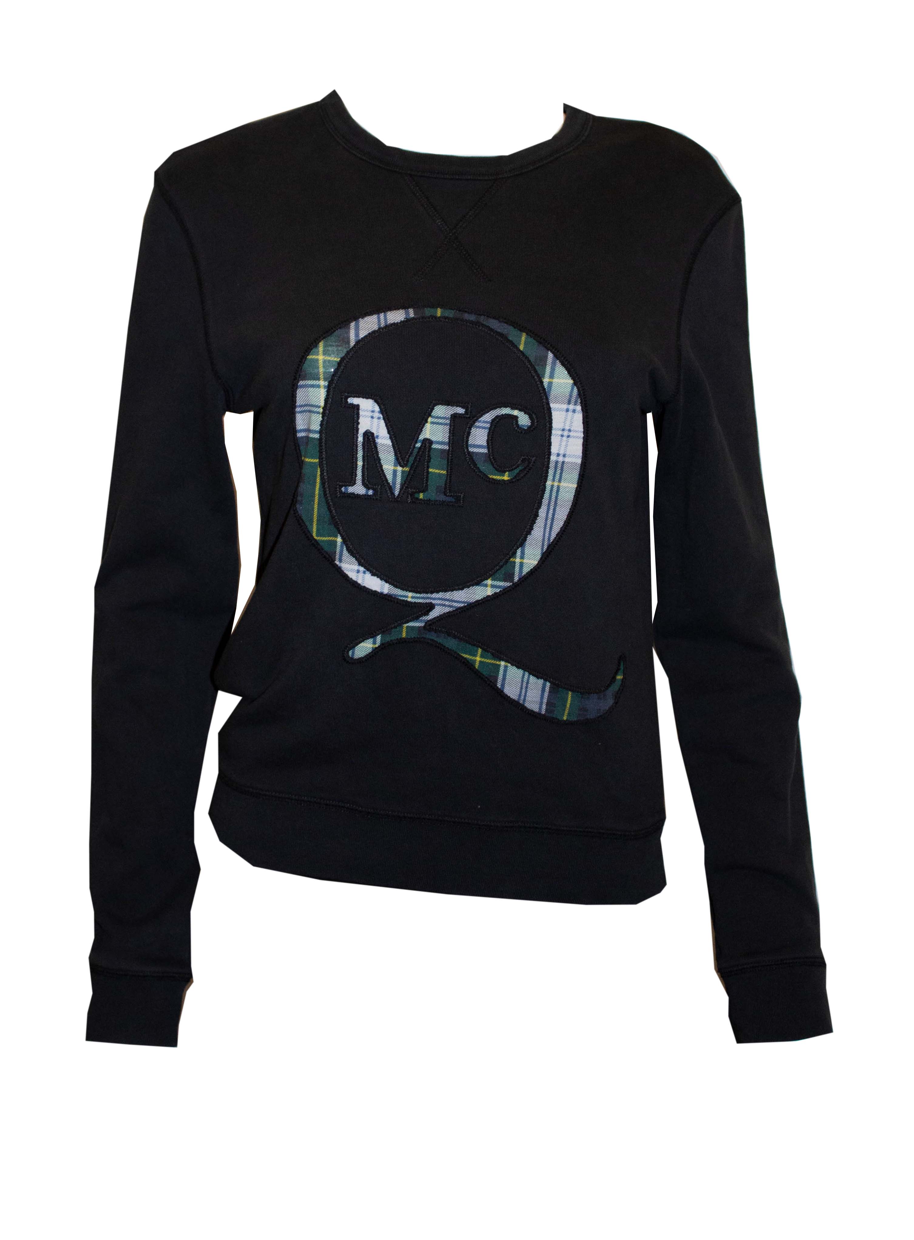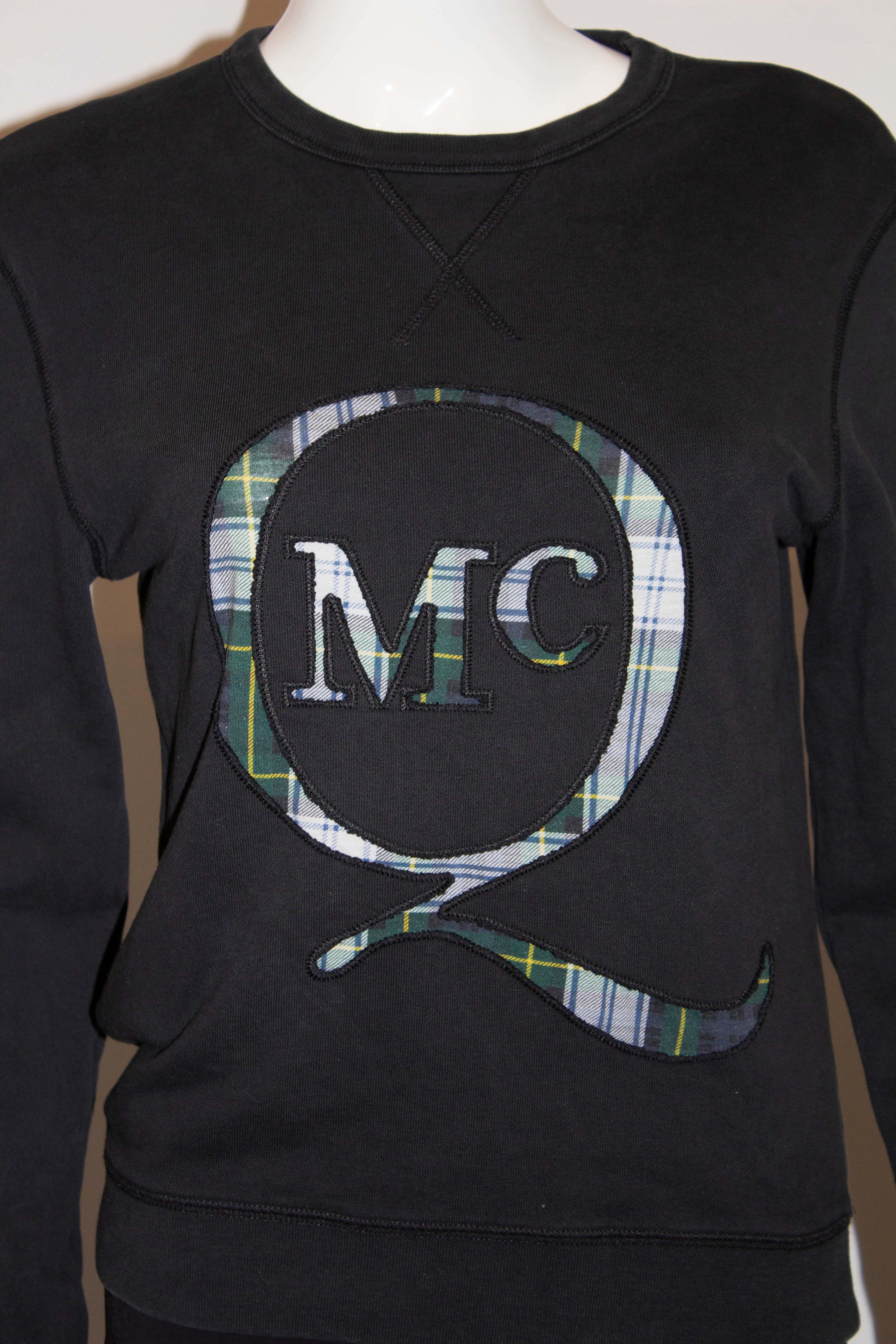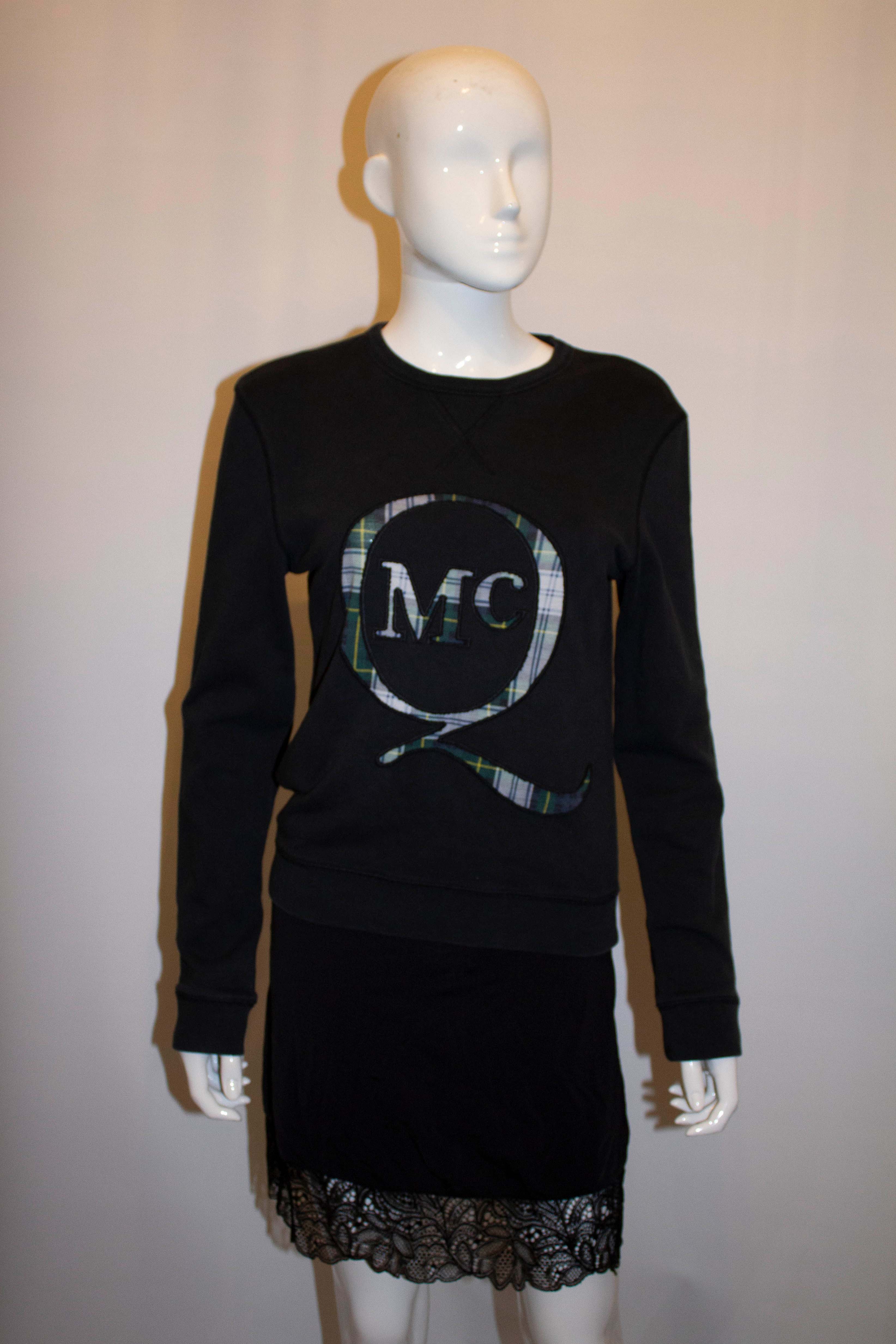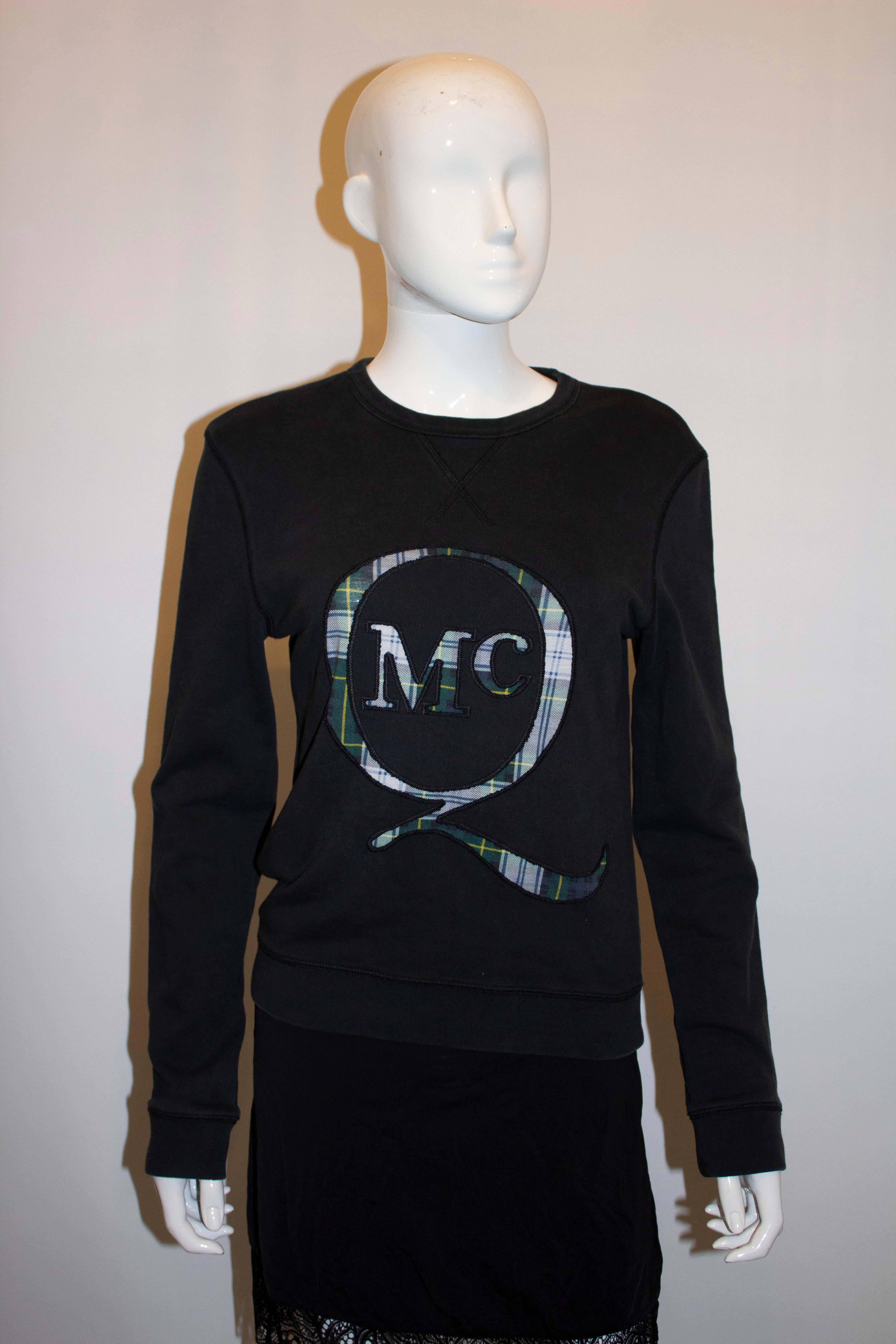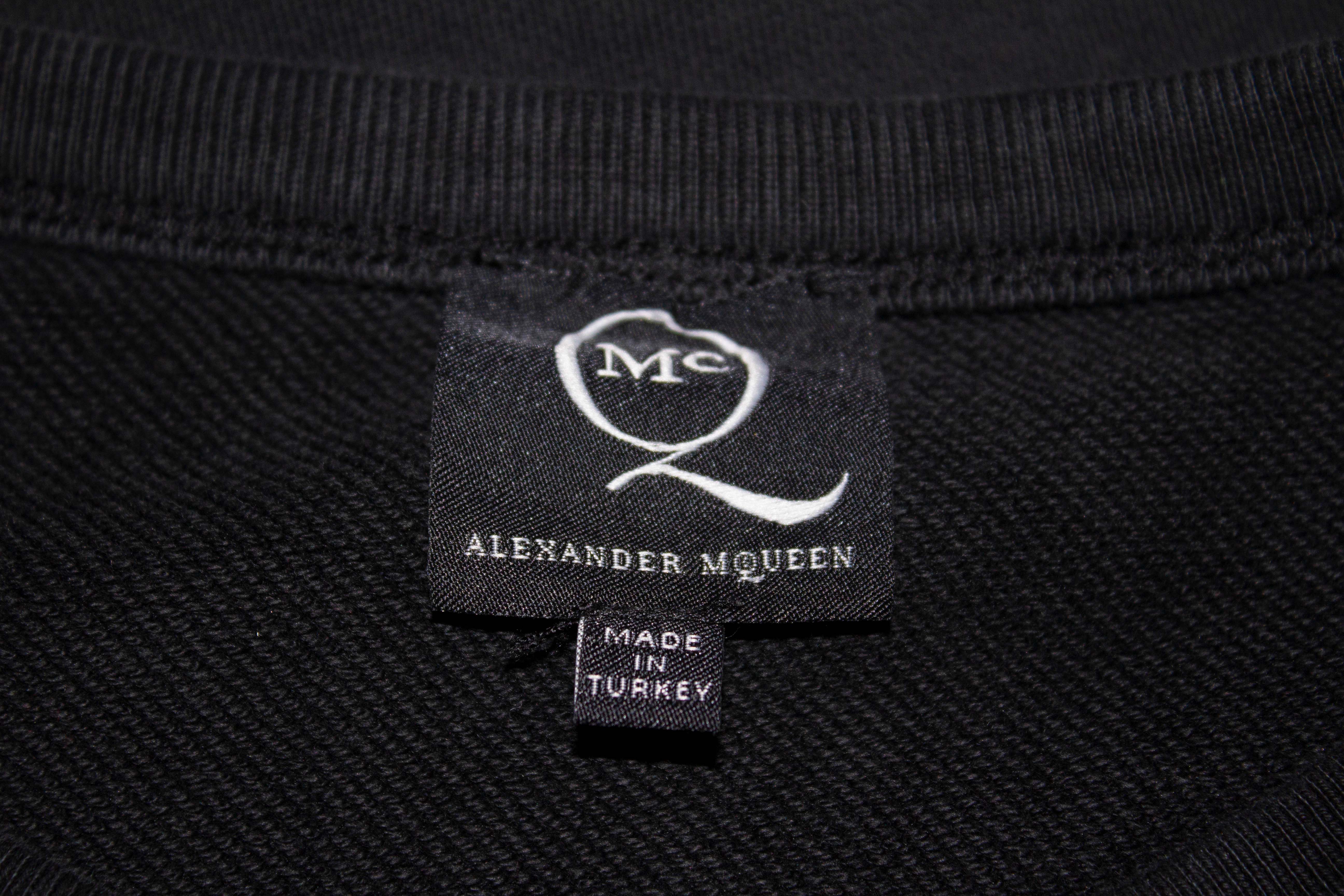 A fun sweatshirt by Alexander McQueen , McQueen line. The top has a round neckline, black background, ribbed hem and cuffs. It has a logo on the front and is 100 % cotton.
