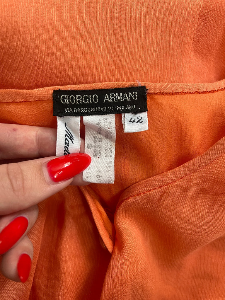 1980s Giorgio Armani Black Label Orange Silk Long Line Jacket