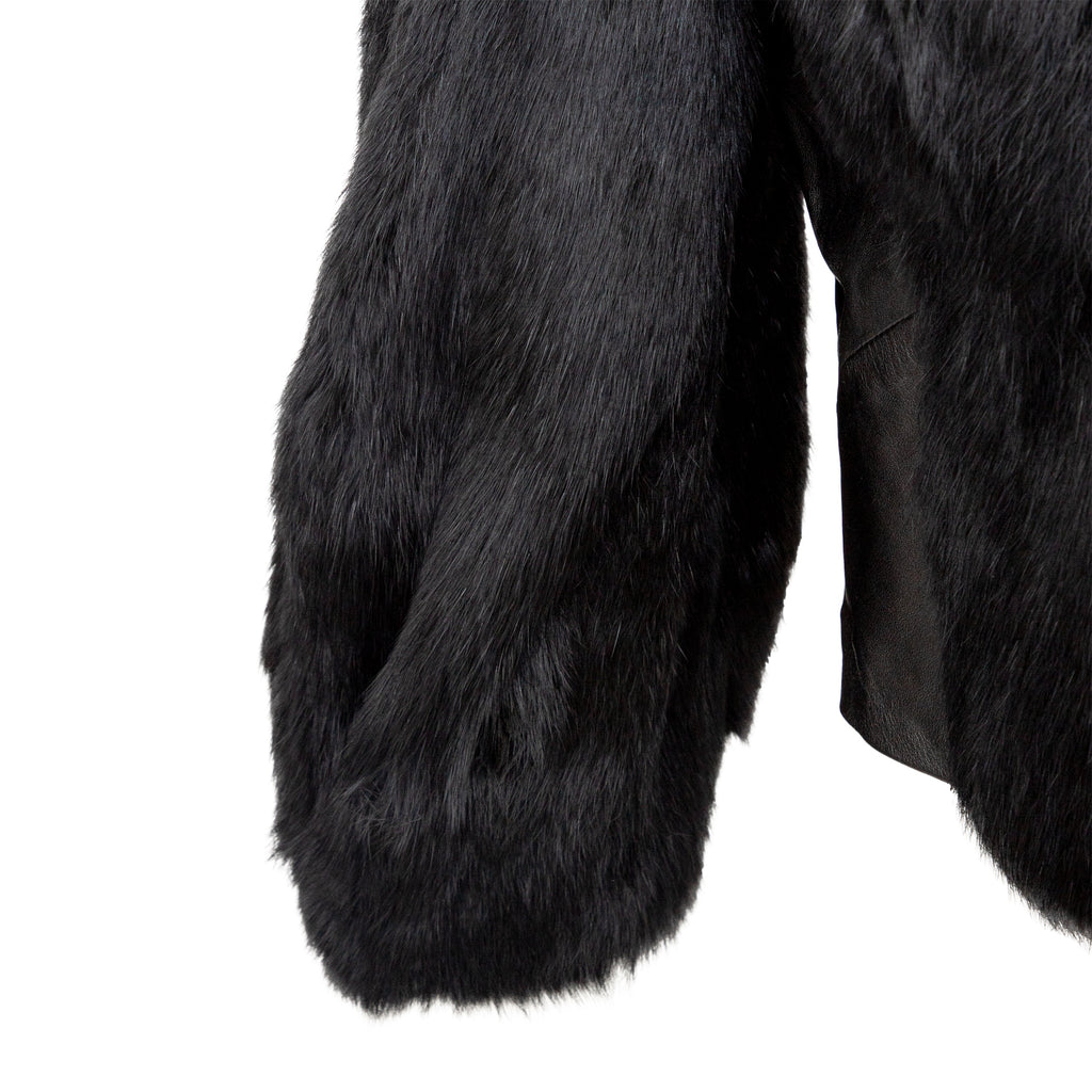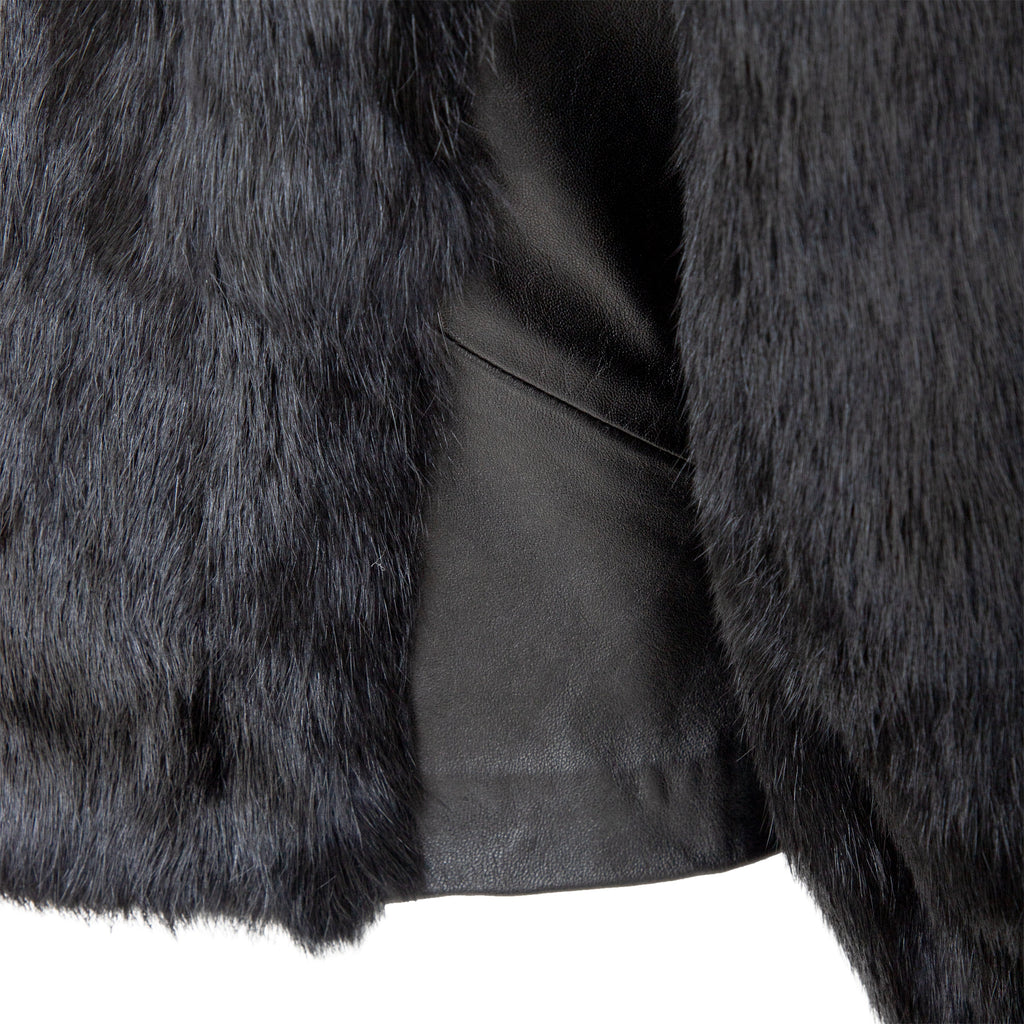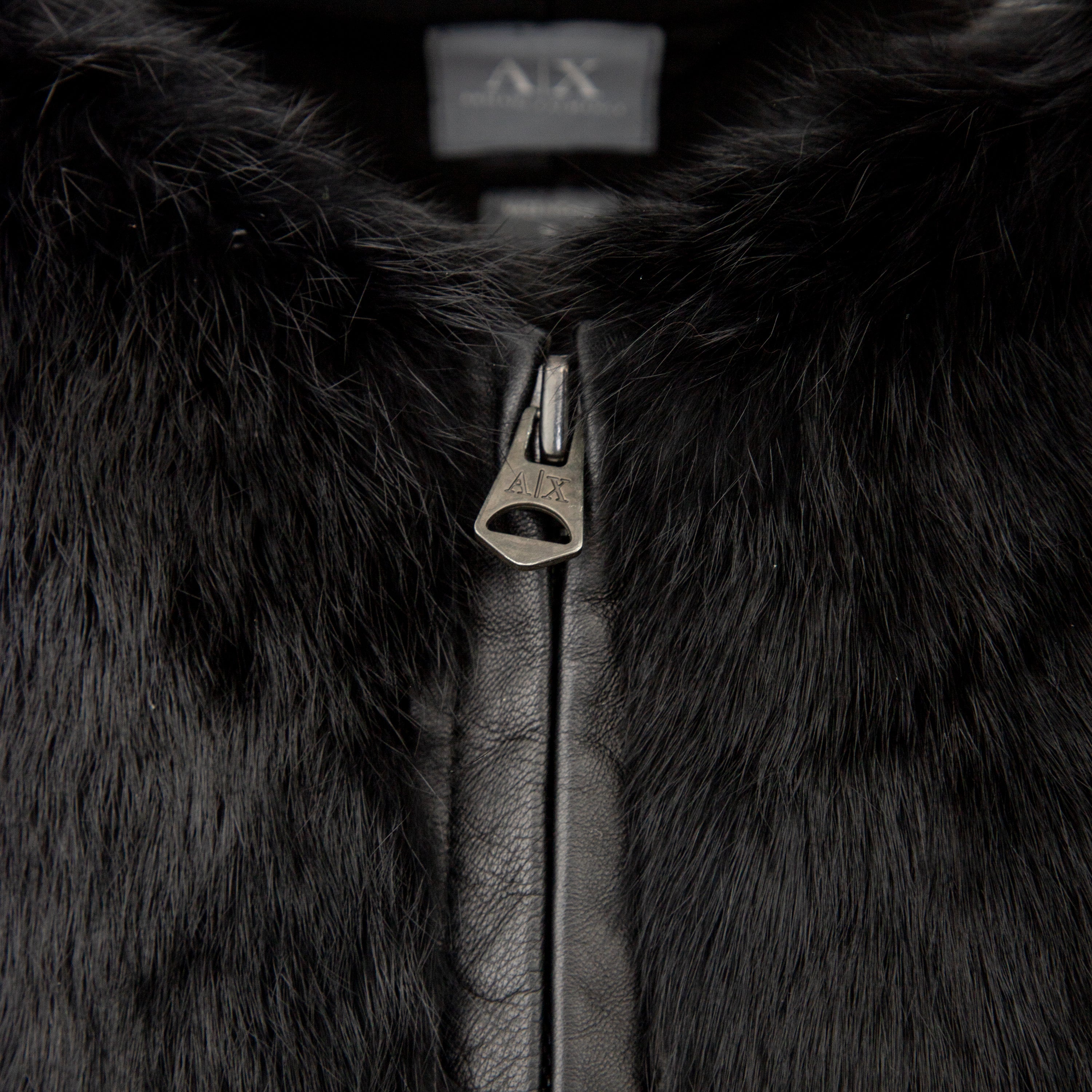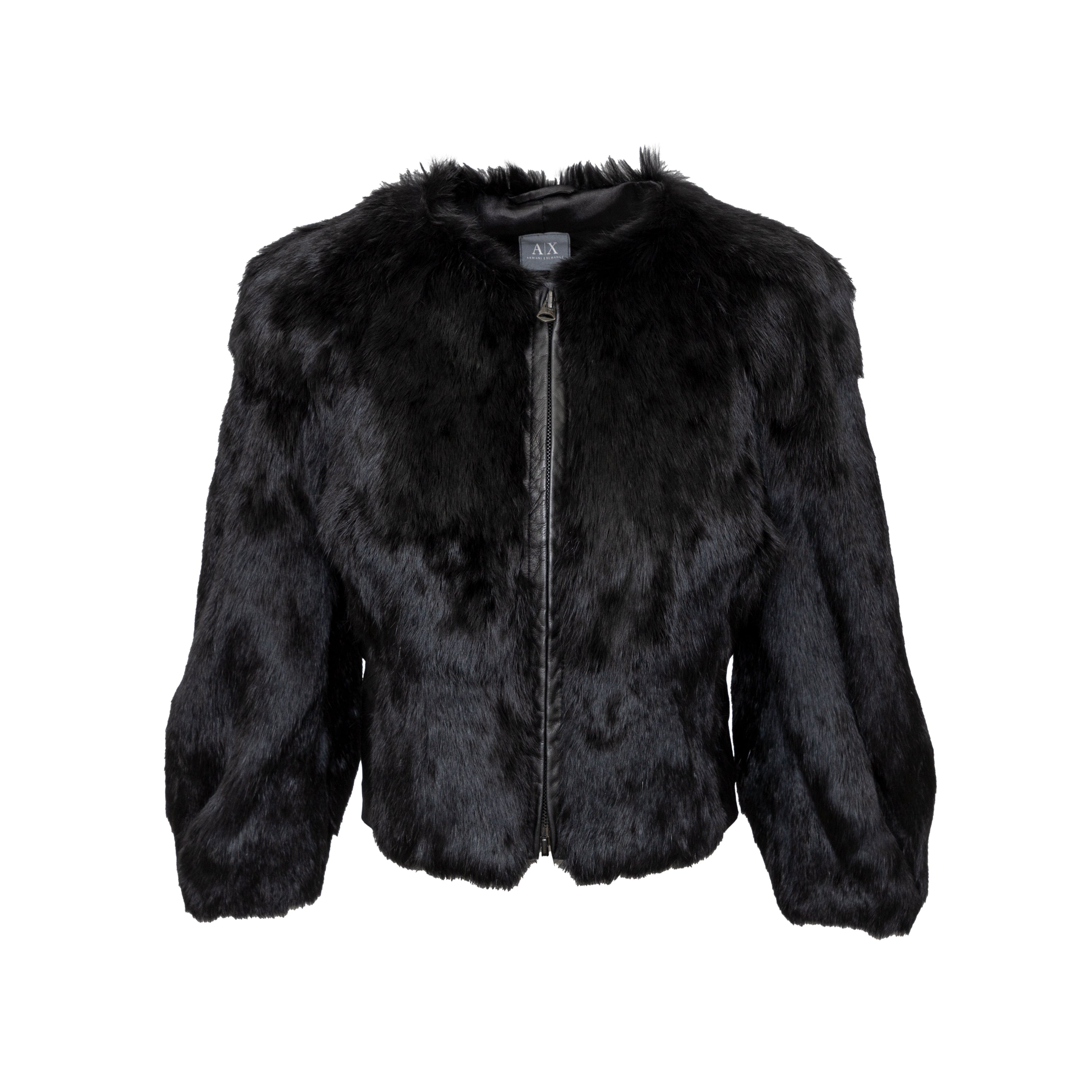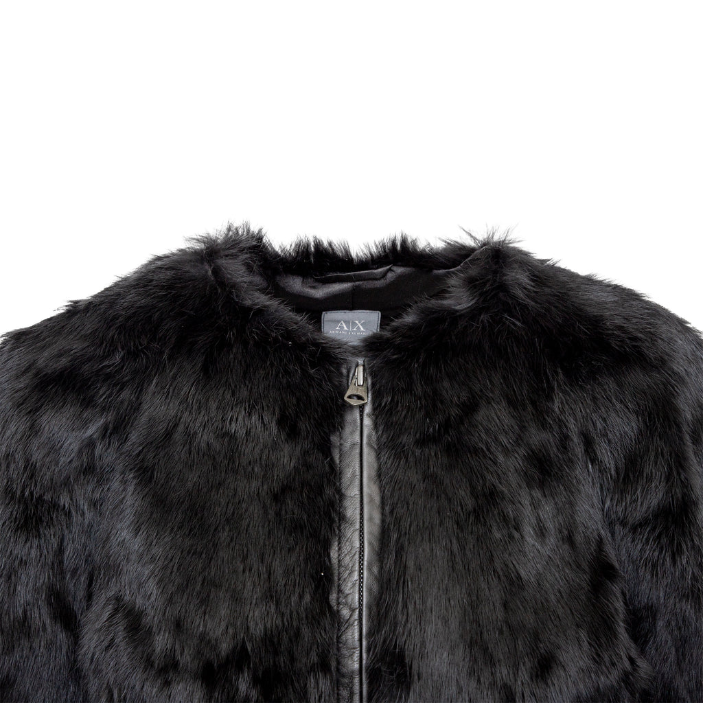 This Armani Exchange faux fur jacket is both stylish and practical. The soft and warm faux fur will keep you cozy in cold weather, while the front zipper closure and round neck add a touch of elegance. The jacket is also lined in satin fabric for added comfort.