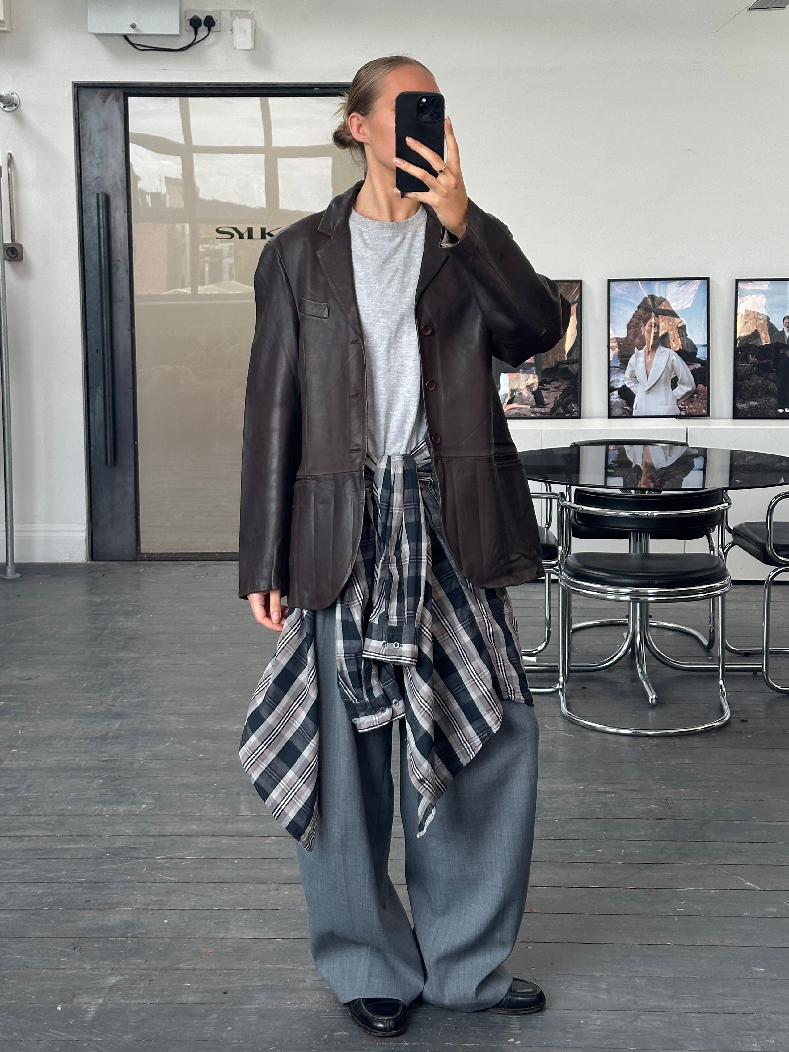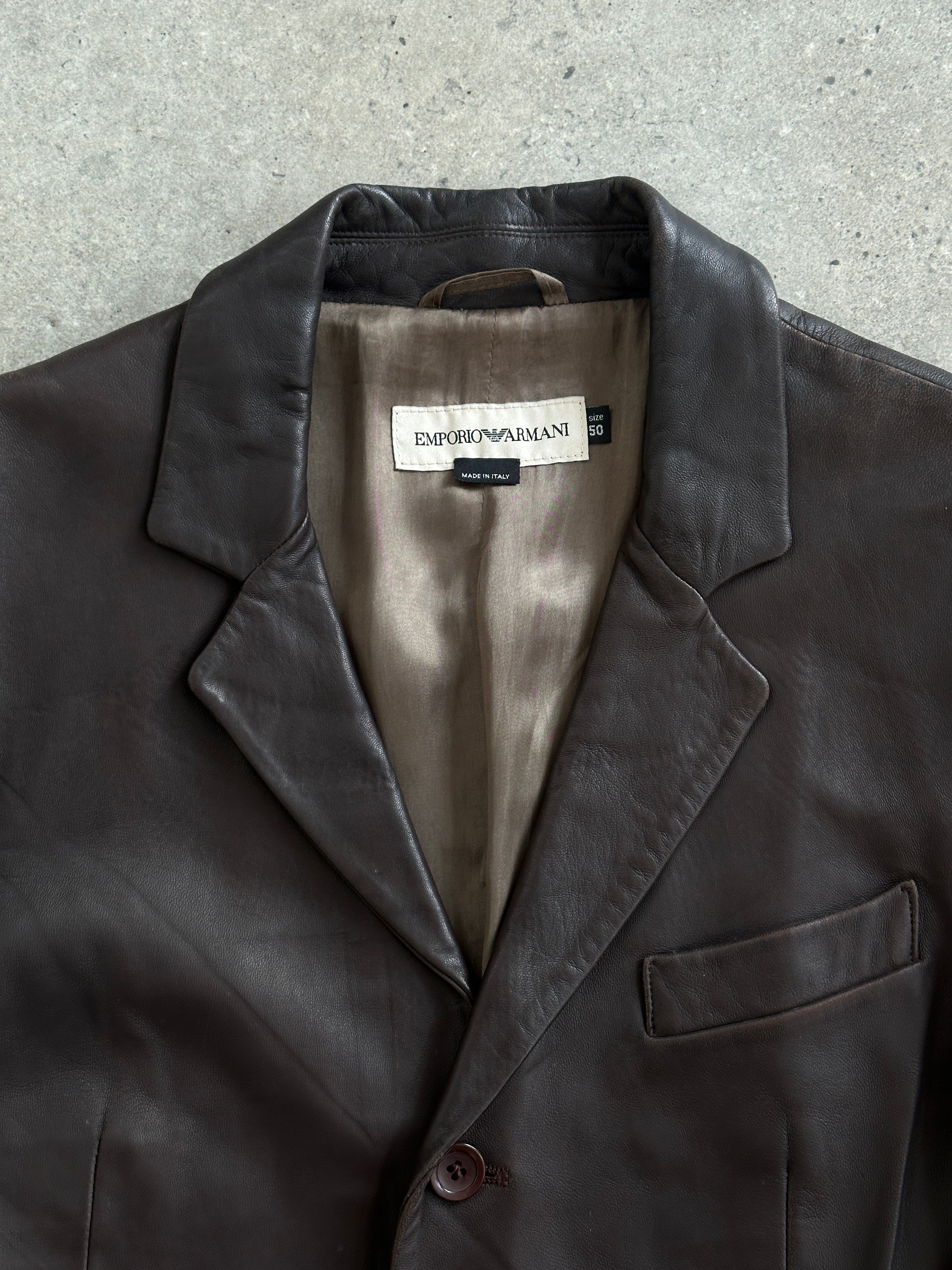 Vintage Emporio Armani 1990s leather jacket crafted from premium African lamb leather in a deep chocolate brown tone, made in Italy