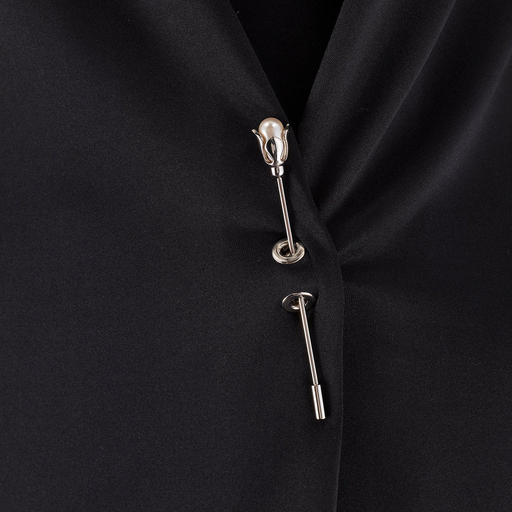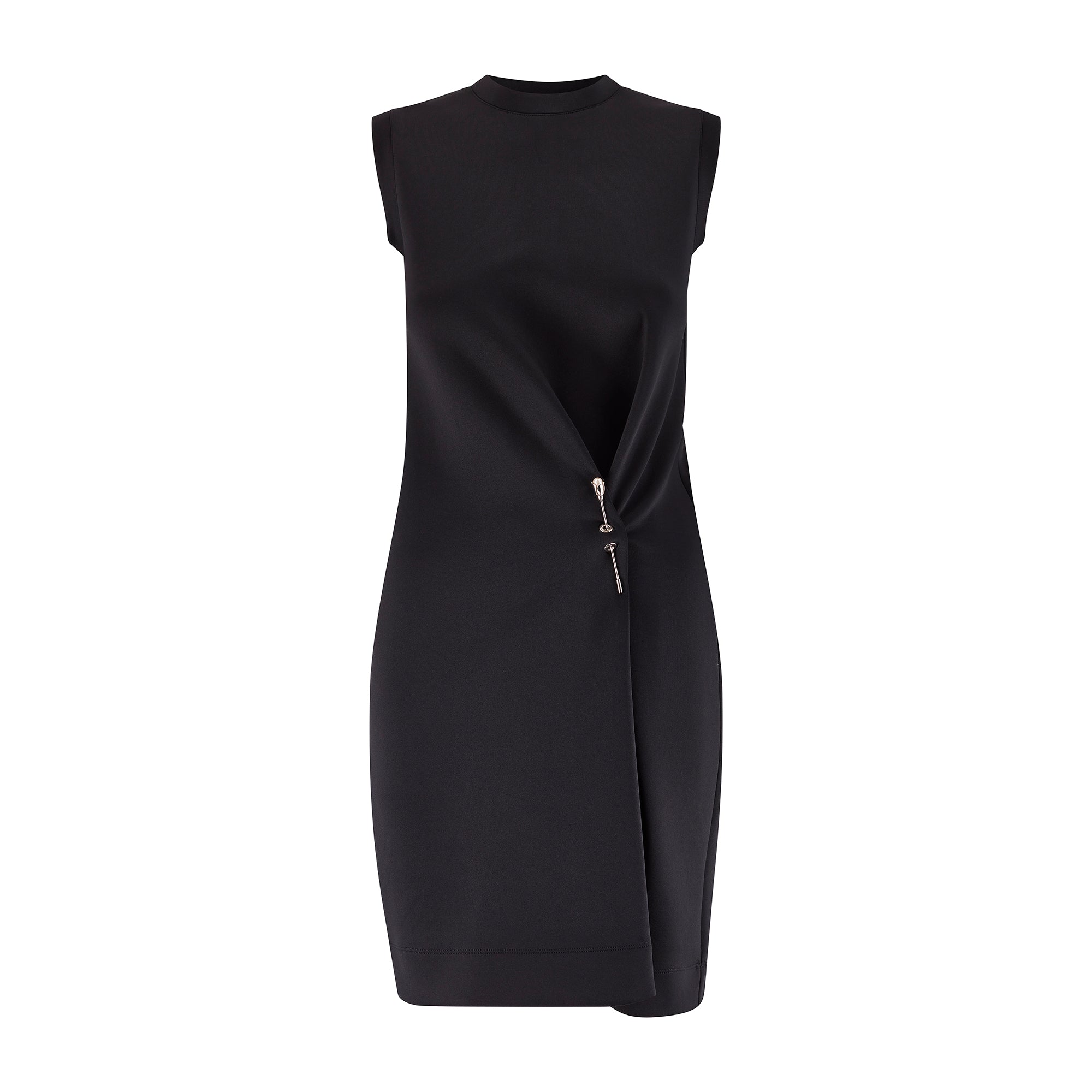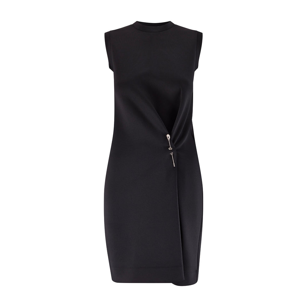 2015 Balenciaga Black Neoprene Sleeveless Dress with Pearlescent Pin