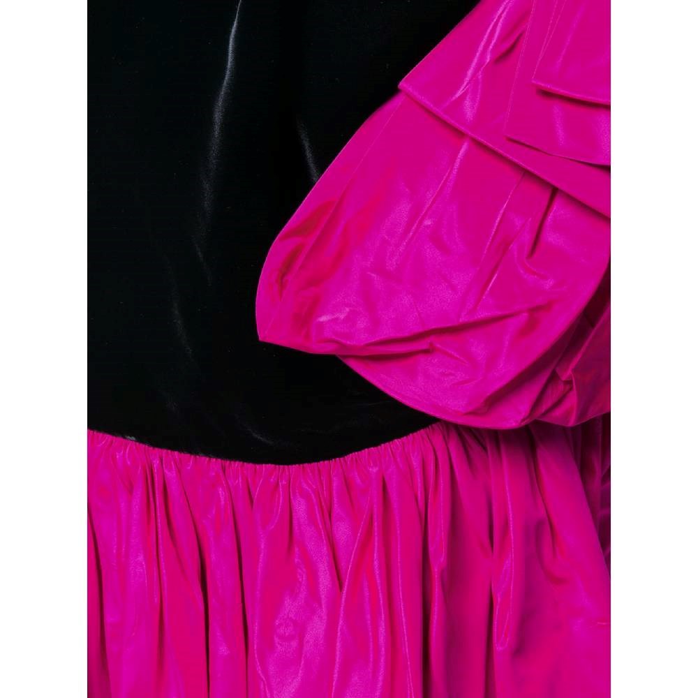 Yves Saint Laurent black velvet 80s skirt. Fuchsia contrast flounce. Side closure with hooks.
