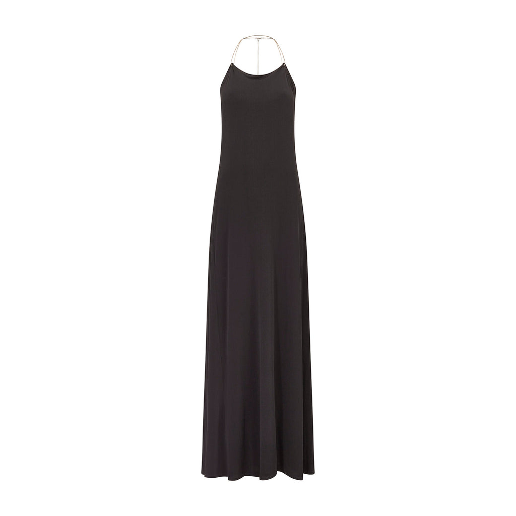 1990s Nicole Farhi Black Jersey Slip Dress with Chain Neckline