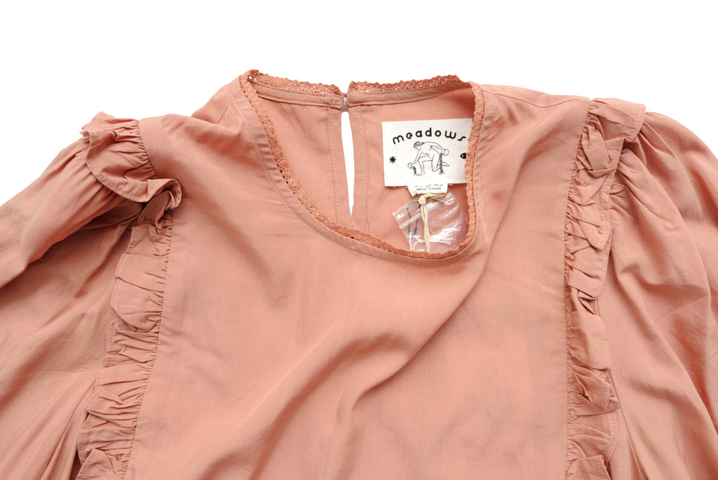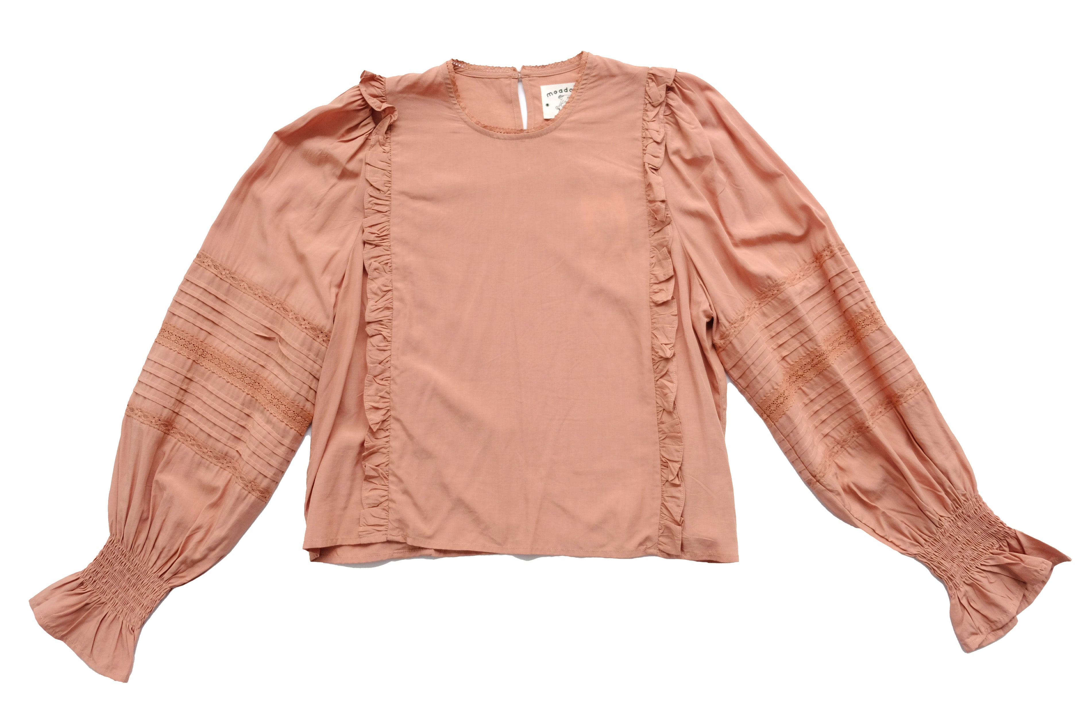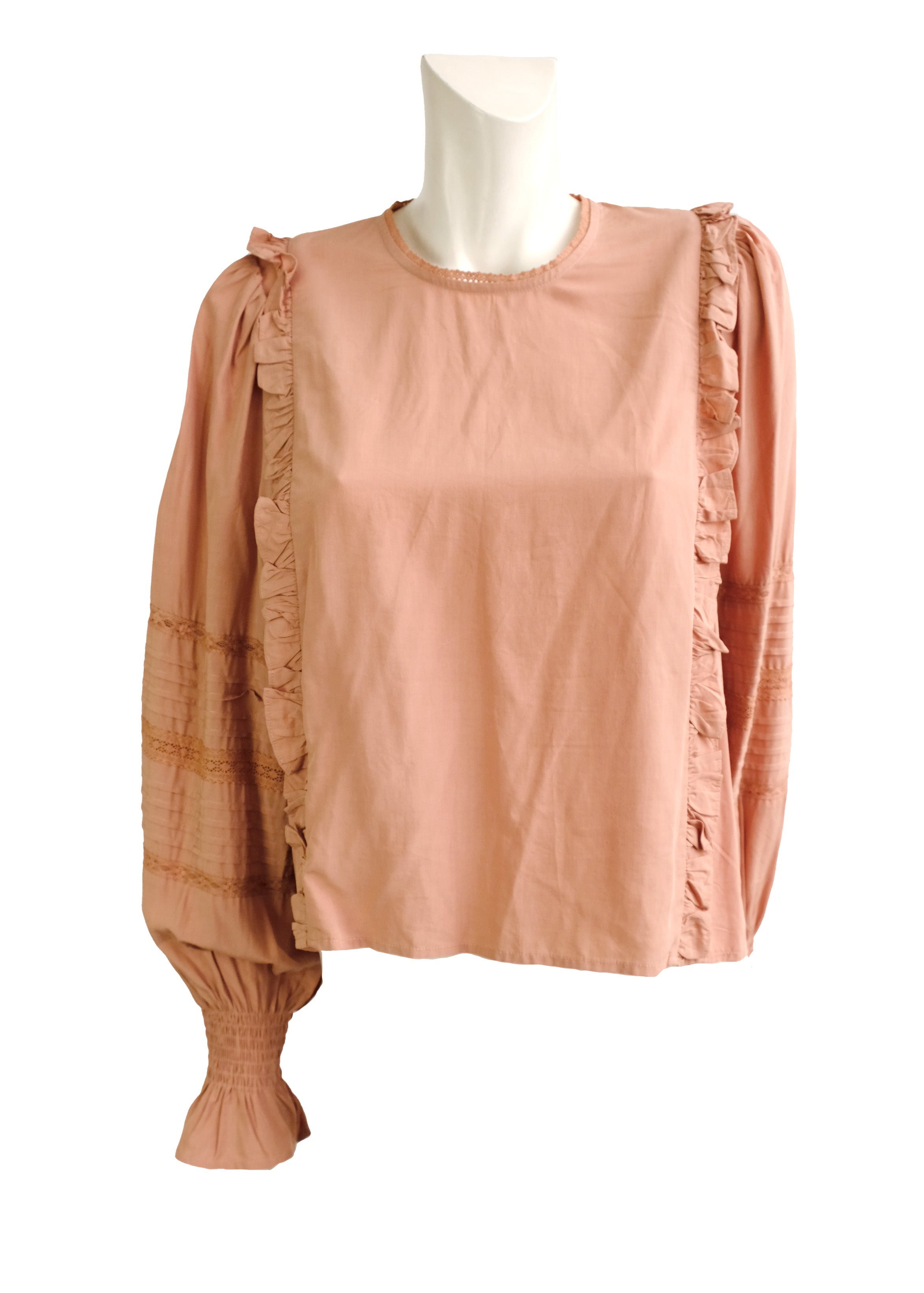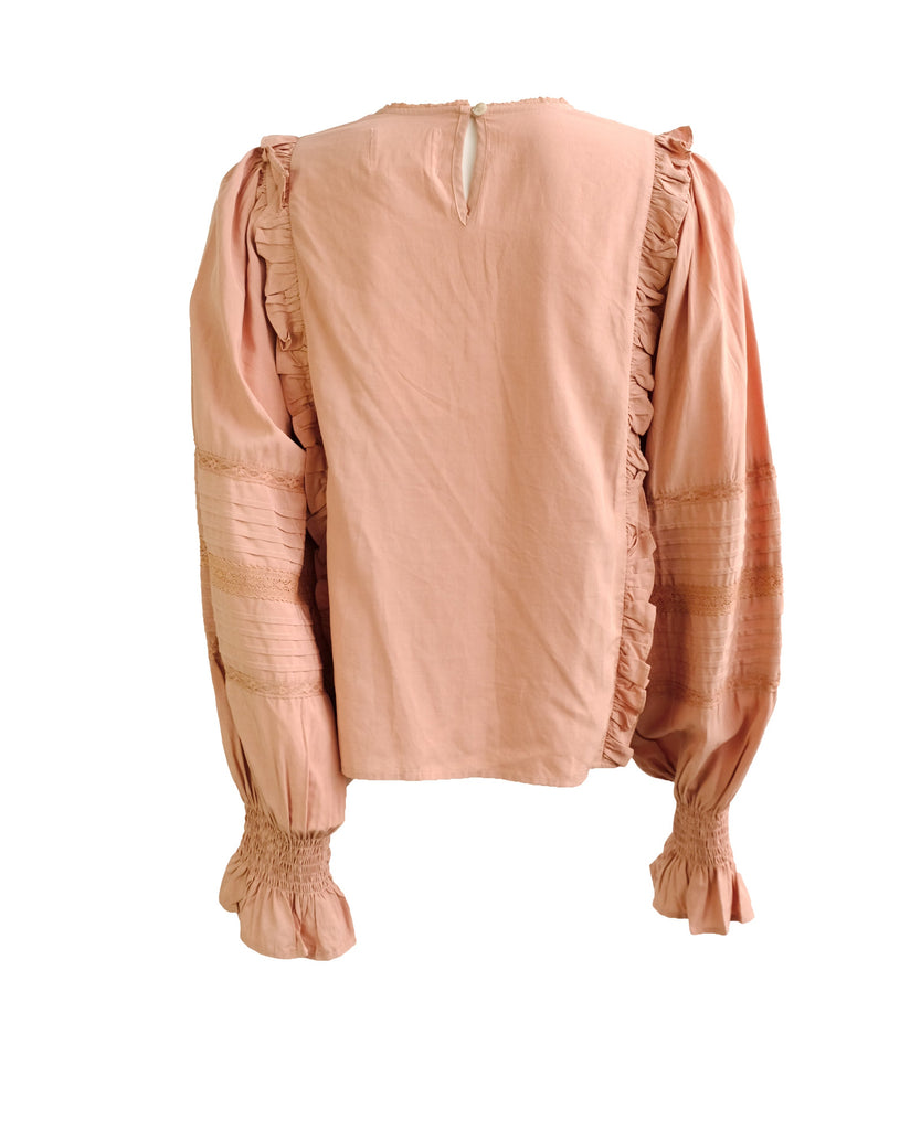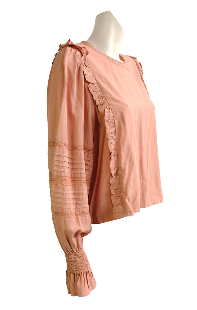 Meadows Dusky Pink Blouse with Frills and Lace, UK12
