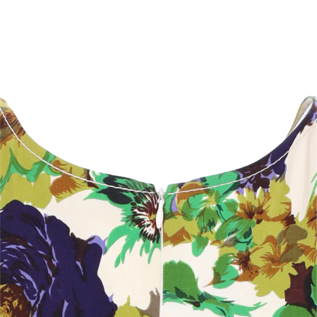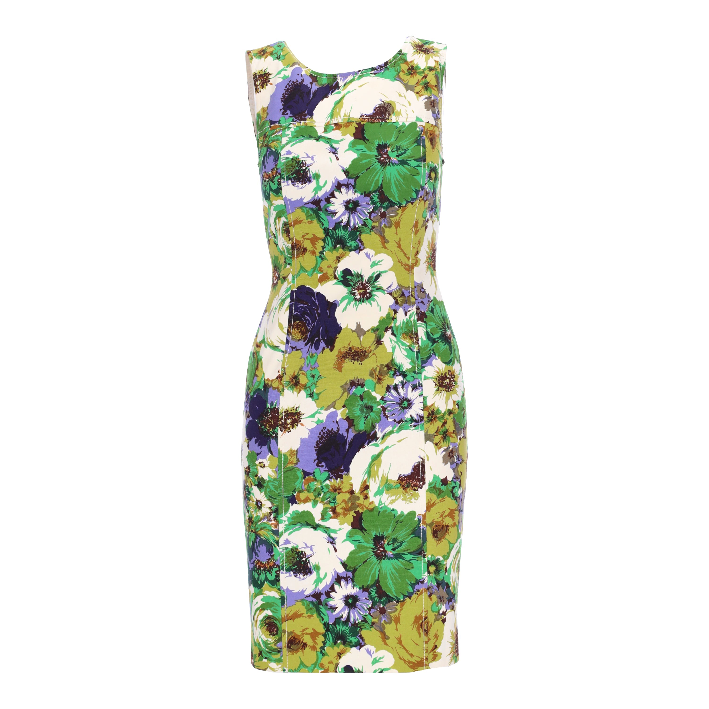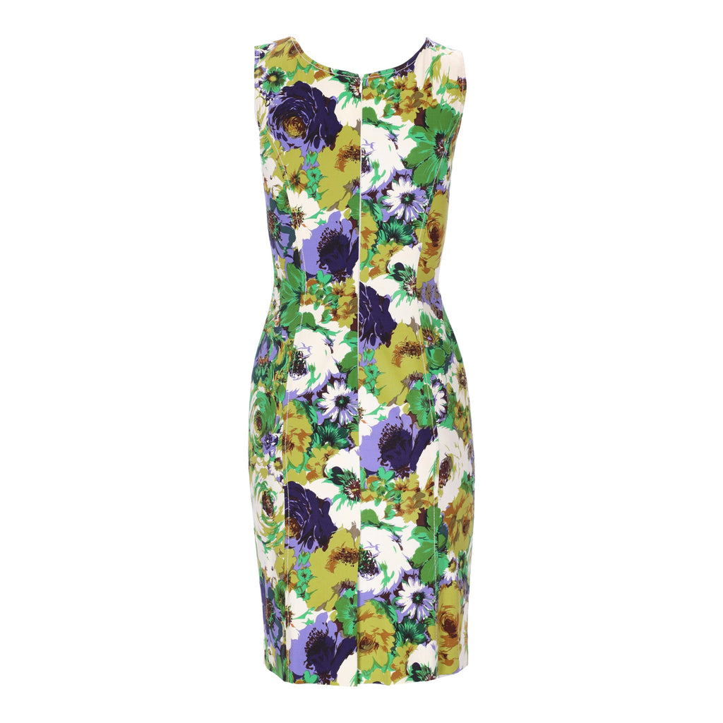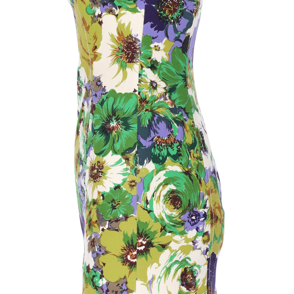 This sleeveless Blumarine dress is decorated with a vibrant multicolored floral print and crafted with a boat neckline for a stylish and comfortable fit. Perfect for any occasion, the dress is finished with a concealed zip at the back.
