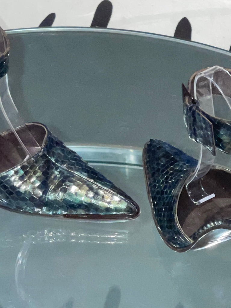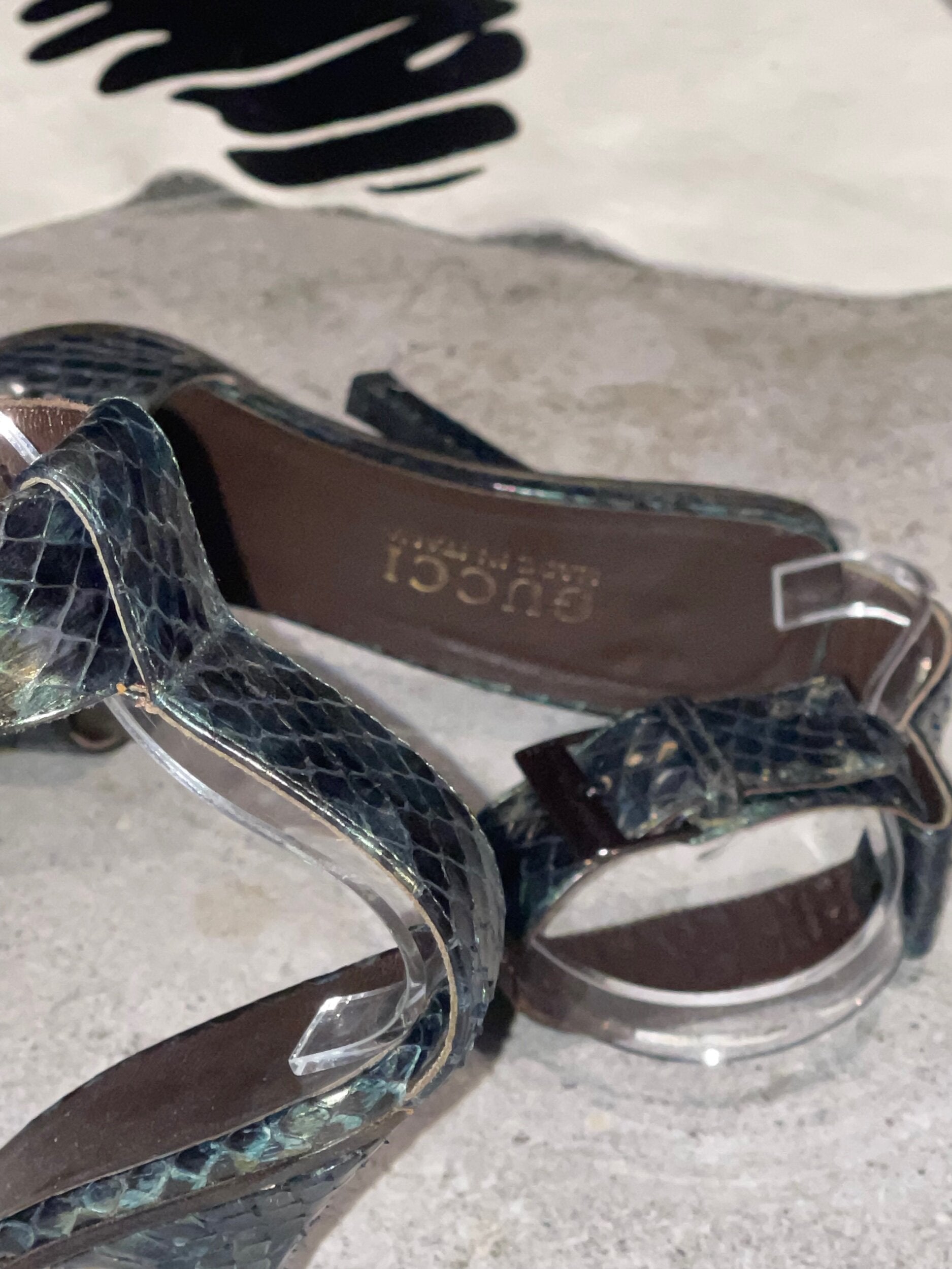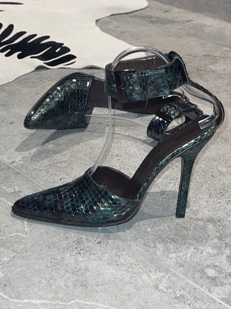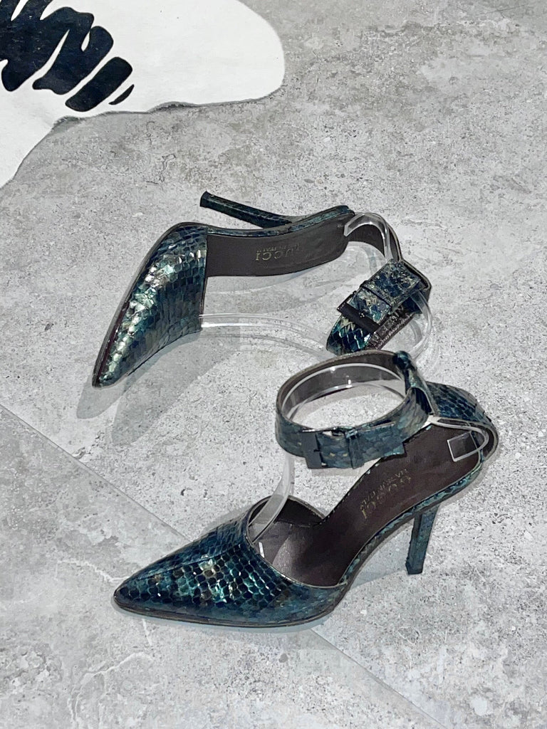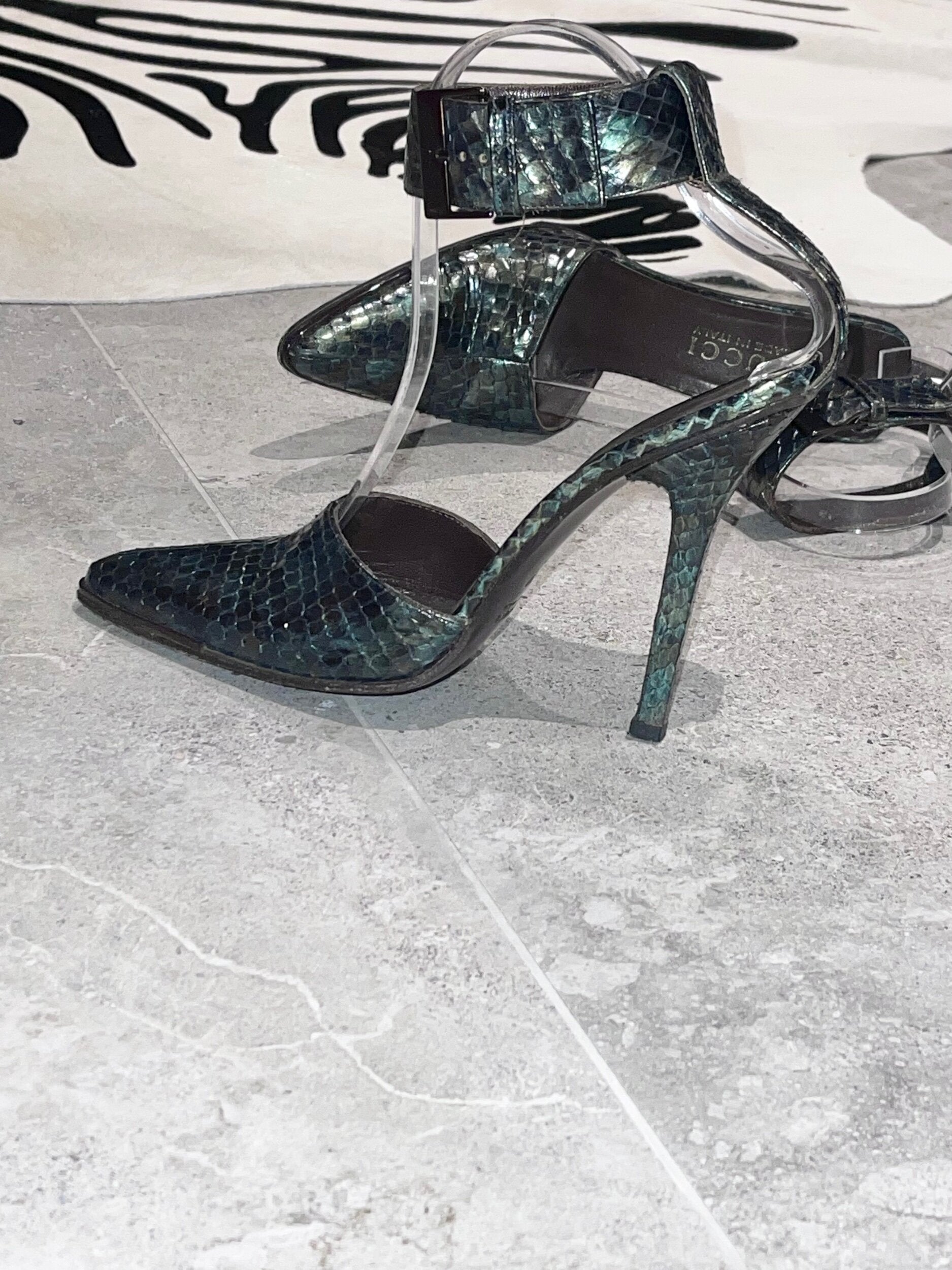 Discover elegance and timeless style with the Amazing 90’s Python Heels by Tom Ford at Gucci, crafted to perfection in a UK size 4.5. These iconic heels embody the essence of luxury and sophistication, featuring exquisite python leather that exudes opulence and prestige. Whether you're stepping into a boardroom or attending a glamorous soirée, these heels effortlessly elevate any outfit with their sleek pointed toe and slender stiletto heel. Make a statement and indulge in the allure of vintage-inspired fashion with these rare and coveted heels from a bygone era.