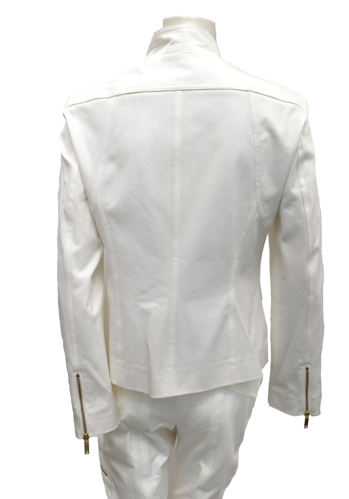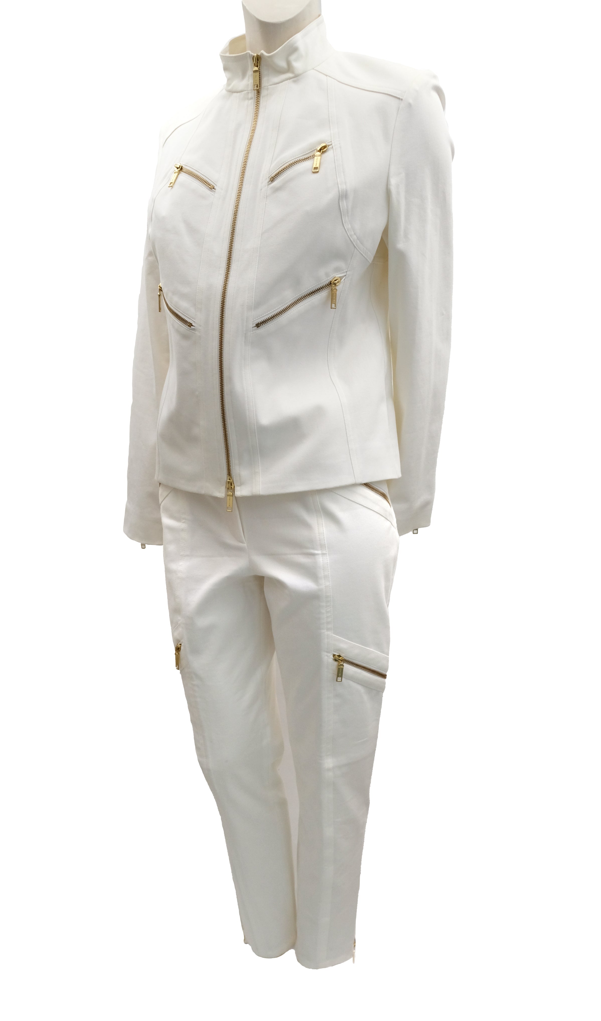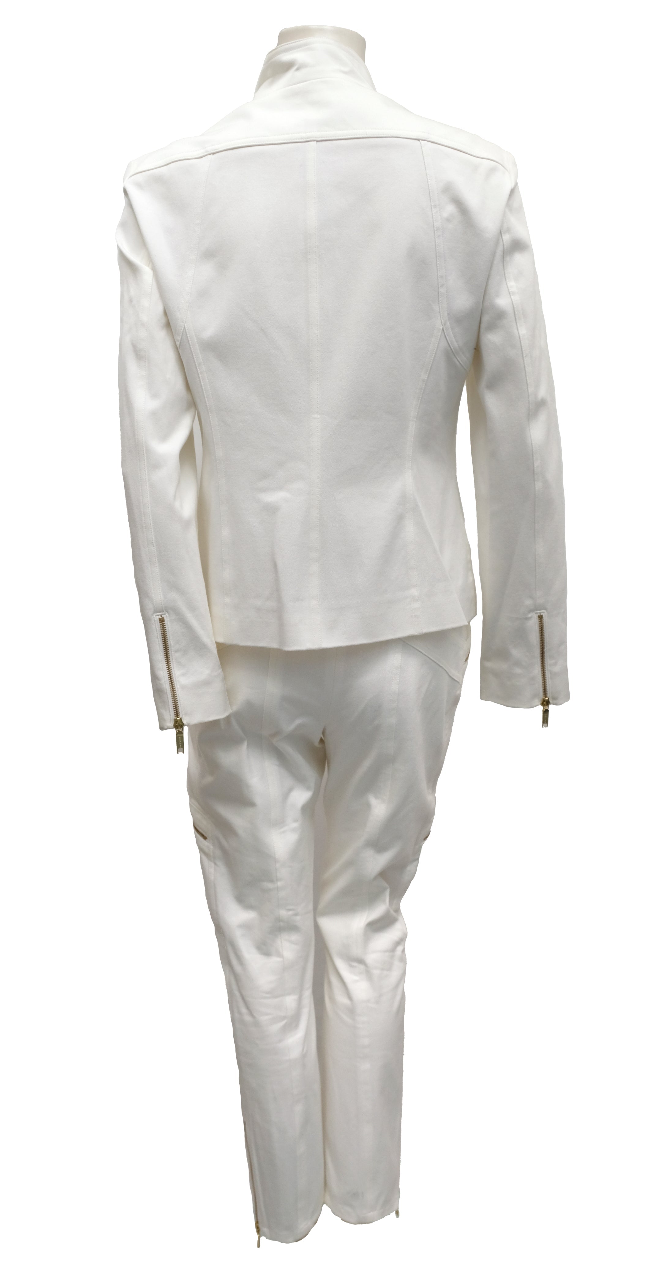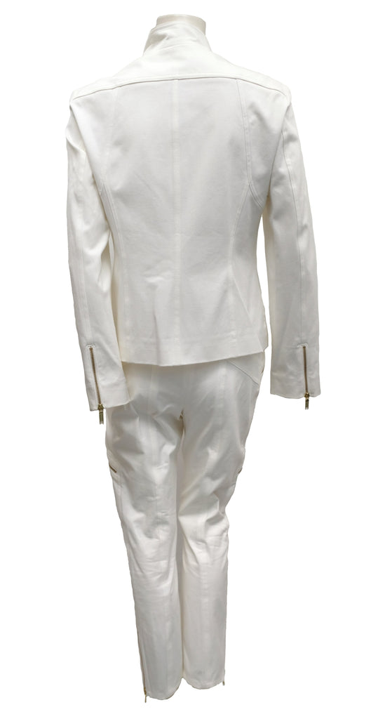 Celine 2 Piece Trouser Suit in Ivory Cotton with Gold Zips, UK10